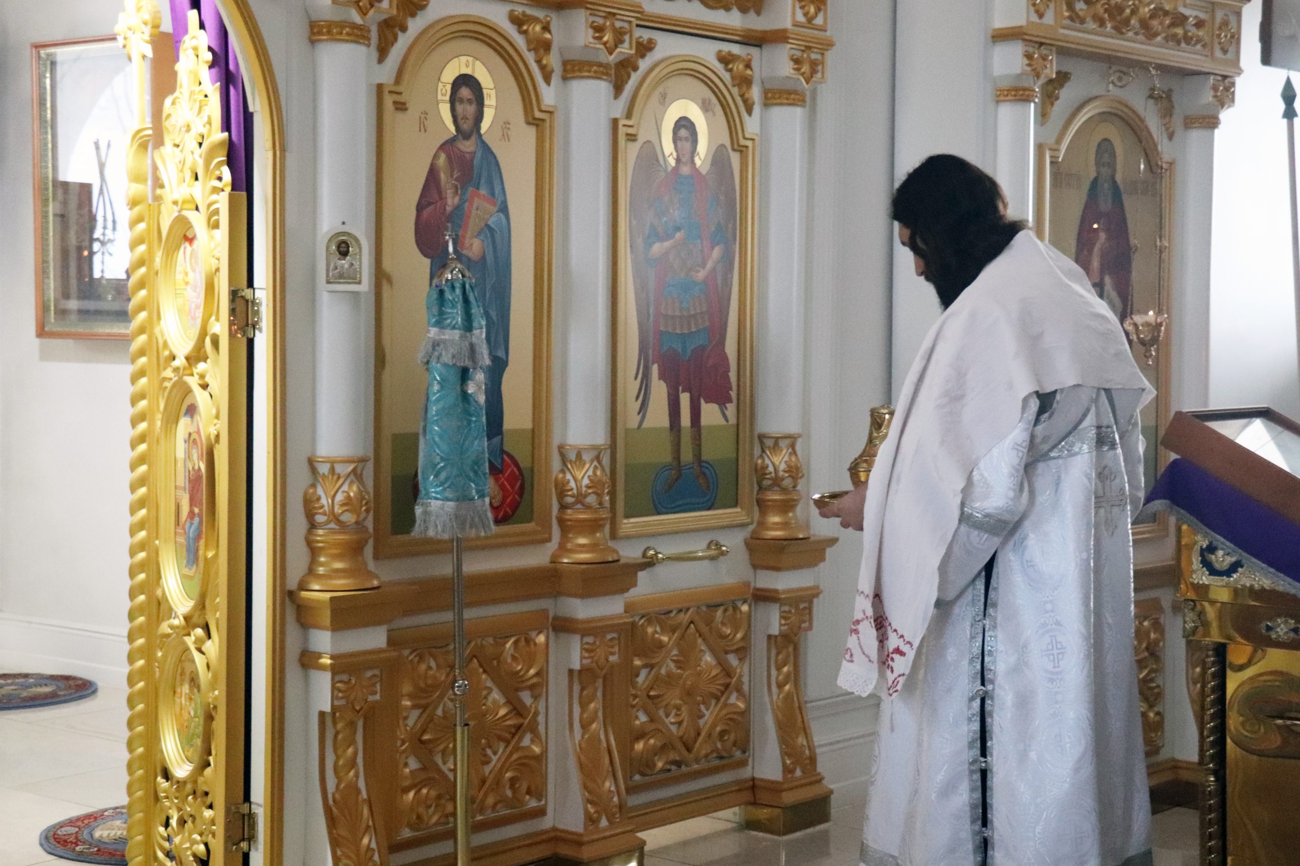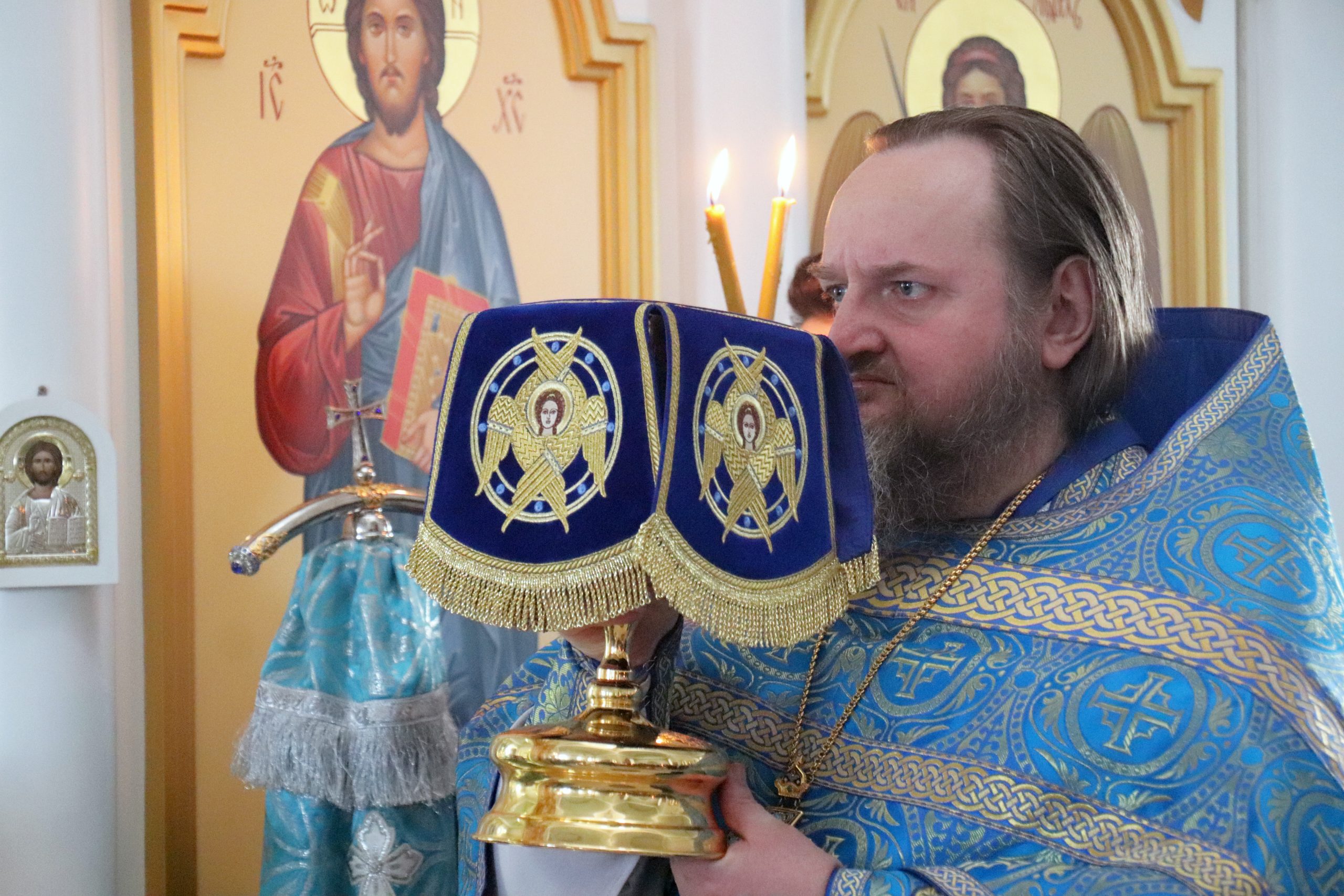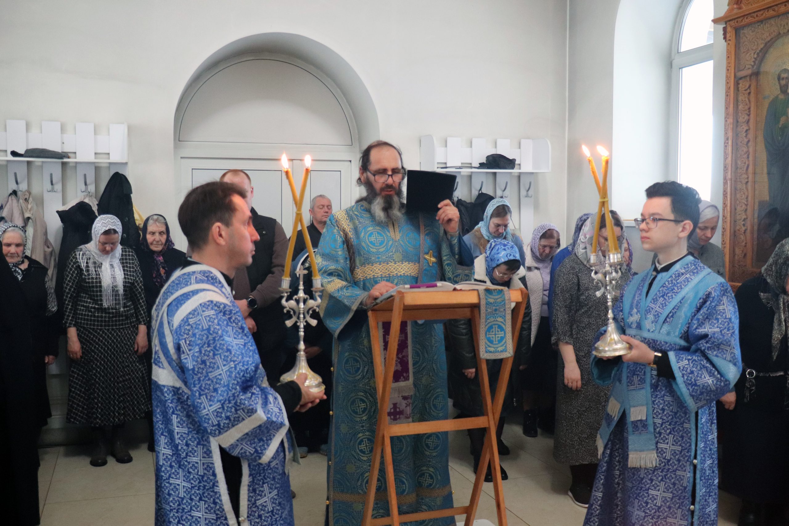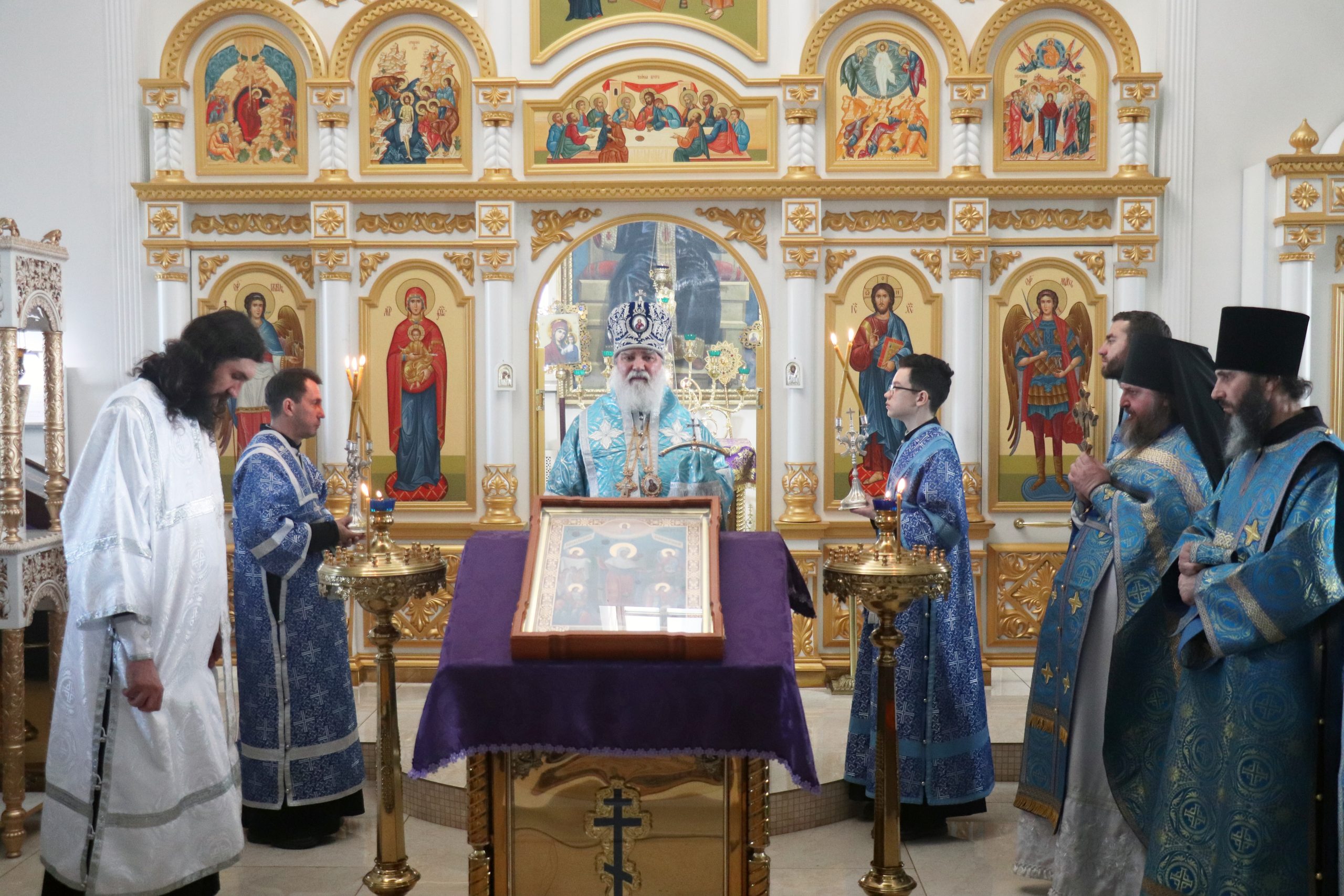 После чтения Евангелия Владыка Алексий обратился к прихожанам с проповедью, призвав благодарить Матерь Божию за то попечение духовное, которое оказывает Она каждому из нас.