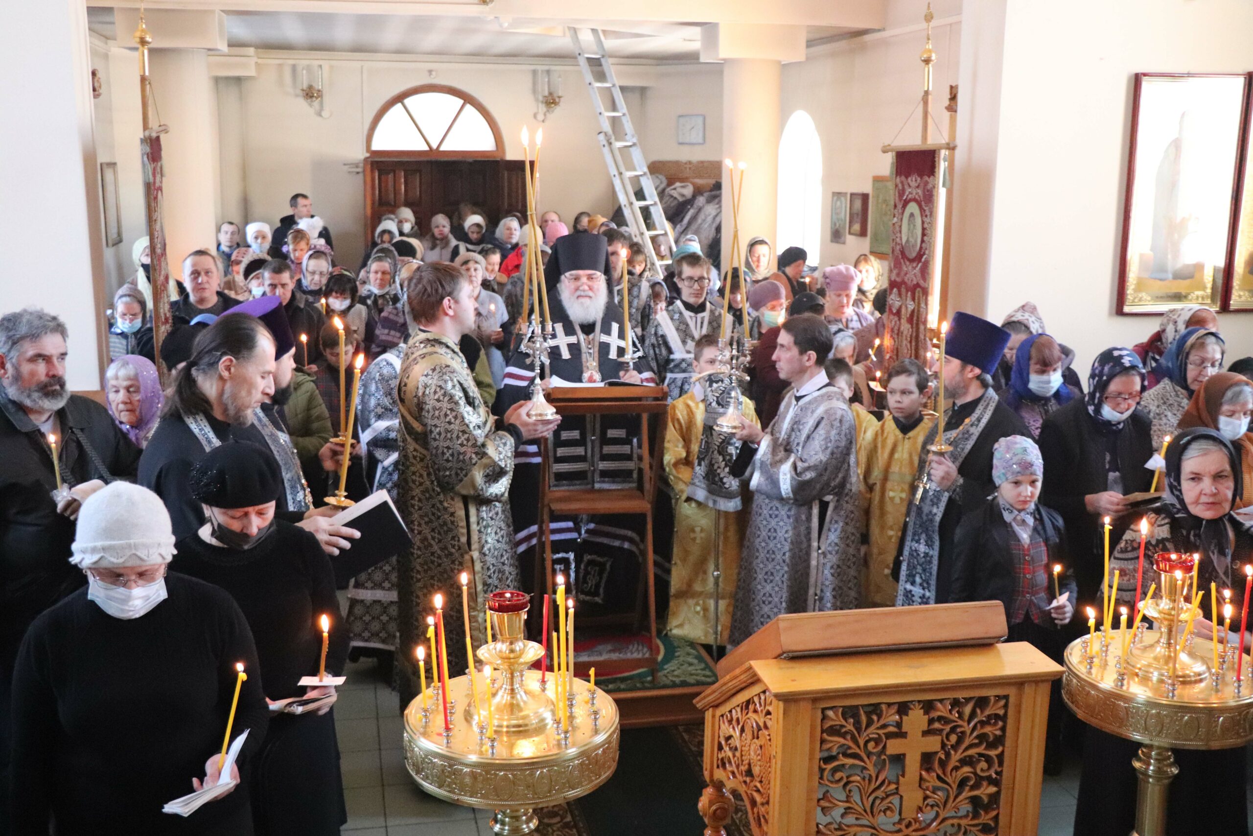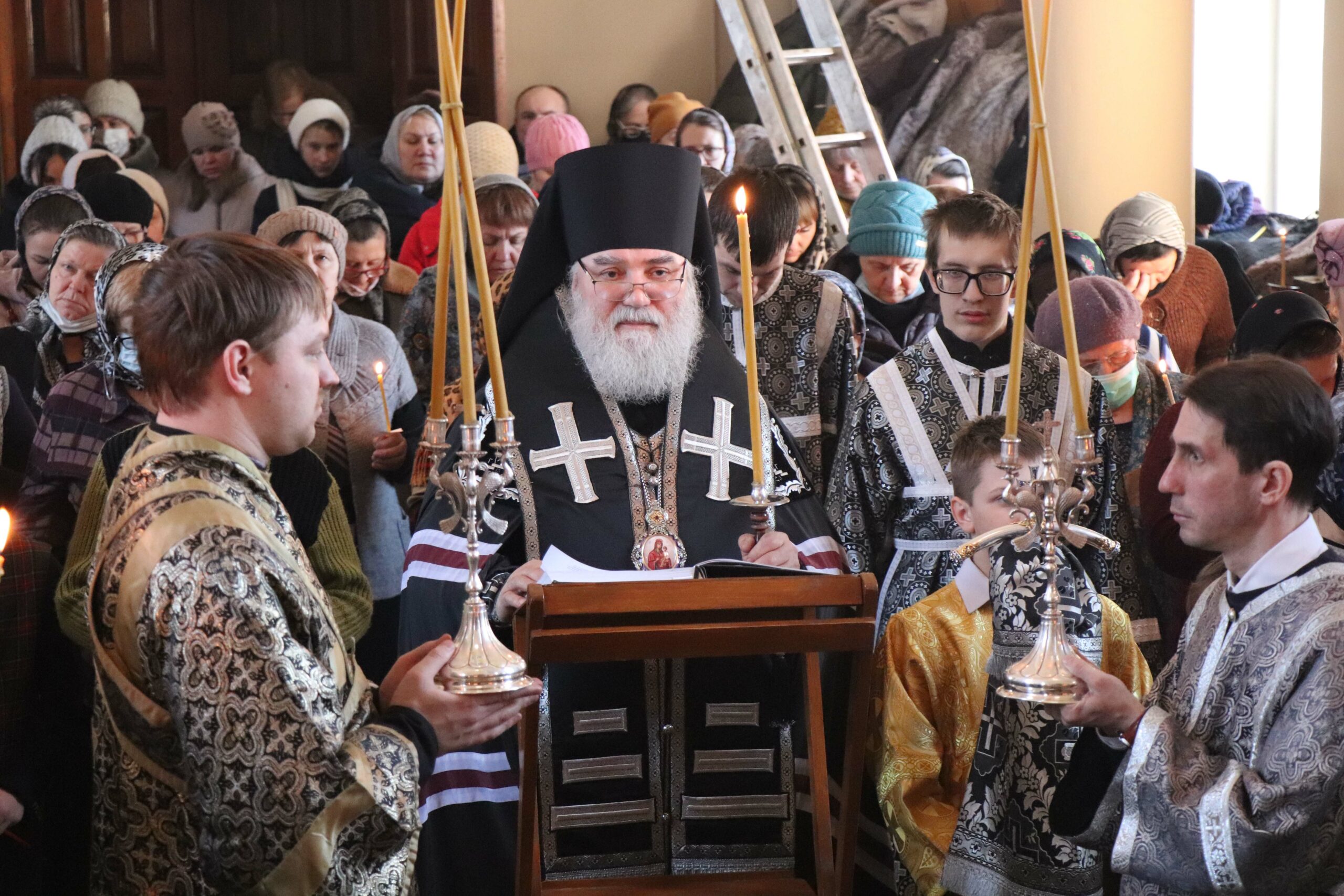 Бузулук. Вечером 15 марта 2021 года, в понедельник первой седмицы Великого поста, Преосвященнейший Алексий, епископ Бузулукский и Сорочинский, совершил великое повечерие с чтением Великого покаянного канона прп. Андрея Критского в Преображенском храме Свято-Троицкого кафедрального собора.