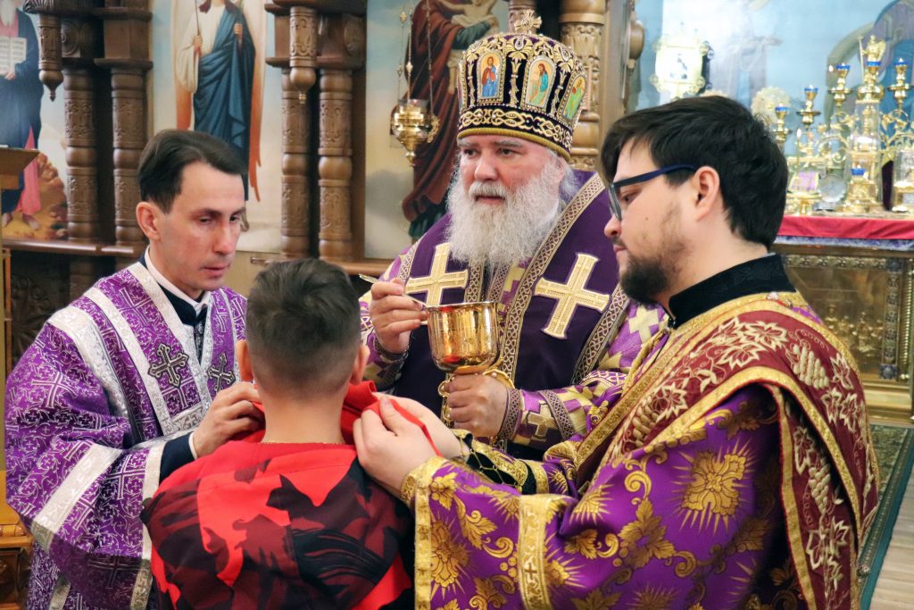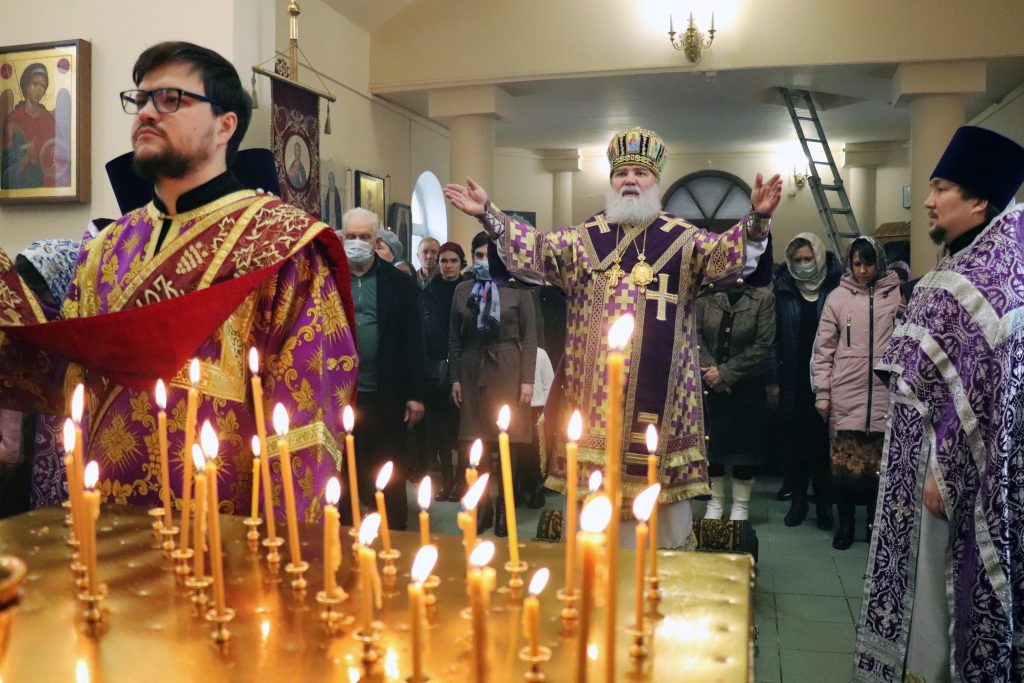 Бузулук. 2 апреля 2022 года, в Крестопоклонную субботу 4-й седмицы Великого поста, поминовение усопших, память прпп. Иоа́нна, Се́ргия, Патри́кия и прочих, во обители св. Са́ввы убиенных (796), мц. Фоти́ны (Светла́ны) самаряныни, ее сыновей, епископ Бузулукский и Сорочинский Алексий совершил Божественную Литургию в Преображенском храме Свято-Троицкого кафедрального собора.