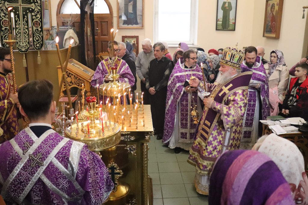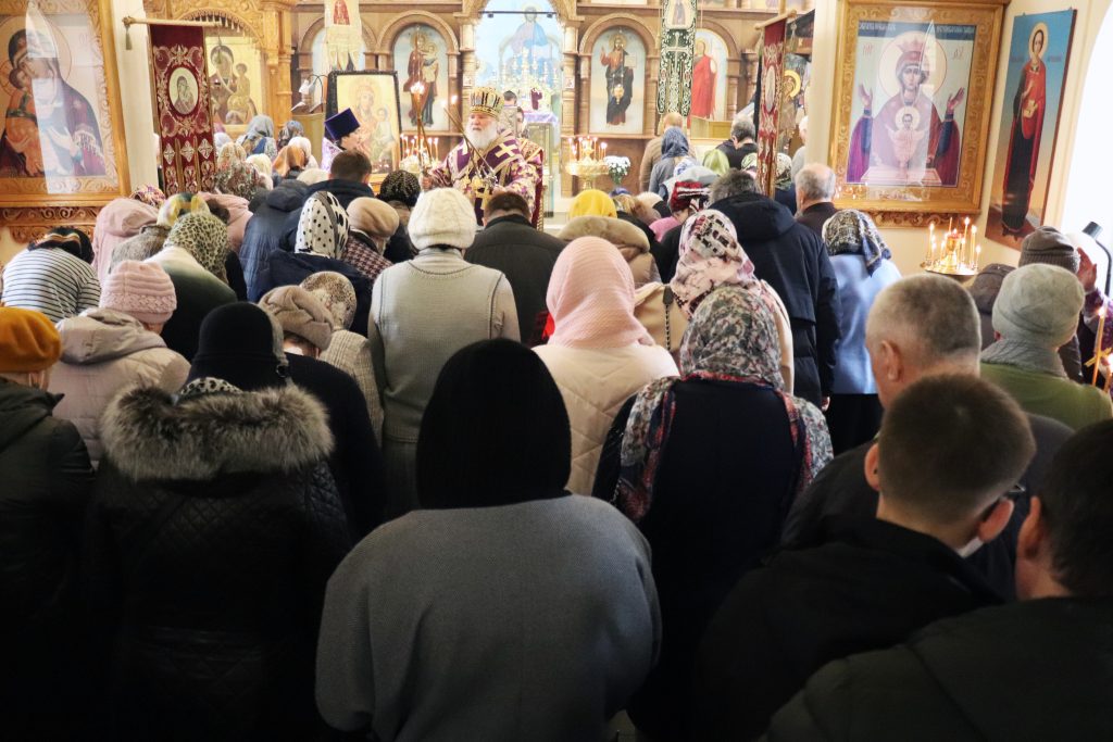 В завершении богослужения Владыка Алексий отслужил панихиду по всем усопшим православным христианам, после чего обратился с проповедью к прихожанам: «Во имя Отца и Сына и Святого Духа. Приветствую вас отцы, братья и сестры, с третьей Родительской субботой Великого поста. Мы совершили поминание усопших и да примет Господь глас молитвы нашей. Этими Родительскими поминовениями мы являем ту любовь, между Церковью нашей именуемой Воинствующей со страстями, похотями, грехами, готовящей нас к вечной жизни и теми, которые уже закончили земную жизнь и составляют собой Церковь Торжествующую. Среди них есть наши близкие, родственники с грехами, которые они не успели очистить в своей земной жизни, не успели покаяться. Они томятся в Вечной Жизни, ибо уже не могут изменить свою участь, единственная надежда у них на нас, на Церковь земную. Мы молимся, и Господь их прощает, любовь вечна, она не прекращается, но простирается в вечность. Мы по любви к ним молимся за них и делаем добрые дела, Господь же вменяет то, что мы делаем ради почивших как бы они сами сделали все это.
