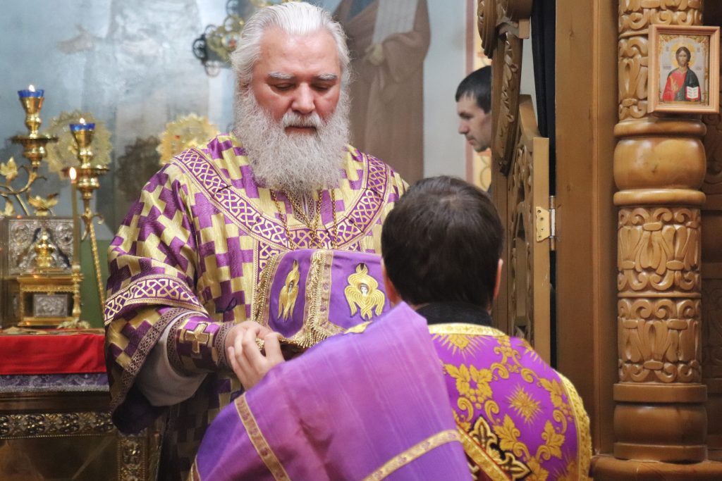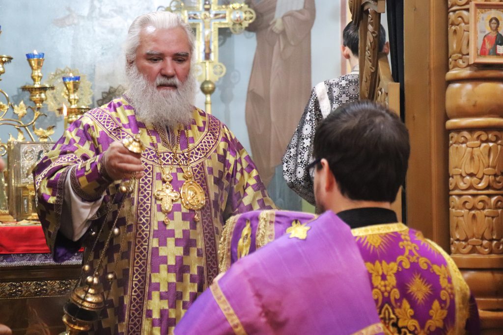 Его Преосвященству сослужили: иерей Вадим Зотов, иерей Дионисий Горбунов, иерей Анатолий Марченков и диакон Давид Ганиев. Пел хор под управлением Натальи Задориной.