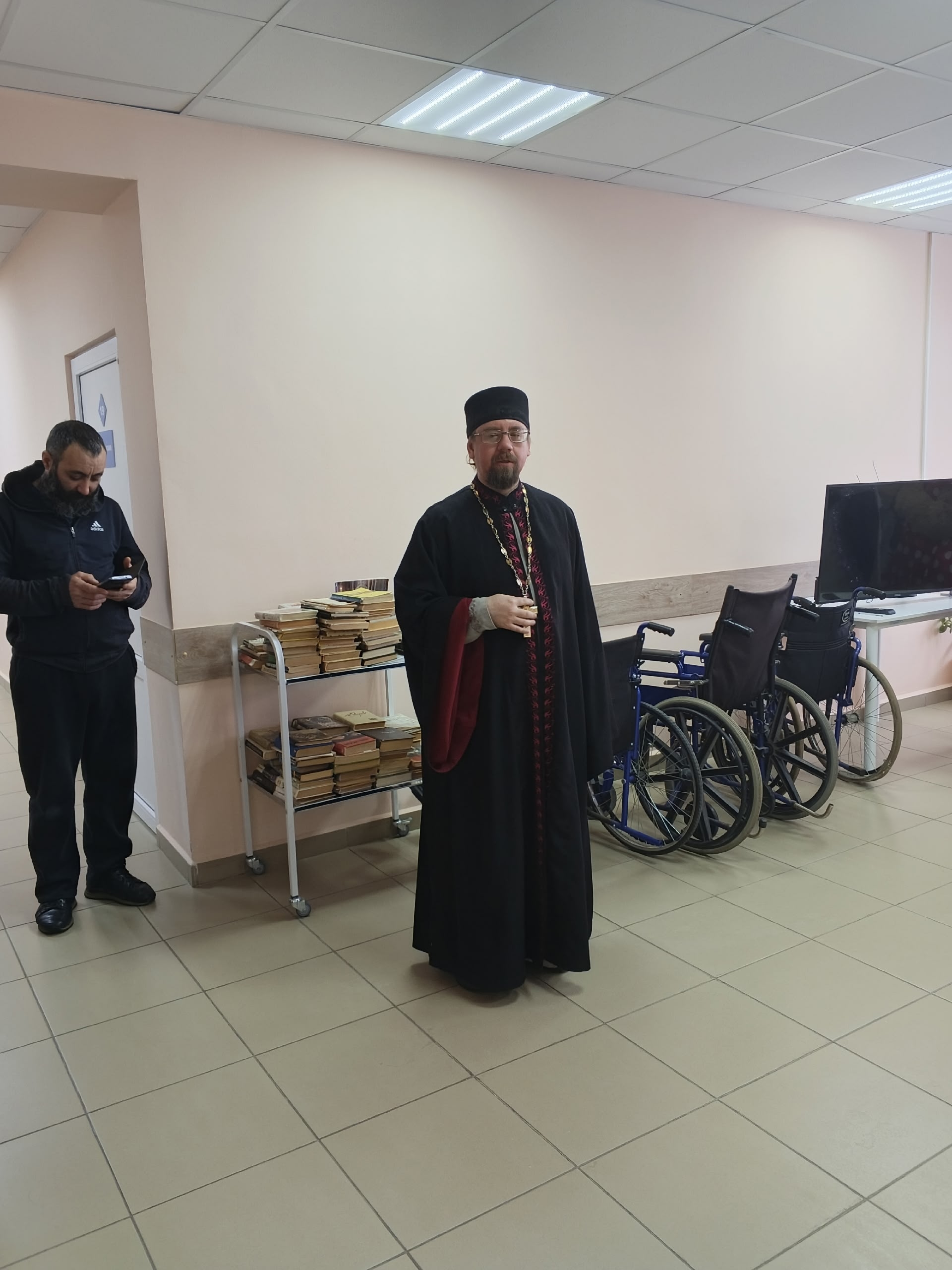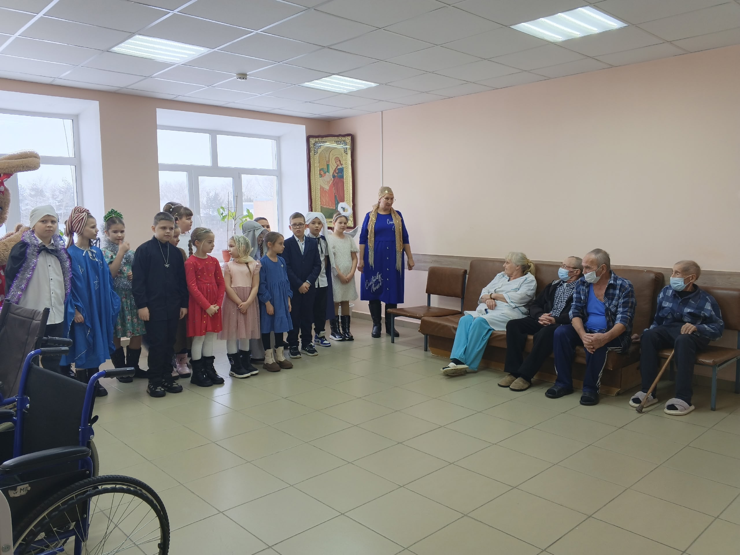 Дети показали Рождественский концерт, а протоиерей Сергий Клименко поздравил всех пациентов со Святым праздником, всем пожелал скорейшего выздоровления, мирного неба, детям вручил мягкие игрушки, а взрослым Рождественские пряники с поздравительными открытками.