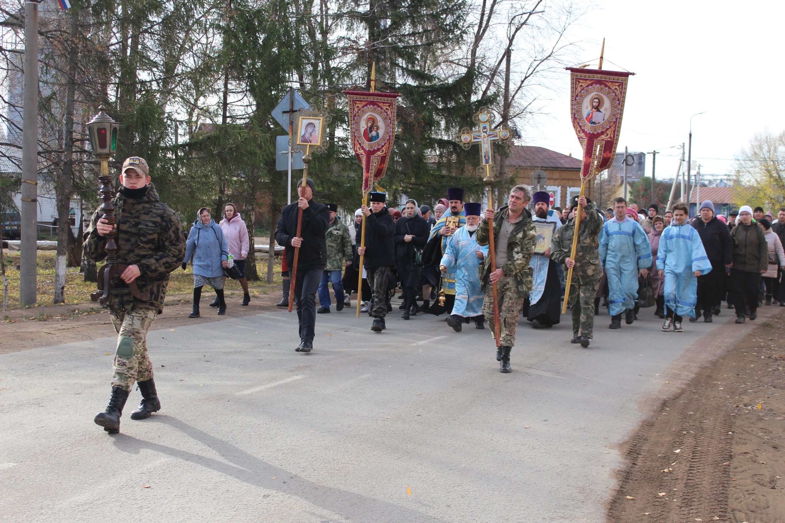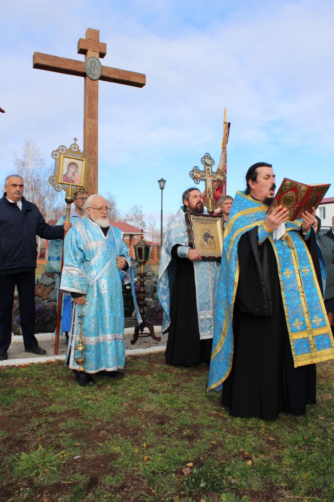Как и всегда в этот день здесь была совершена праздничная Божественная литургия, водосвятный молебен и традиционный крестный ход к памятному кресту, установленному на месте разрушенного храма. Клирики и прихожане вместе с сорочинскими казаками под пение Иисусовой молитвы прошли по улицам родного города. Возле памятного креста был отслужен краткий молебен.