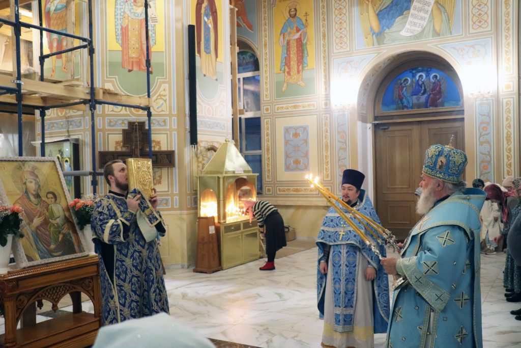 После Литургии и молебна Пресвятой Богородице, Владыка Алексий обратился к прихожанам с проповедью, поздравив с праздником в честь особо чтимой в Бузулукской епархии иконы Божией Матери: Скоропослушница. Архиерей побеседовал о явленном иконой чуде 1664 года, а также о ее появлении на Святой Руси.