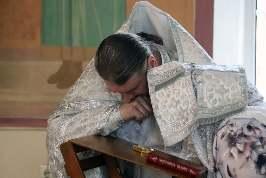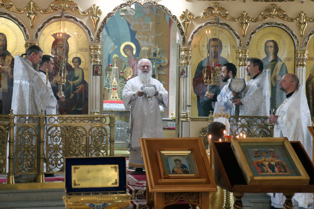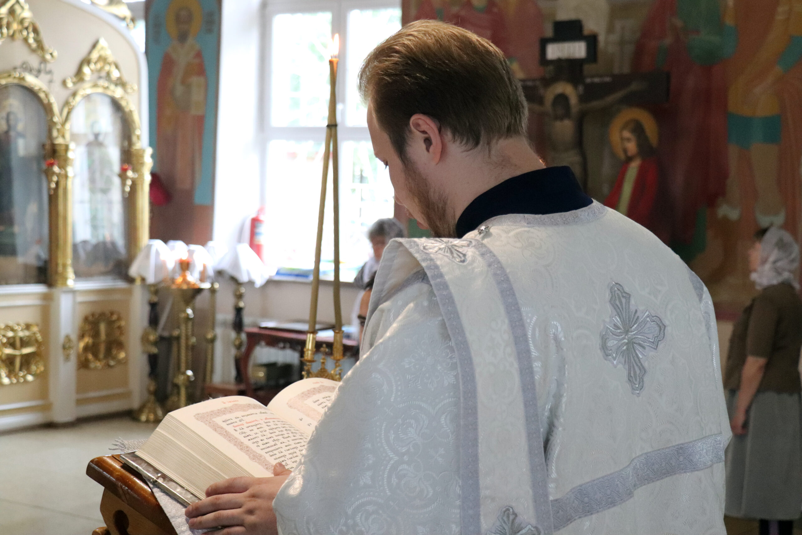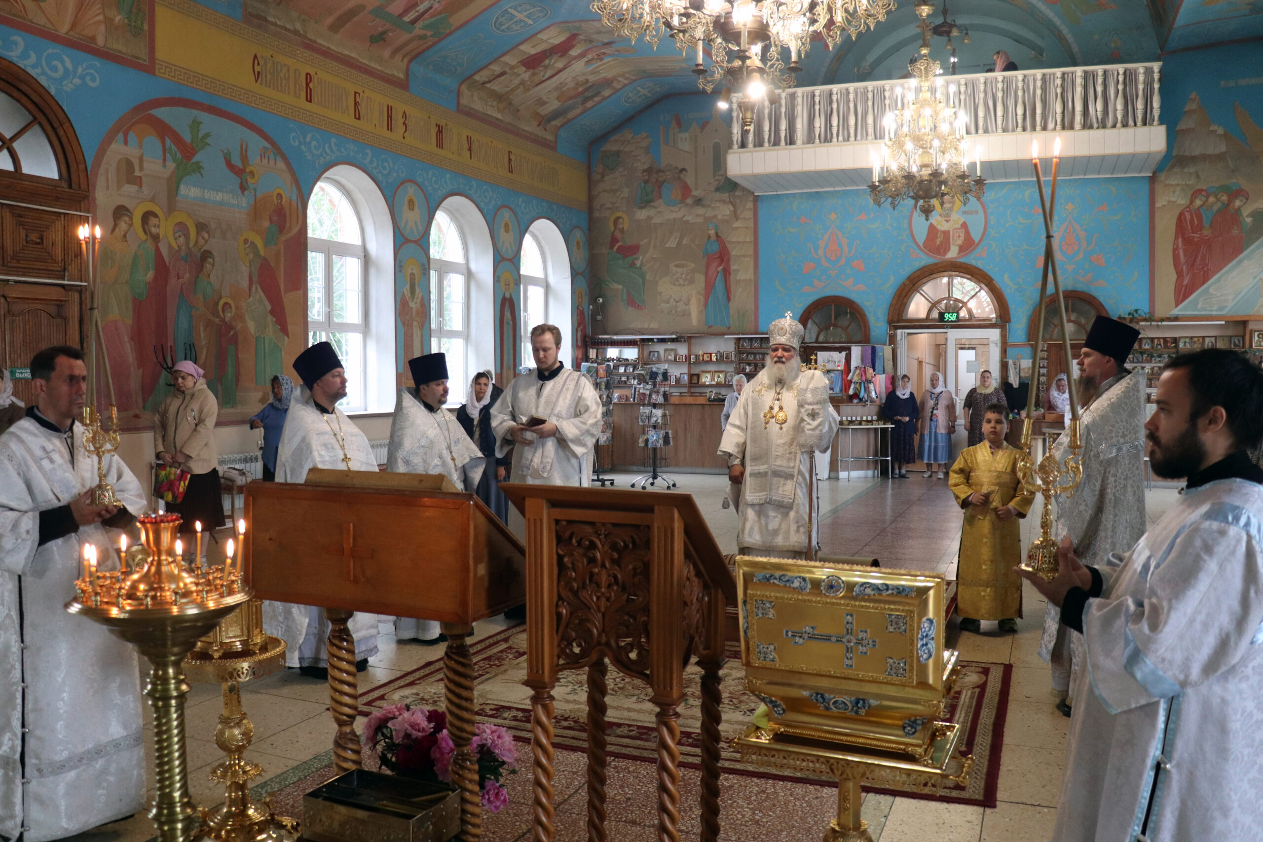 Его Преосвященству сослужили: настоятель собора протоиерей Сергий Корчагин, протоиерей Александр Бузыгин, иерей Павел Шелемин и диакон Иоанн Шумилин.