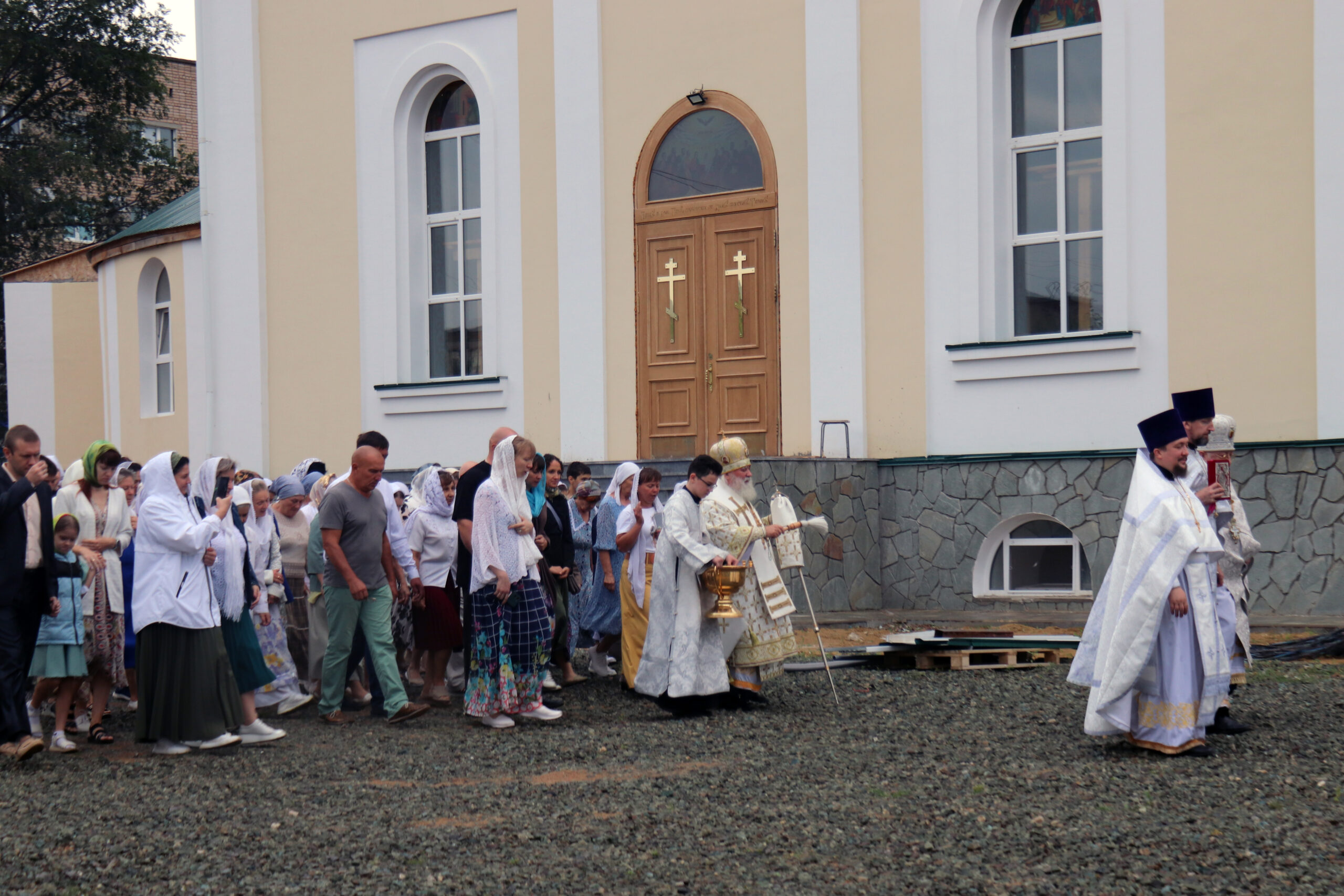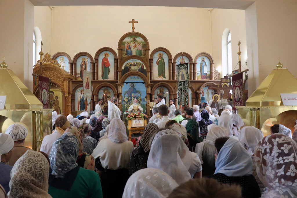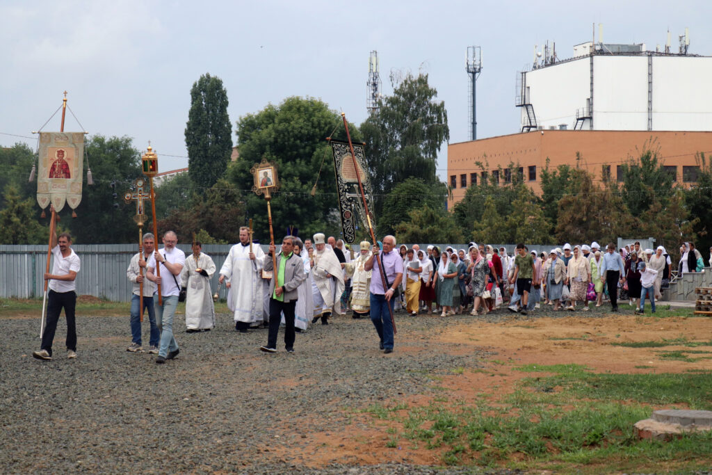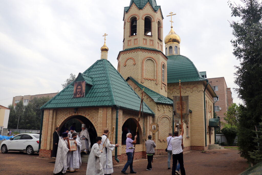 После Божественной литургии состоялся праздничный крестный ход вокруг Преображенского храма и Свято-Троицкого кафедрального собора.