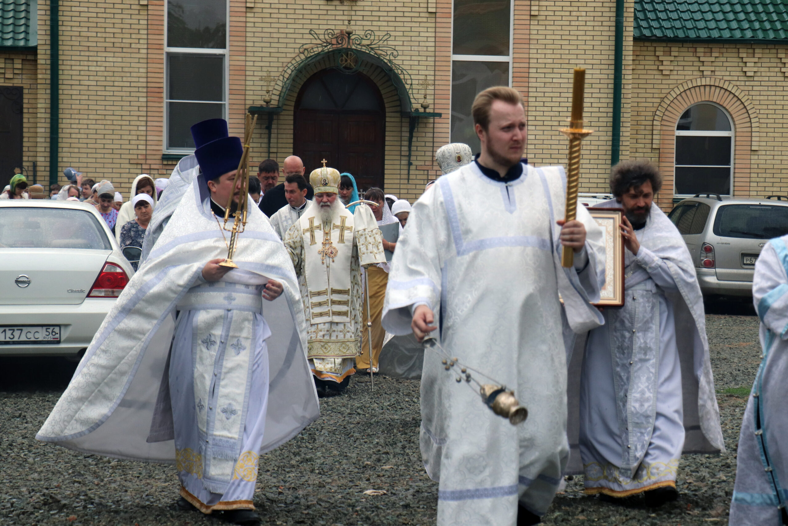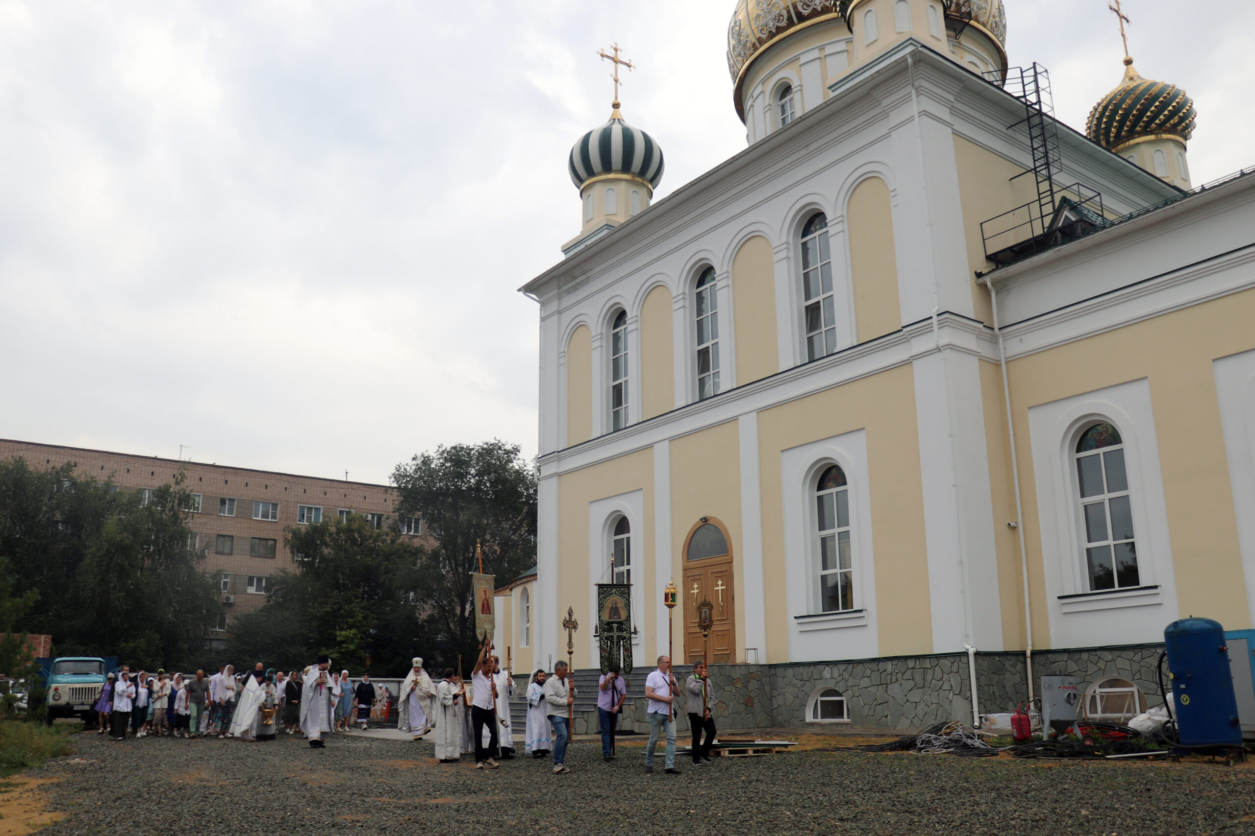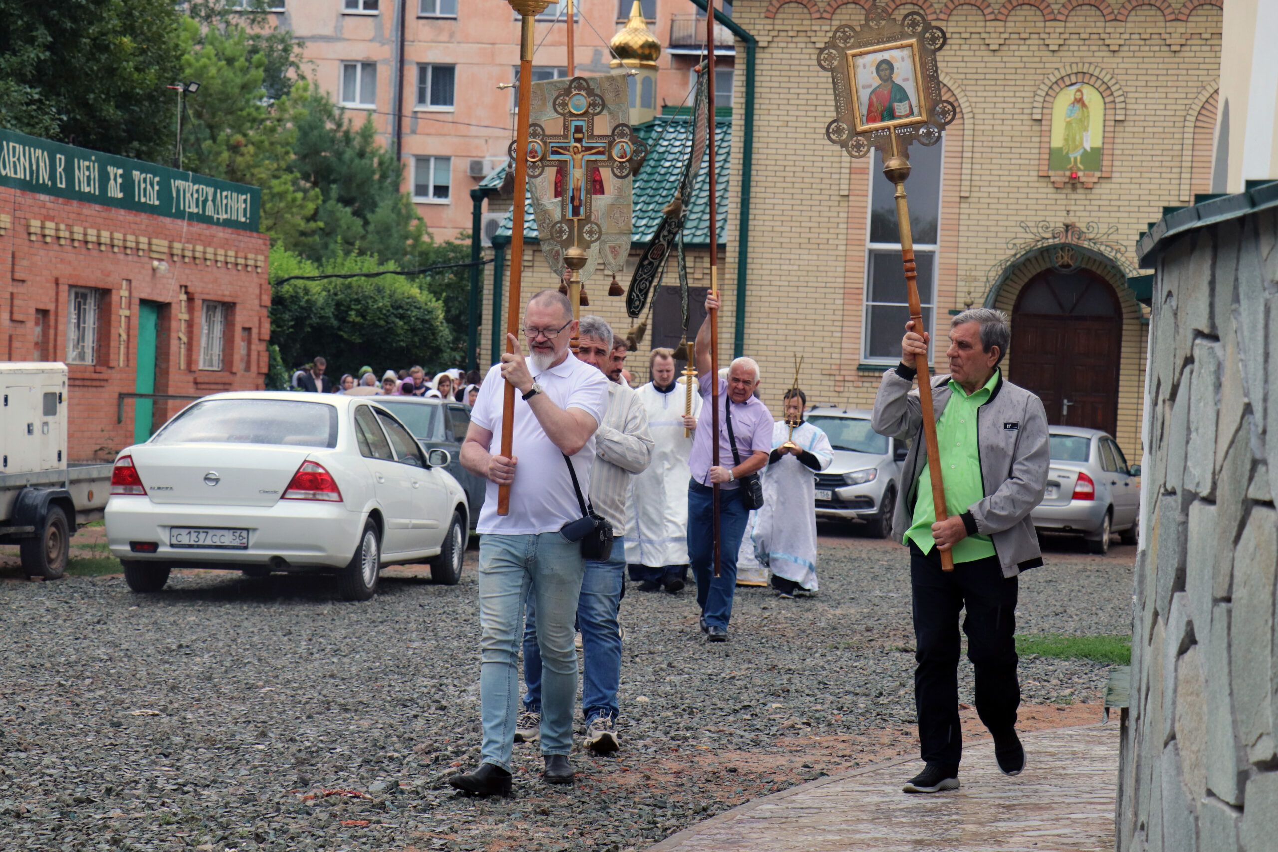 После Божественной литургии состоялся праздничный крестный ход вокруг Преображенского храма и Свято-Троицкого кафедрального собора.