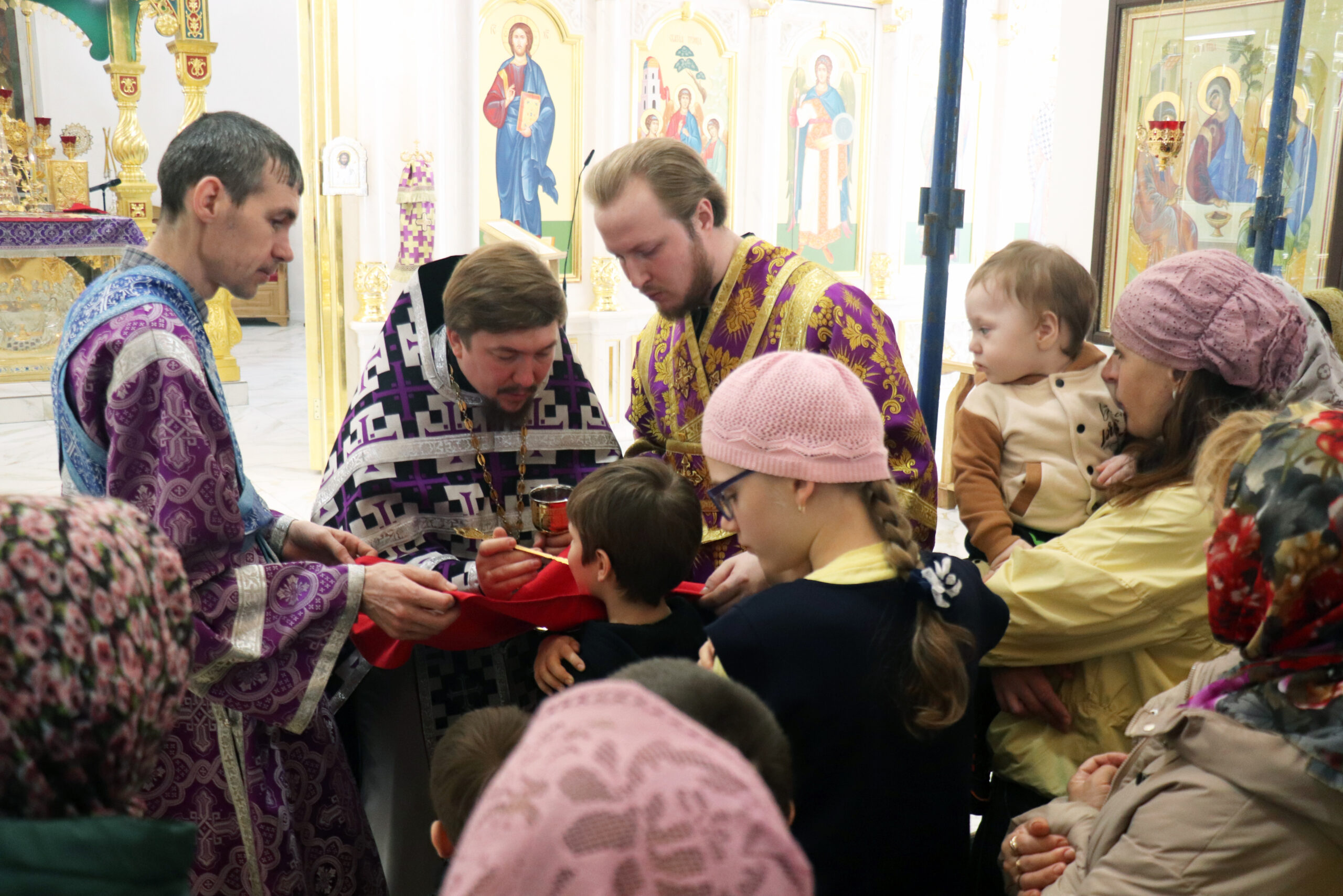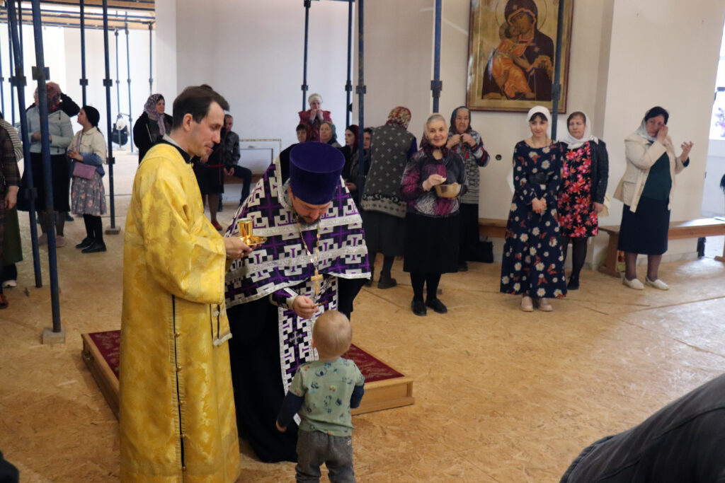 После Литургии иерей Дионисий Горбунов и архимандрит Ефрем совершили Таинство Соборования.