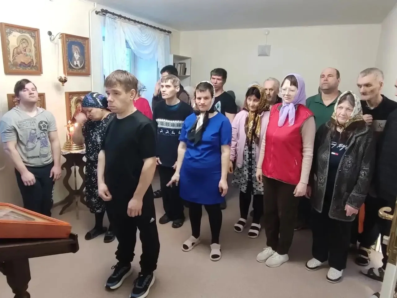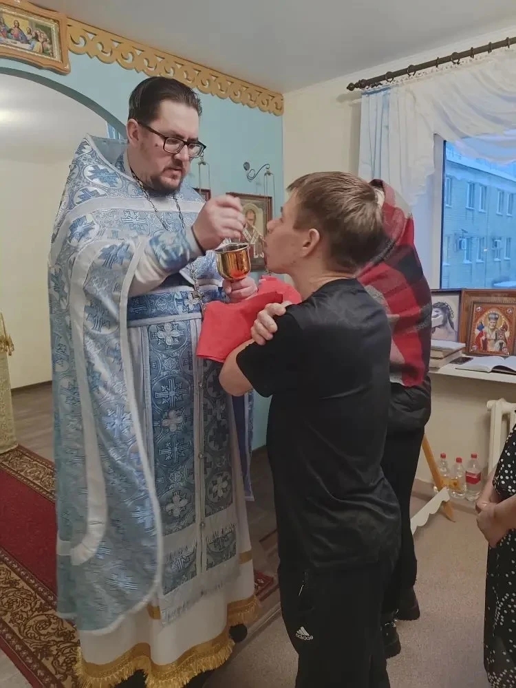 За богослужением, проживающие в интернате, причастились Святых Христовых Тайн, а тех, кто в силу болезней и возраста не смогли присутствовать на Литургии, священники посетили лично.