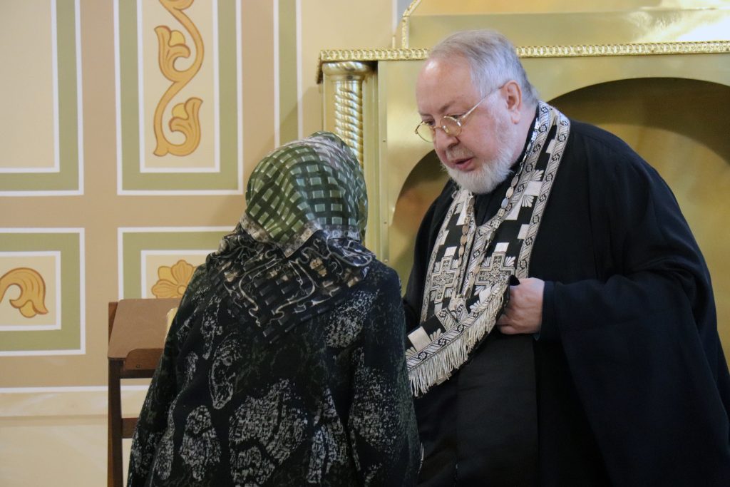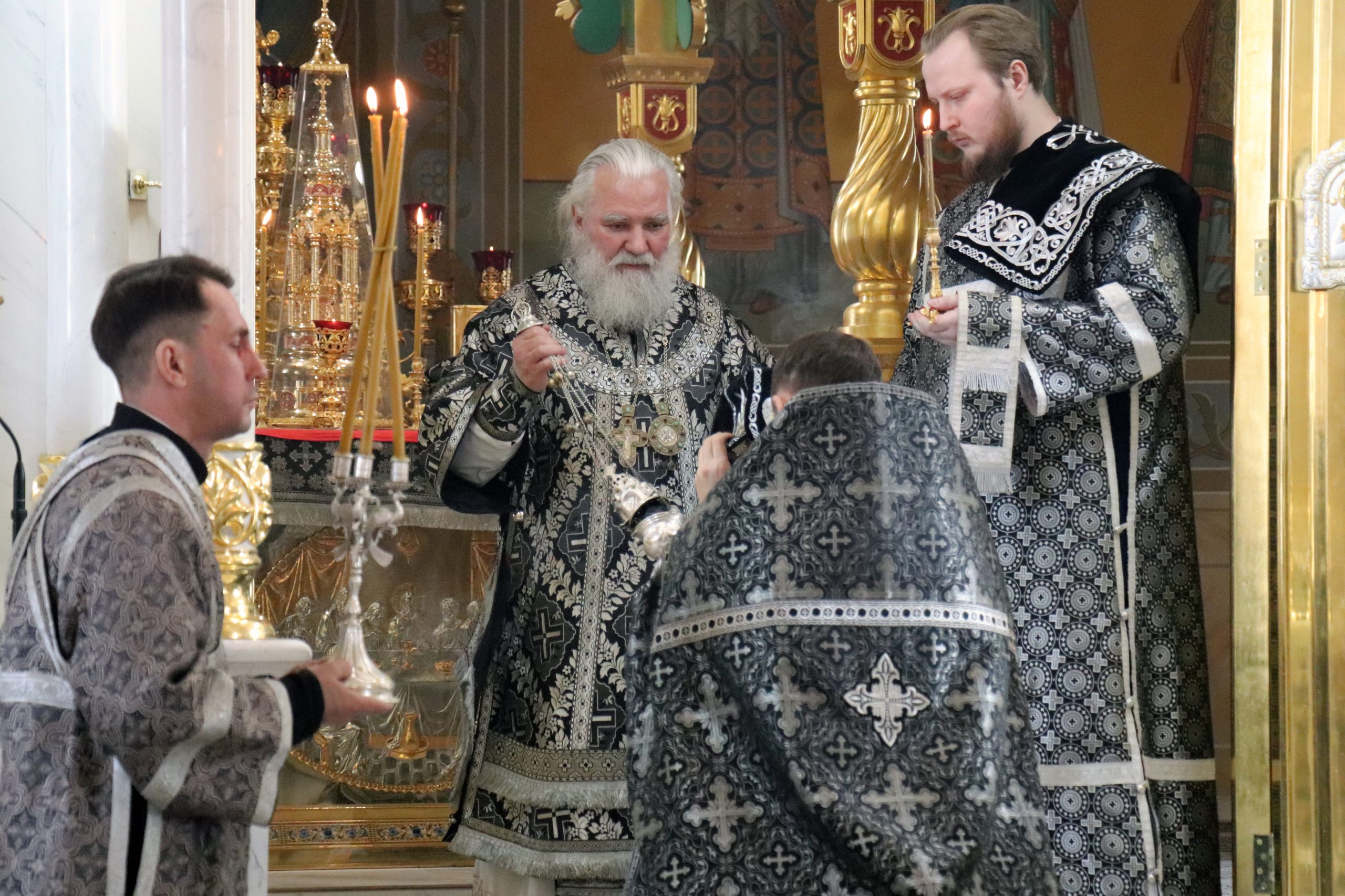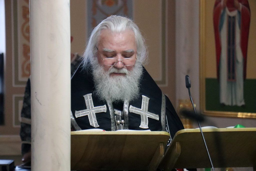 Его Преосвященству сослужили: архимандрит Ефрем (Матынцев), иерей Вадим Зотов и диакон Иоанн Шумилин.
