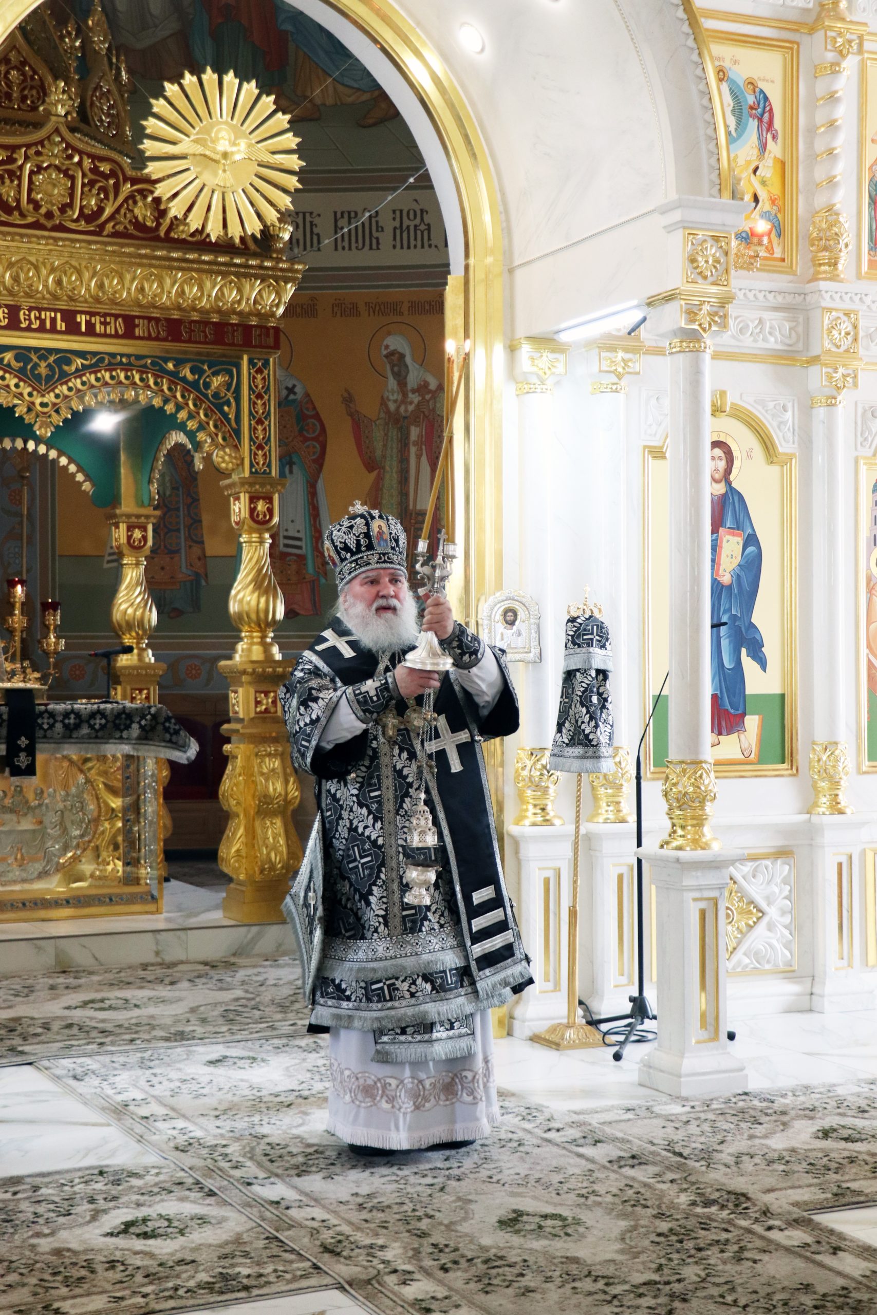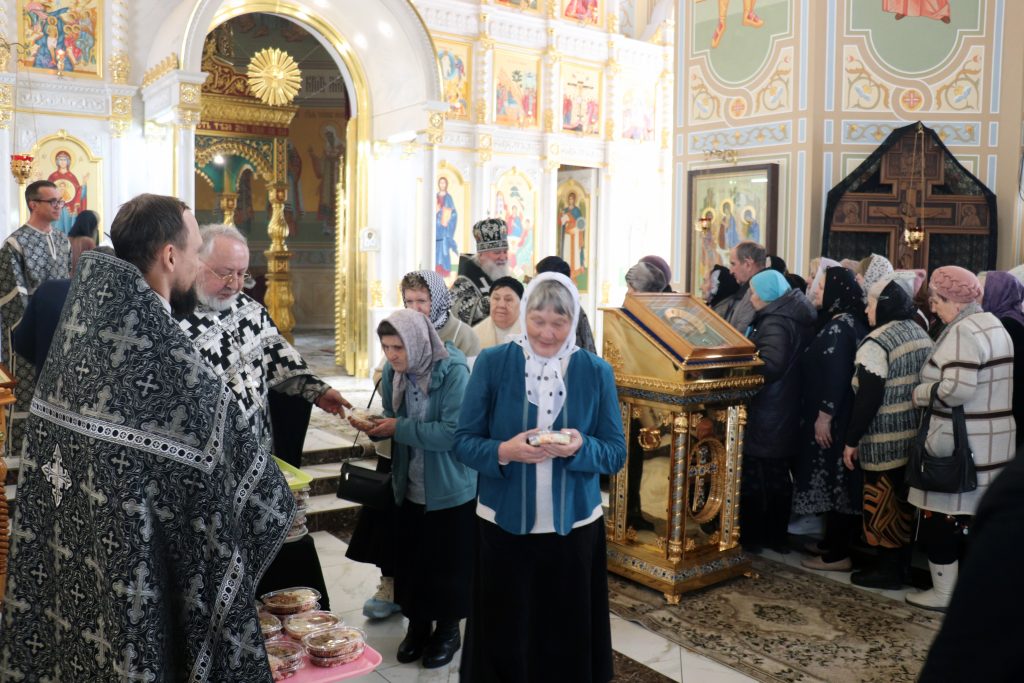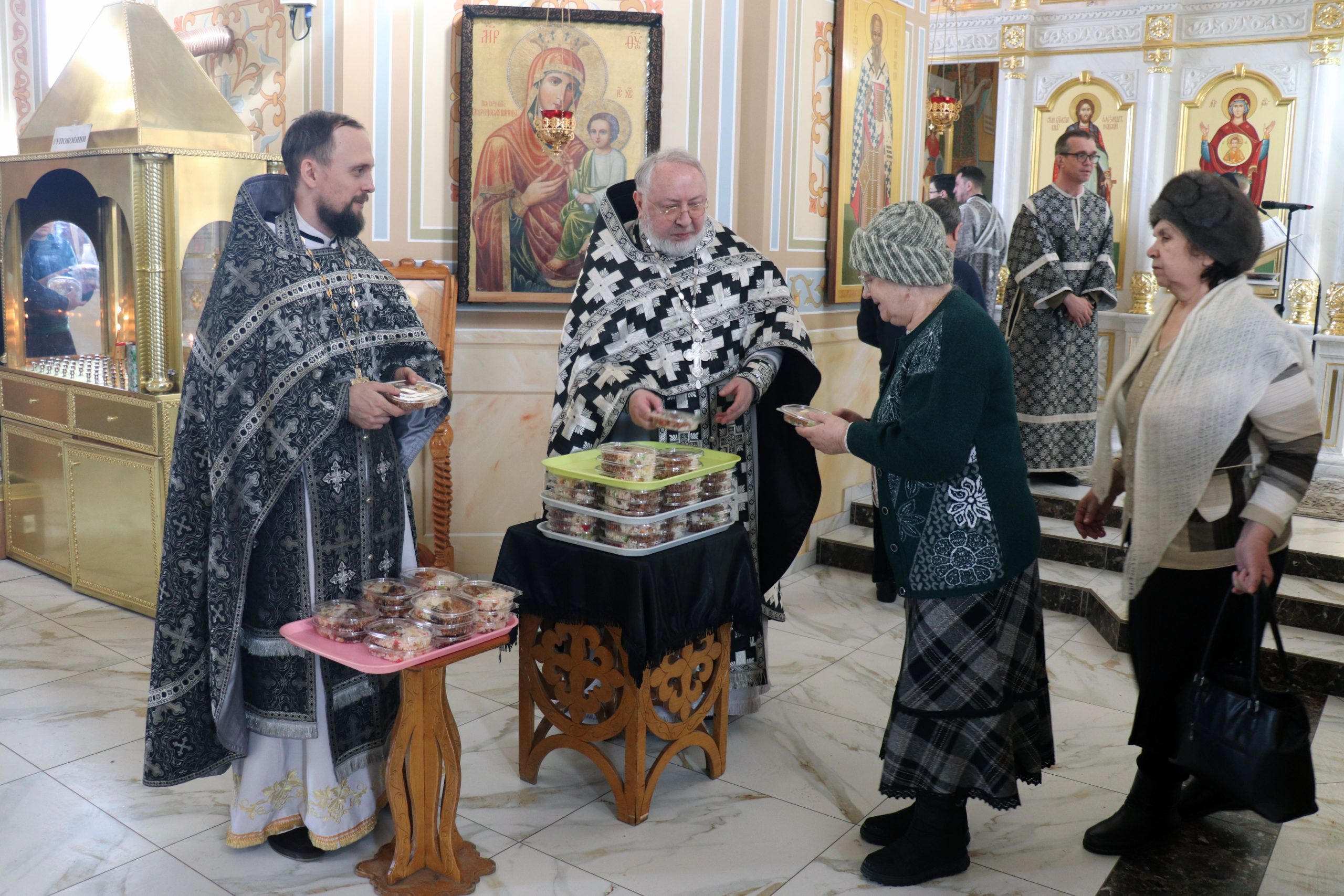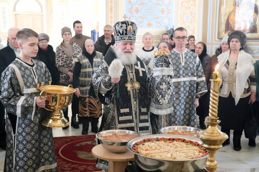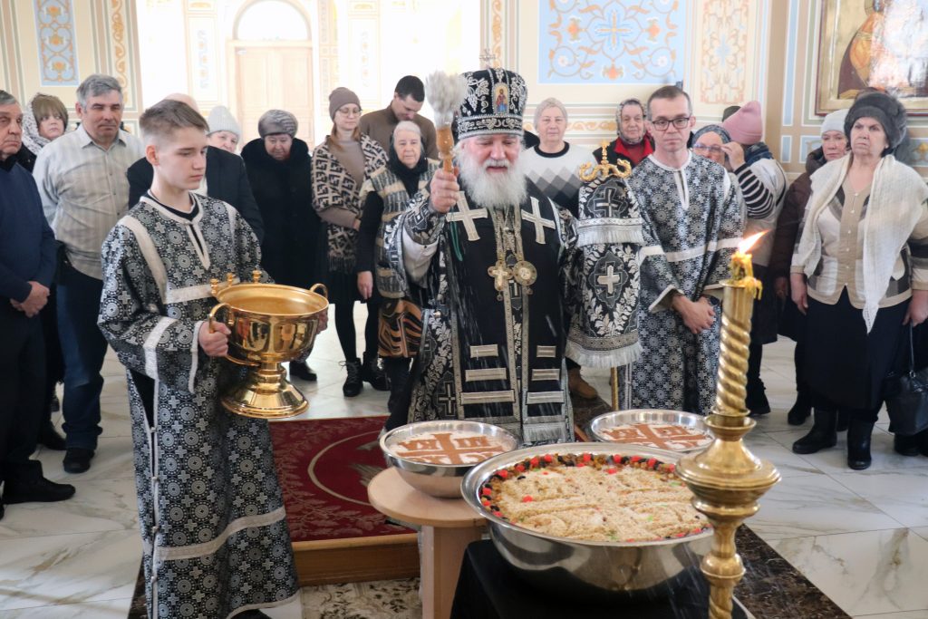 По окончании Литургии Преждеосвященных Даров Владыка Алексий совершил уставной молебен великомученику Феодору Тирону с освящением колива и обратился к прихожанам с проповедью об истории сегодняшнего праздника.