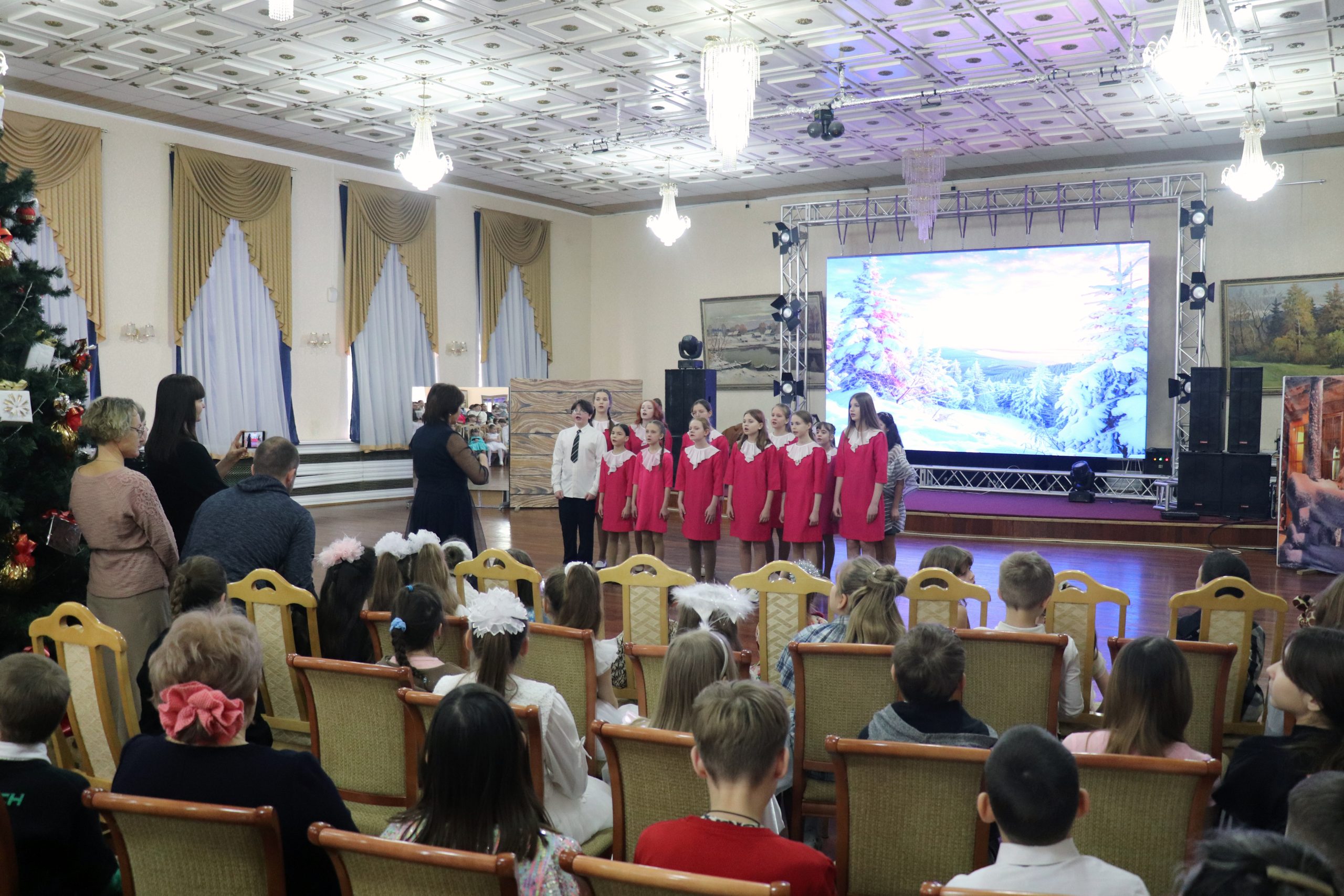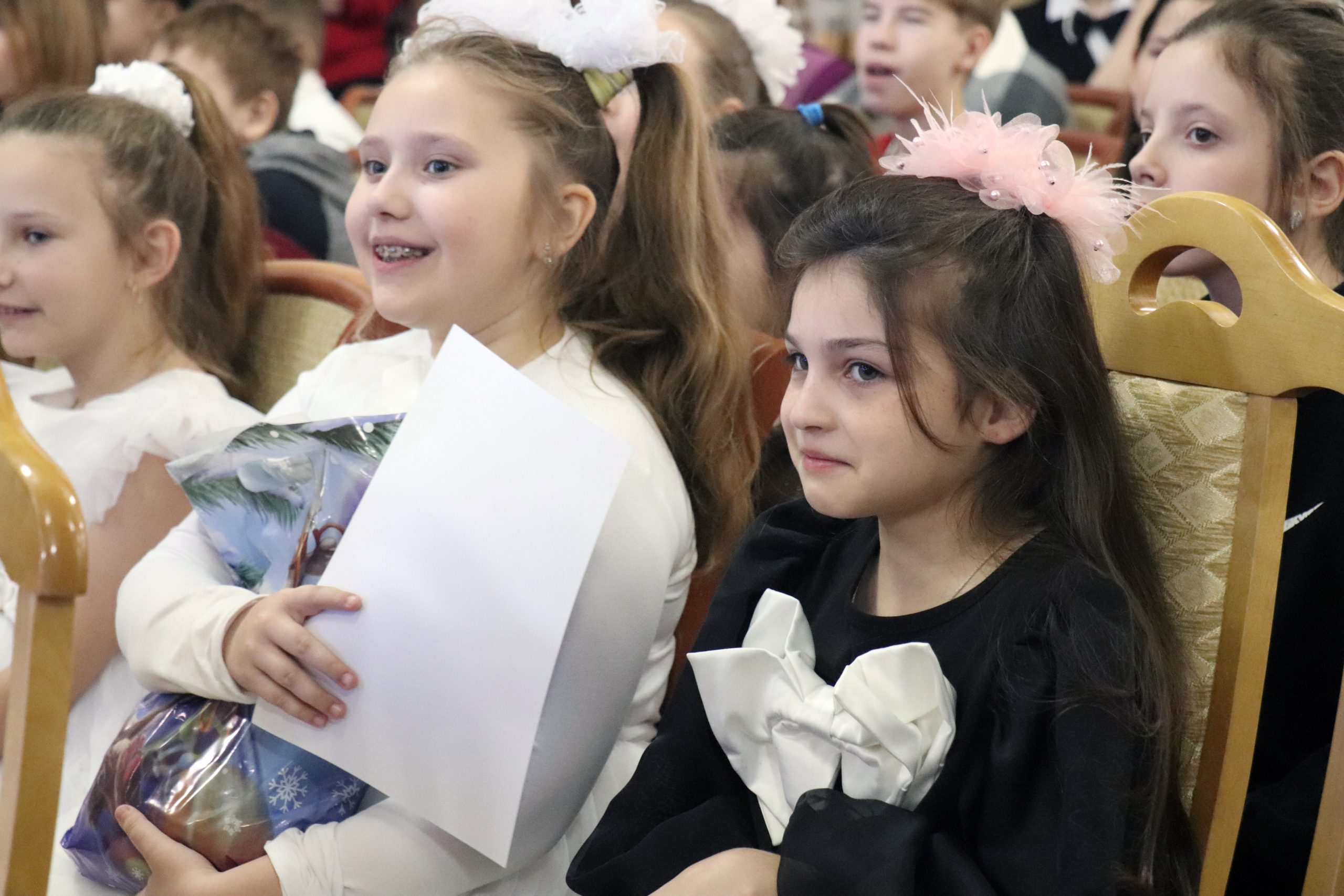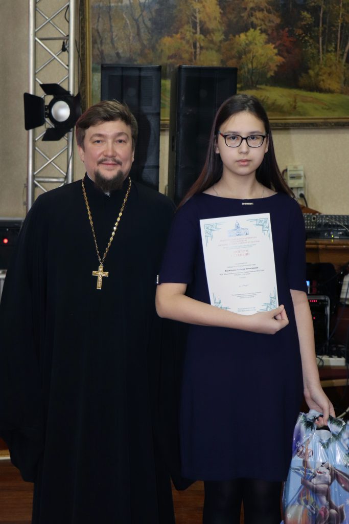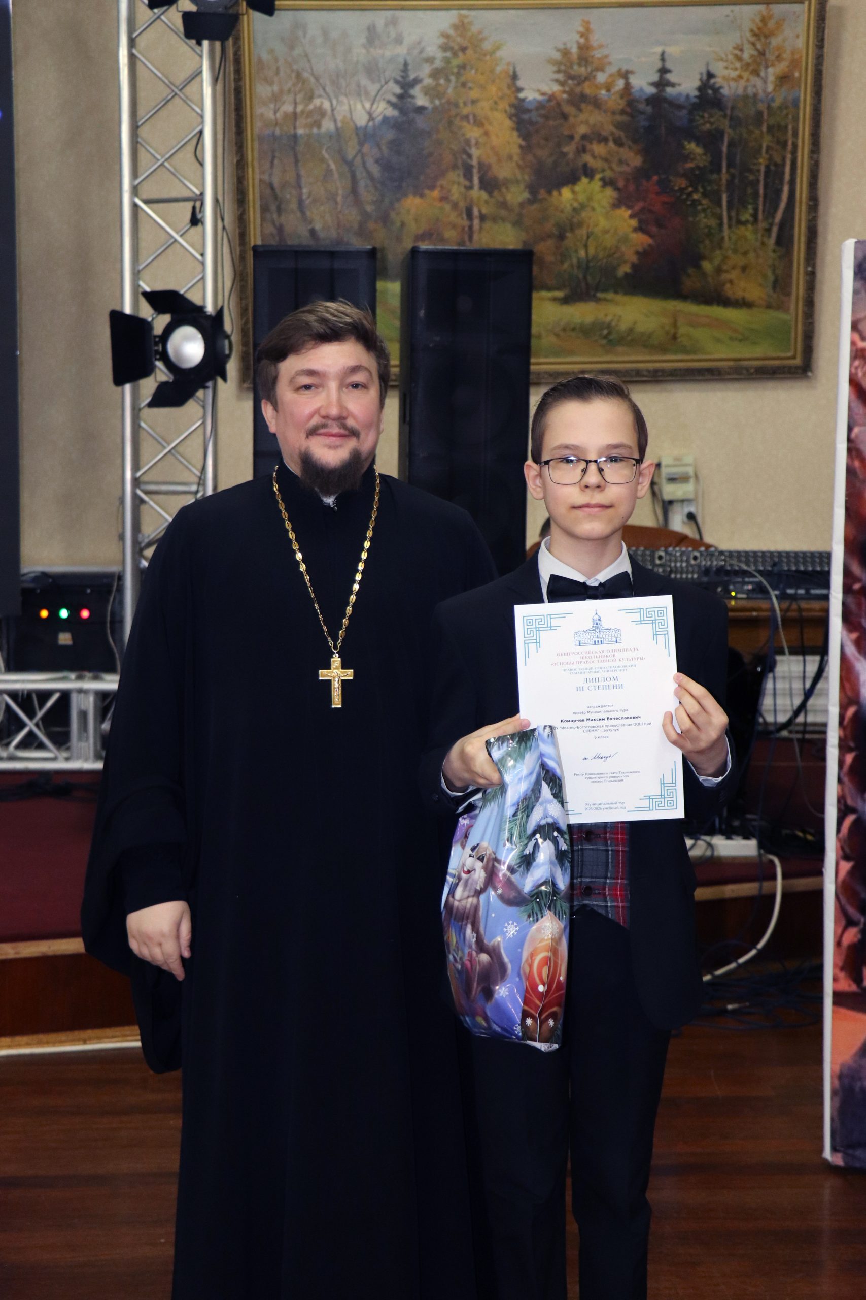 Далее состоялось награждение епархиальными грамотами и благодарственными письмами победителей в детском творческом конкурсе «Красота Божиего мира». После чего началось театрализованное представление, подготовленное творческим коллективом ДК «Юбилейный». По окончании праздника все ребятишки получили сладкие подарки.
