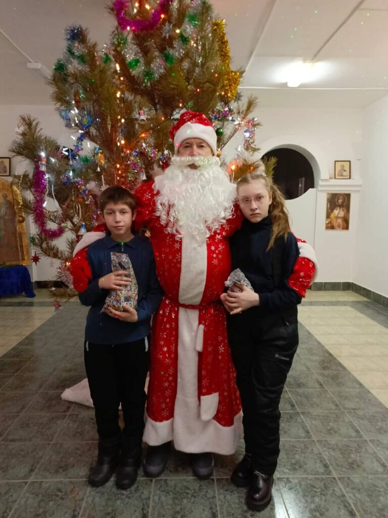 Всем детям, присутствующим в зале, Дед Мороз со Снегурочкой подарили Рождественские подарки и вкусное угощение.
