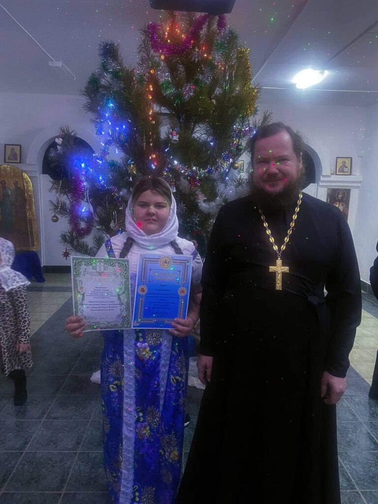 С поздравлениями и добрыми пожеланиями, настоятель храма иерей Виталий Прилибко, открыл праздничное мероприятие. Священник вручил детям грамоты за участие в международном конкурсе детского творчества «Красота Божьего Мира: времён связующая нить», посвящённого 80-летию Победы в Великой Отечественной войне.
