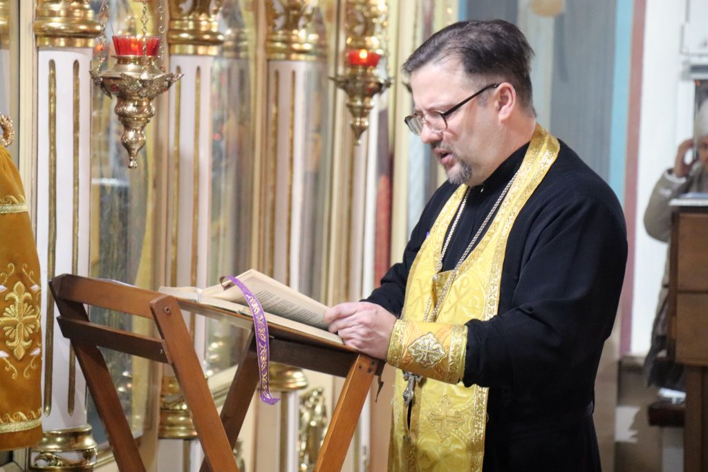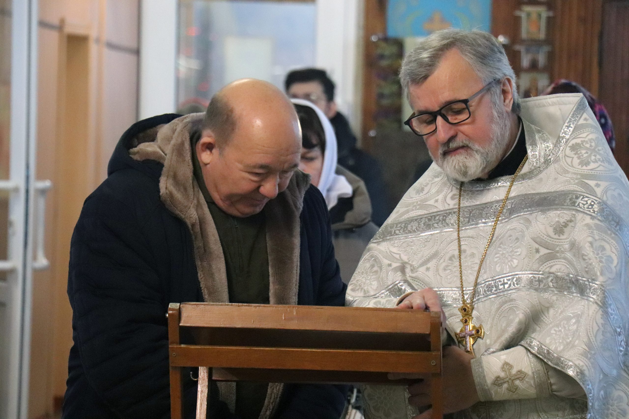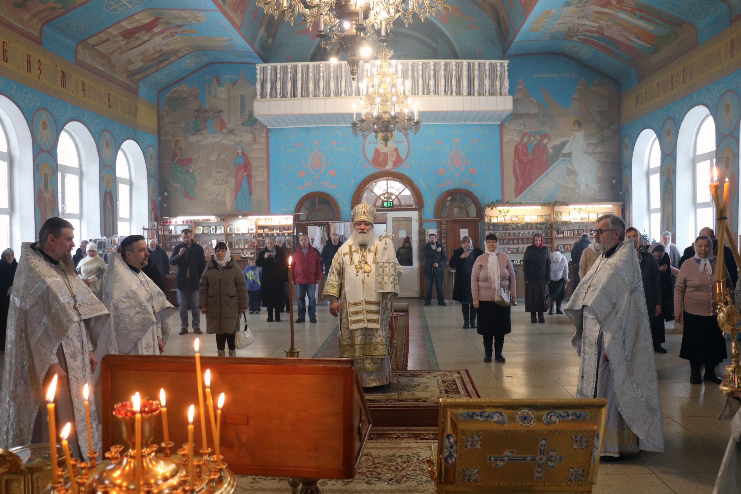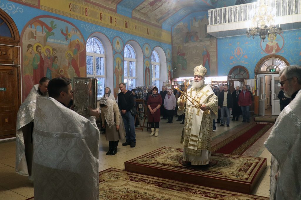 Его Преосвященству сослужили: настоятель собора протоиерей Сергий Корчагин, протоиерей Александр Аухимик, протоиерей Александр Бузыгин.