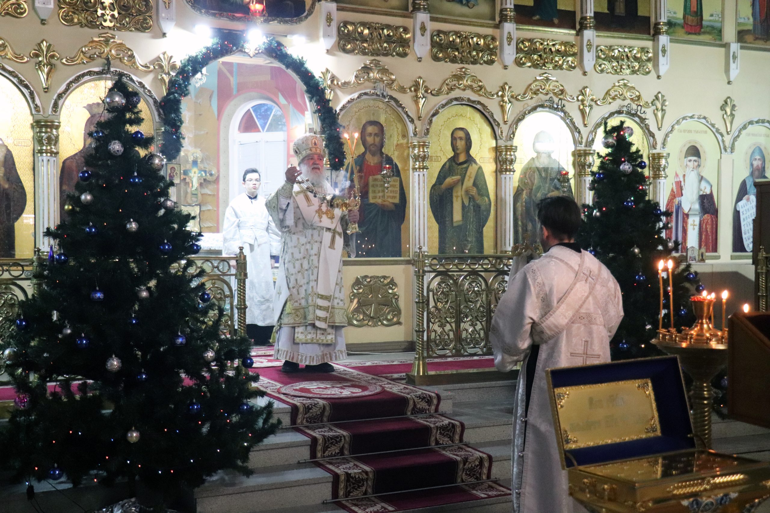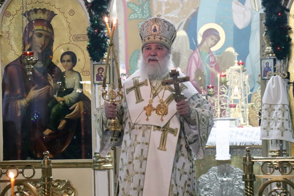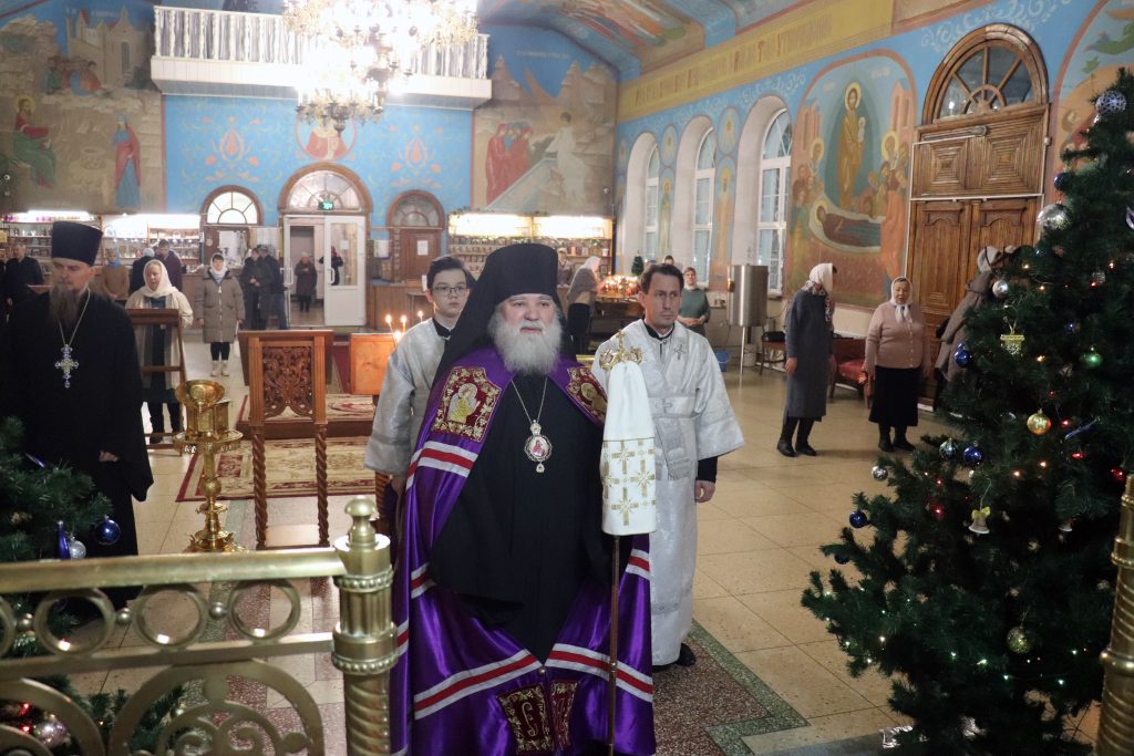 По отпусте Литургии Владыка Алексий обратился к прихожанам с проповедью, поздравив с Рождественским сочельником и призвал благодарить Господа нашего Иисуса Христа, за то, что Он пришел к нам во плоти человеческой, дабы ценой Своих страданий спасти нас от греха.