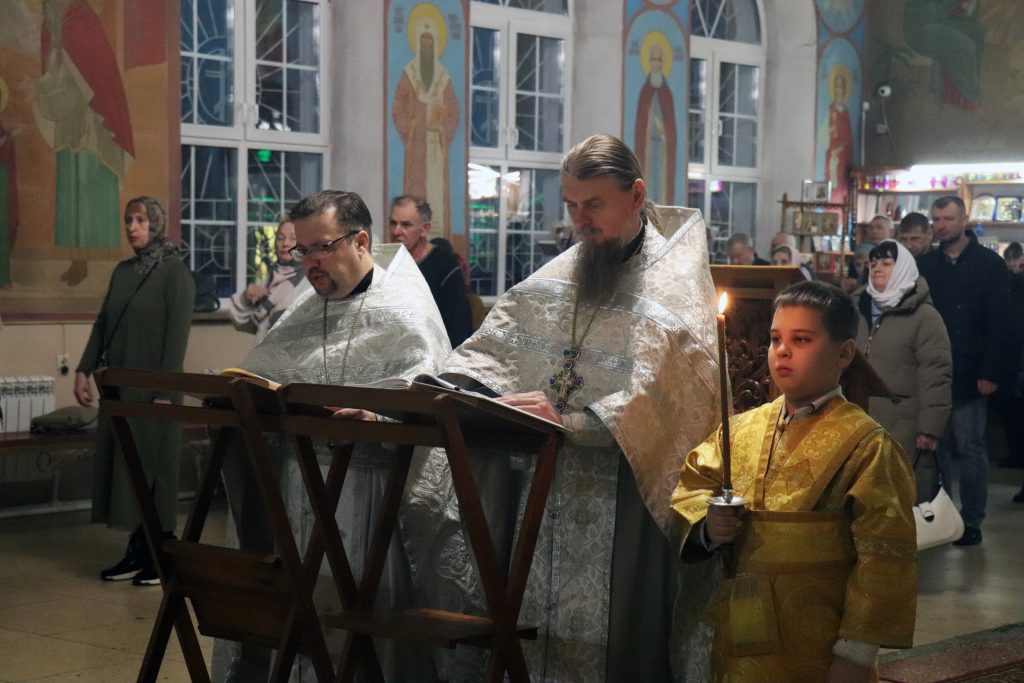 Богослужебные песнопения исполнил хор собора под управлением Ольги Корчагиной.