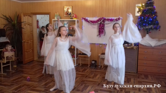Танцы стали основой концерта, и ещё несколько композиций грациозно исполнили девочки. А в заключение концерта ребята под руководством матушки Елены Суриной исполнили ещё несколько песен.