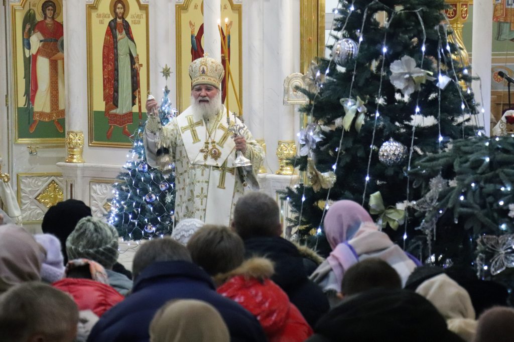 После чтения Евангелия Владыка Алексий огласил Рождественское послание Святейшего Патриарха Московского и всея Руси Кирилла. Поздравляя всех присутствующих с праздником Рождества Христова, архиерей призвал стараться, чтобы действительно наша жизнь свидетельствовала о том, что что мы действительно живем во Христе, что мы действительно желаем получить дарованное нам спасение.