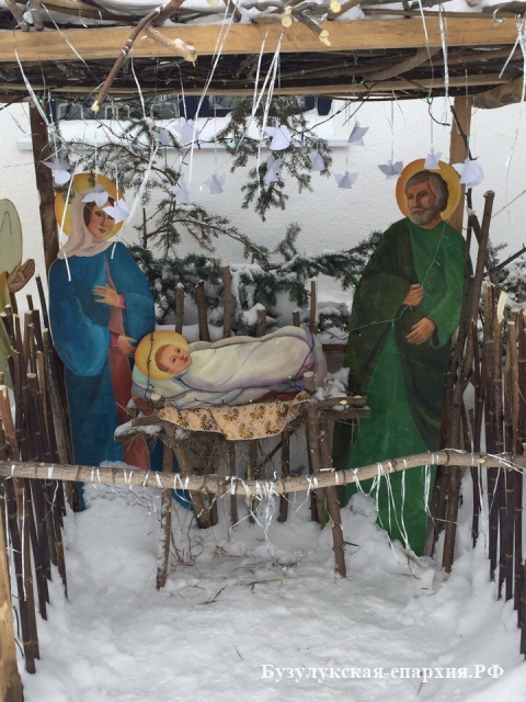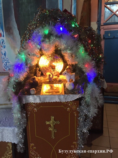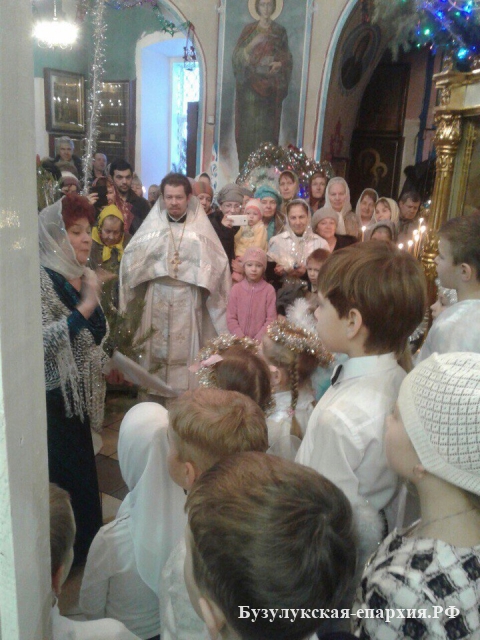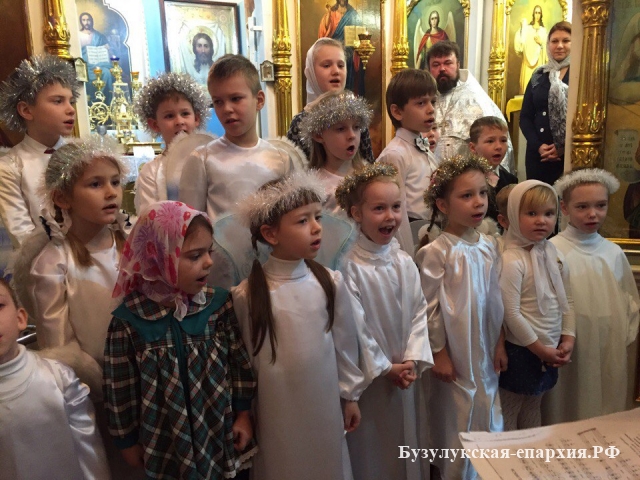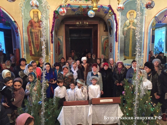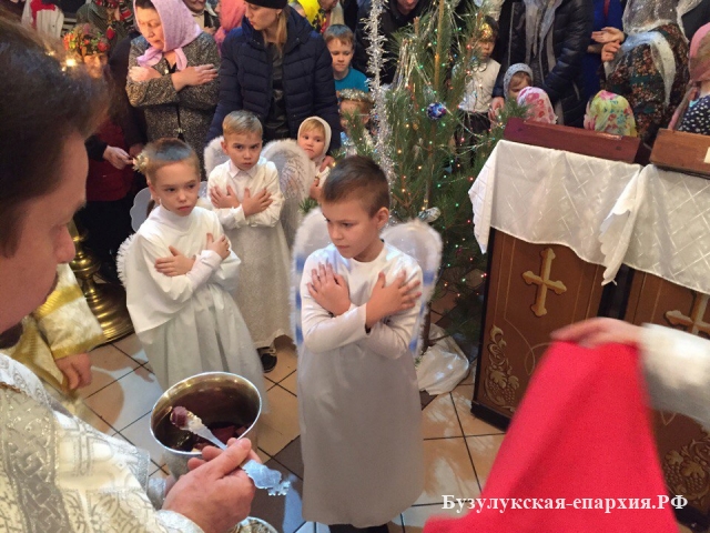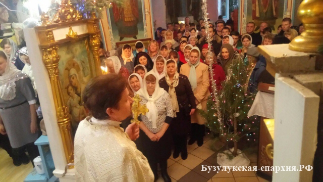 Бугуруслан. 7 января 2017 года, несмотря на вьюгу, бугурусланцы поспешили к ночной службе. В храме собралось около 400 человек. Литургию совершил настоятель храма архимандрит Симеон (Холодков). Пел хор под управлением Ольги Фияло.