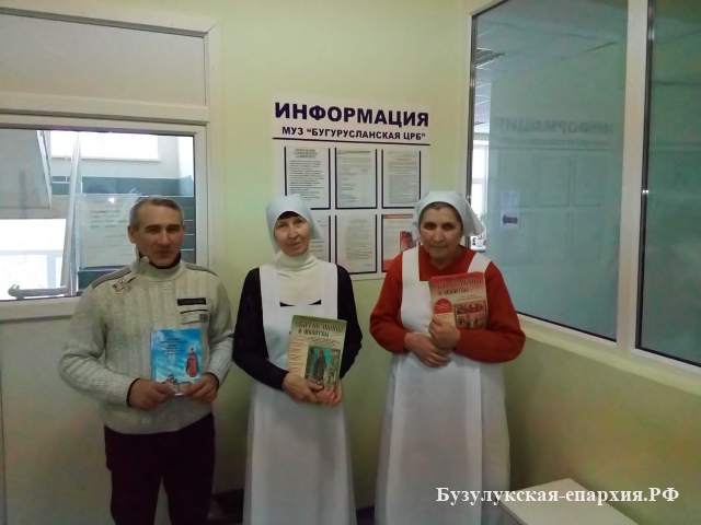 8 января по благословению Преосвященнейшего Алексия, епископа Бузулукского и Сорочинского, была проведена акция «Рождественская звезда». При храме Успения Пресвятой Богородицы г. Бугуруслана, вот уже 10 лет существует сестричество. В дни рождественских праздников сестры посетили пациентов травматологического отделения Бугурусланской районной больницы, пожелали больным скорейшего выздоровления, подарили душеполезную литературу. Имена тех, кто пожелал, записали и передали в храм, чтобы о них молились.
