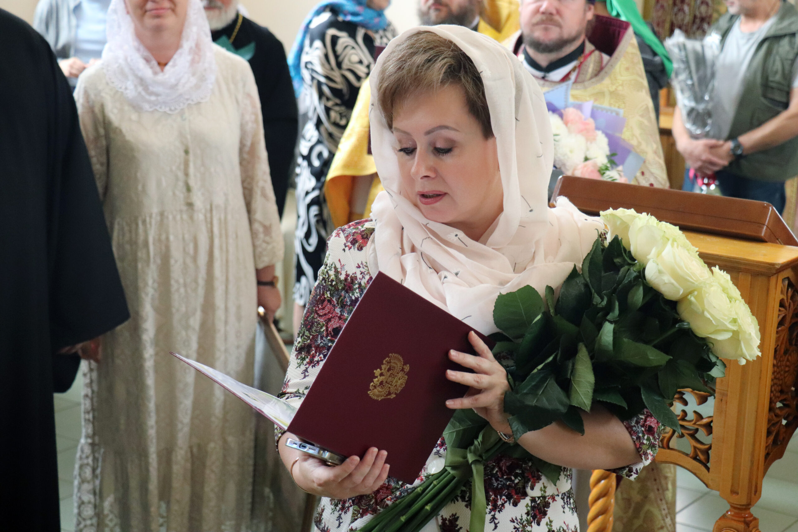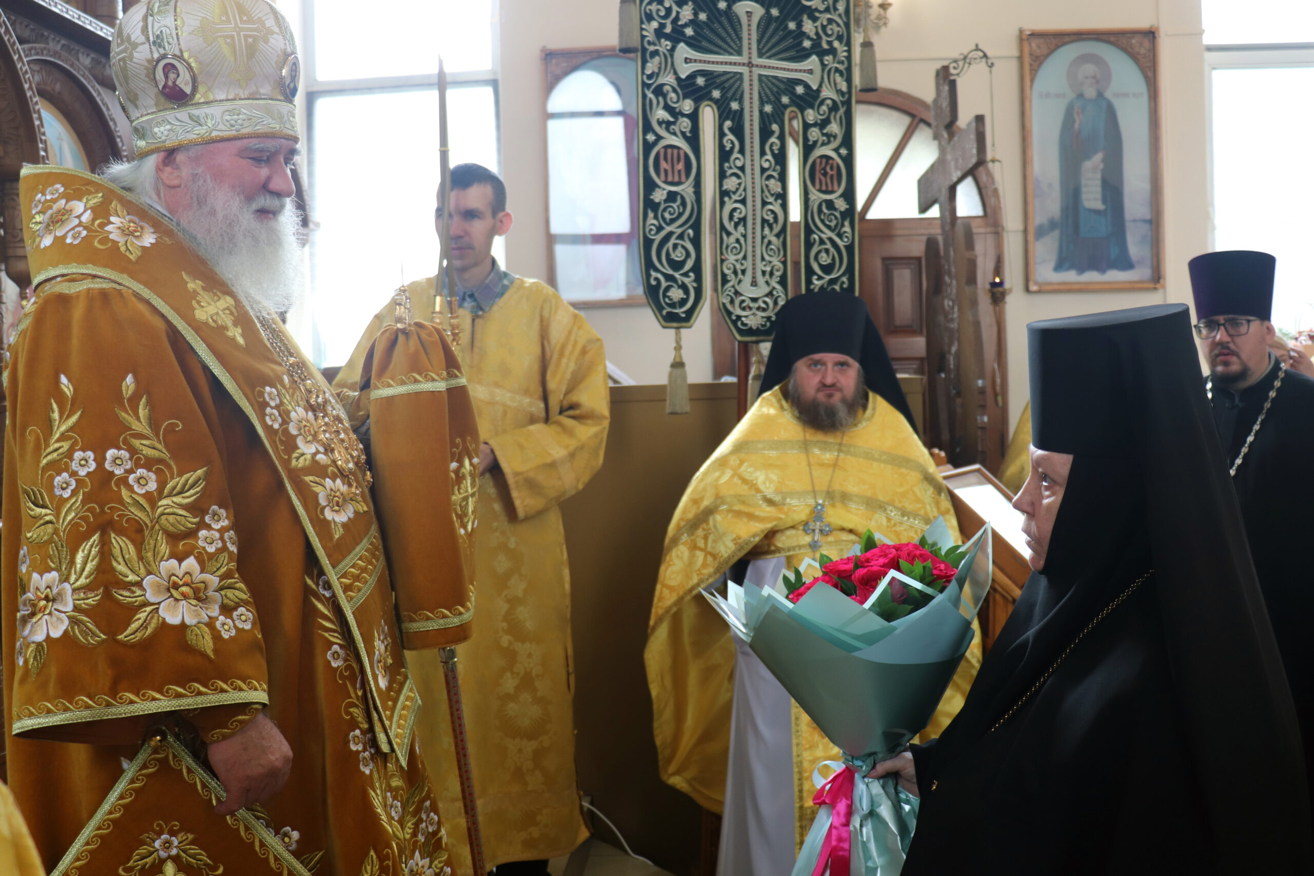 На богослужении молилась игумения Пантелеимона (Кривенкова), настоятельница Свято-Тихвинского Богородицкого женского монастыря.