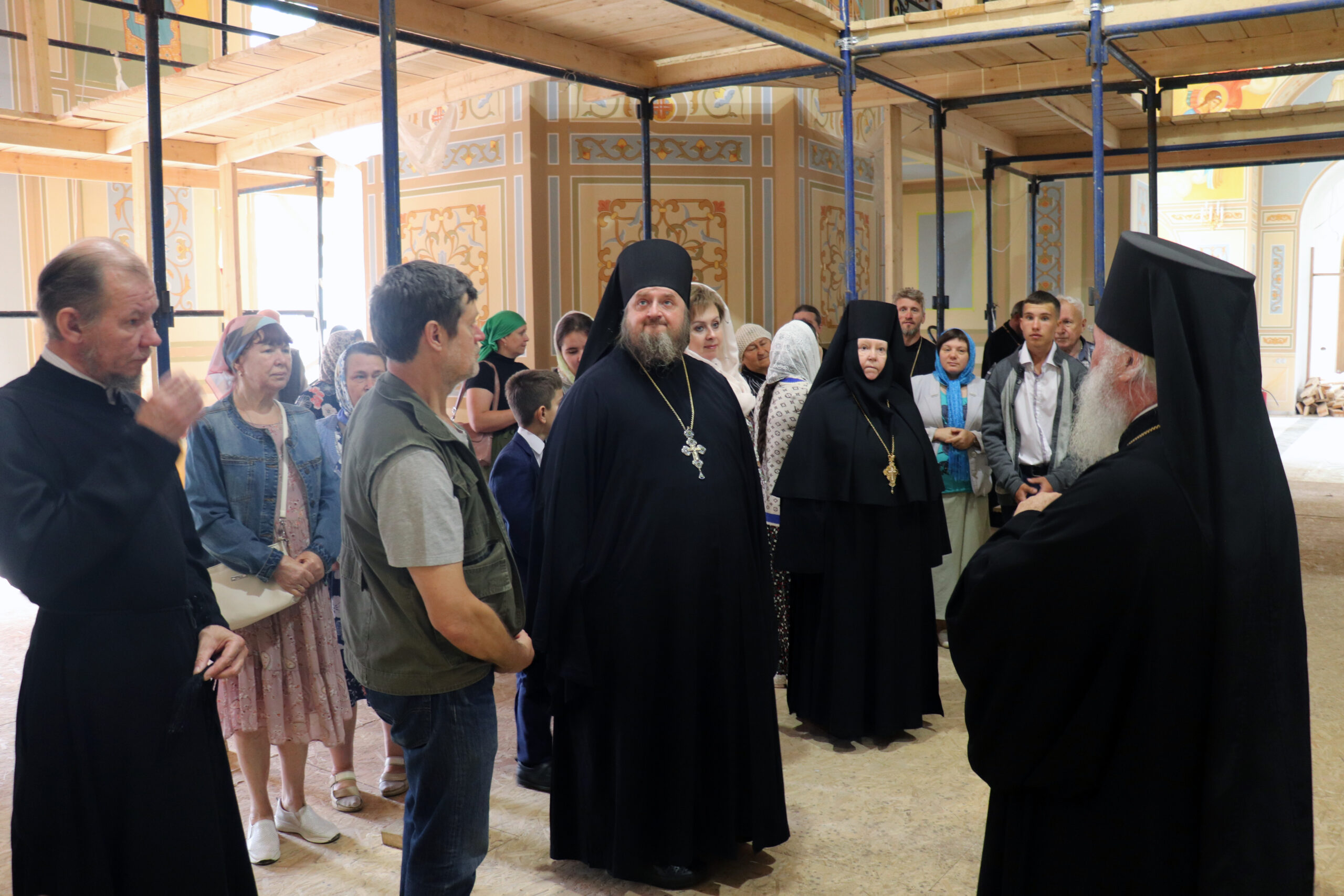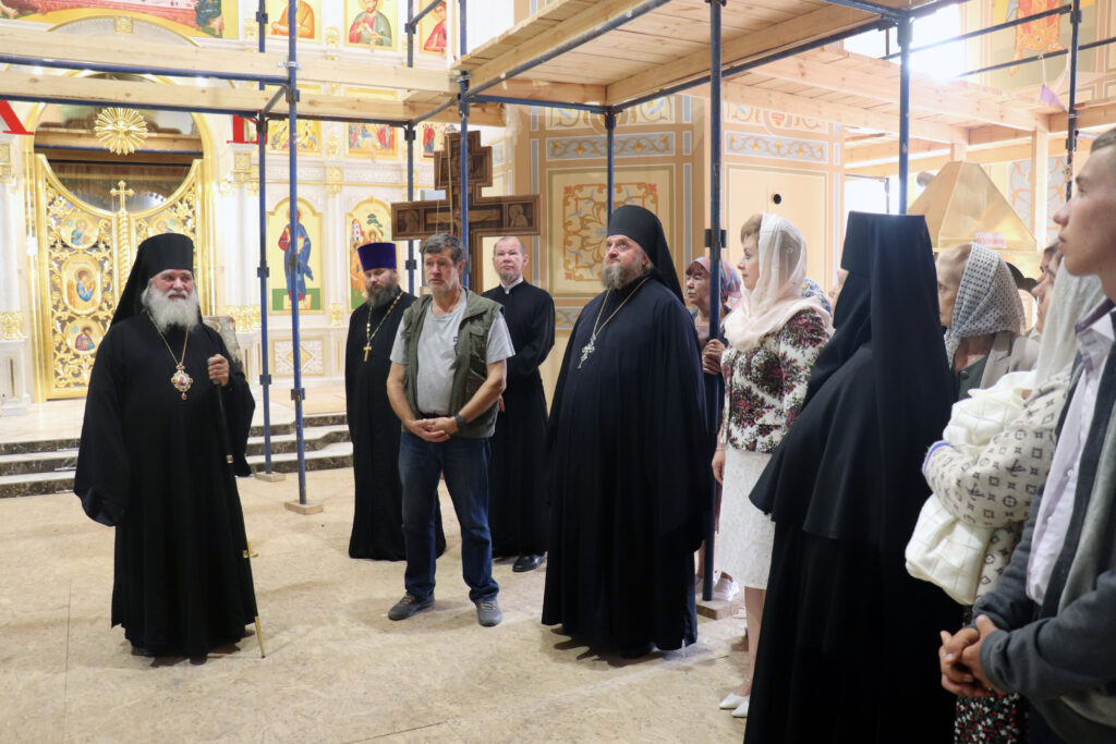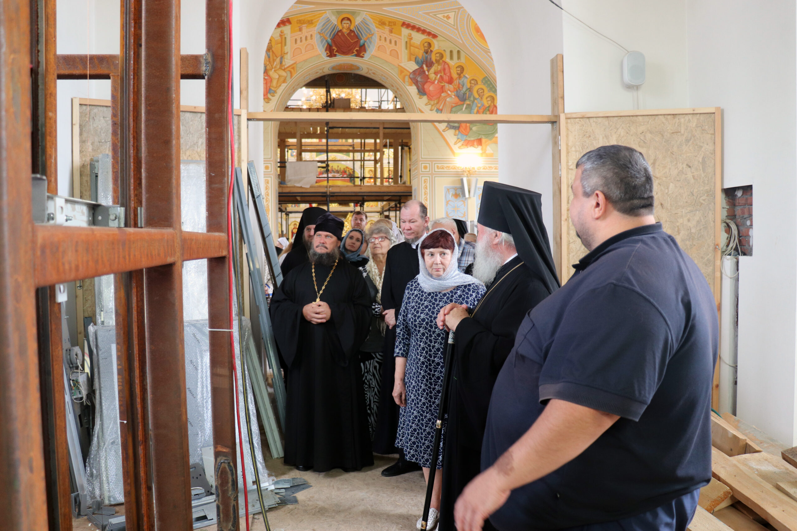 После богослужения Владыка Алексий вместе с духовенством и прихожанами осмотрели как идет работа по росписи Свято-Троицкого кафедрального собора, а также как заканчивается монтаж лифта.