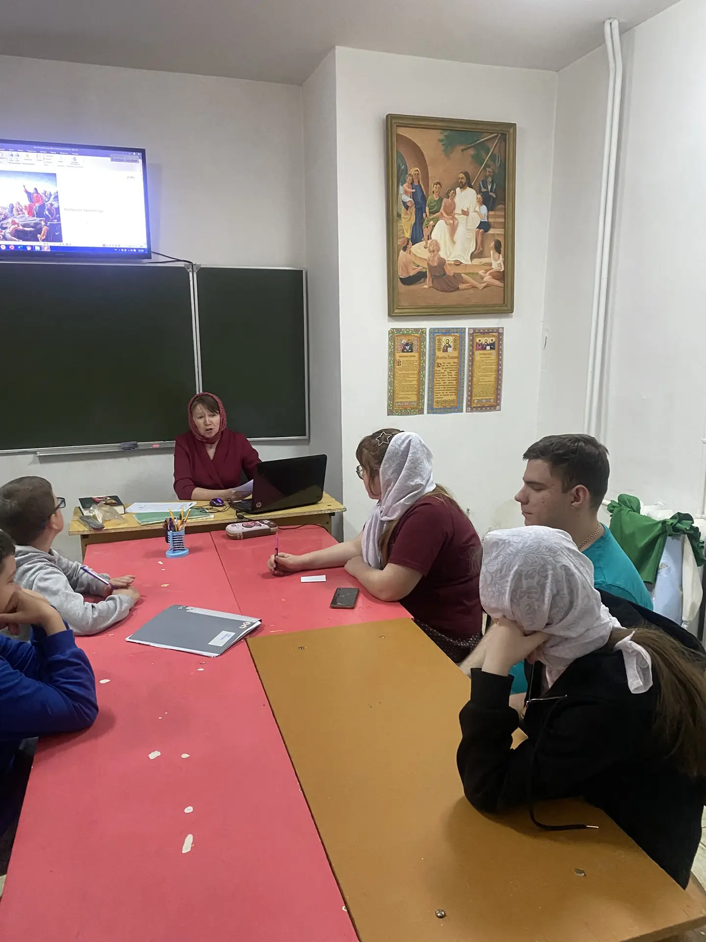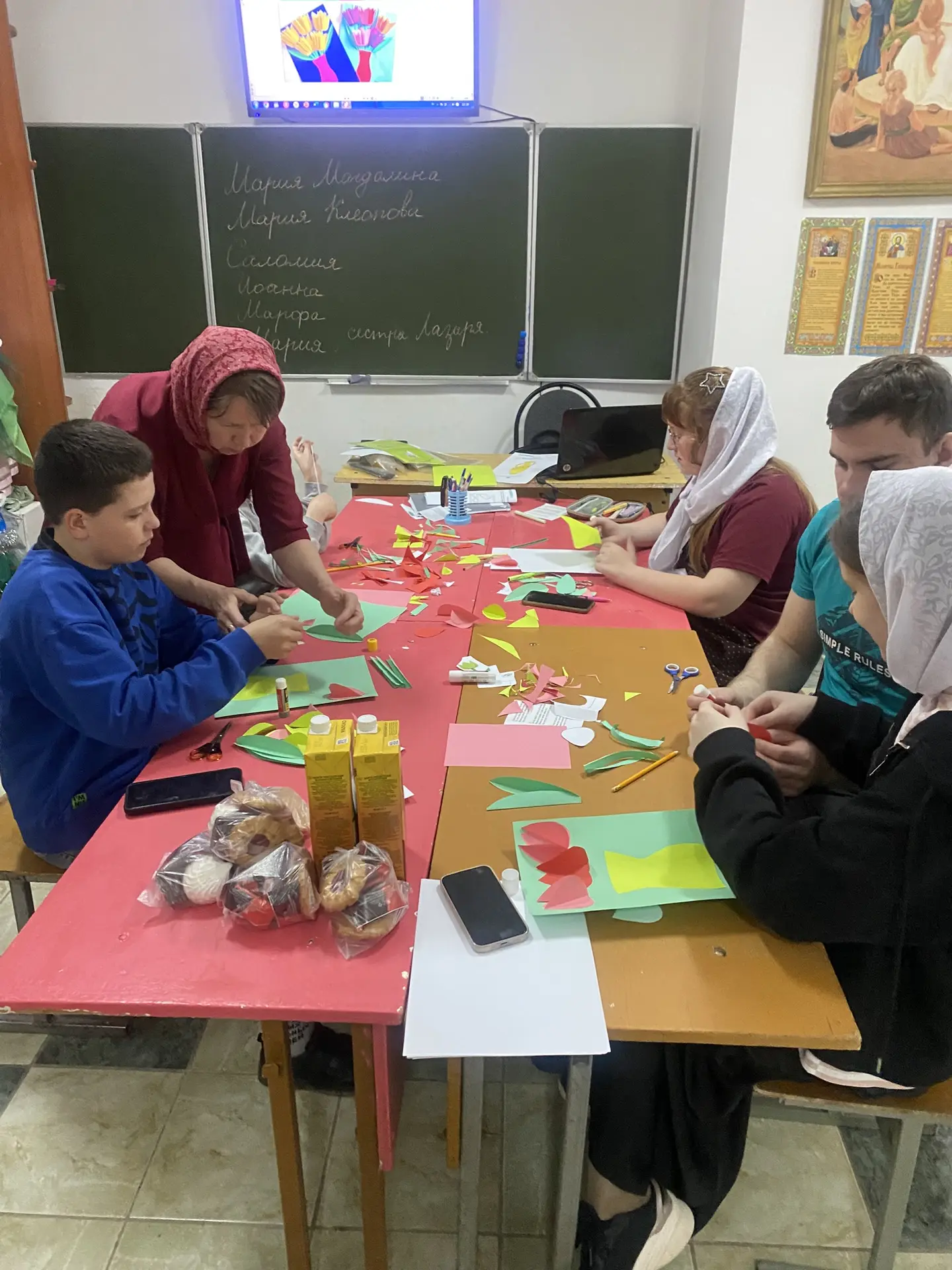 Для ребят прошло занятие, на котором, они познакомились с историей этого важного праздника, рассказали о подвиге жен-мироносиц и прослушали песню о них, а потом и сами исполнили песню о своих любимых и заботливых мамах. Учащиеся воскресной школы сделали своими руками букеты тюльпанов для своих мам, бабушек, сестрёнок, чтобы выразить свою любовь и благодарность.