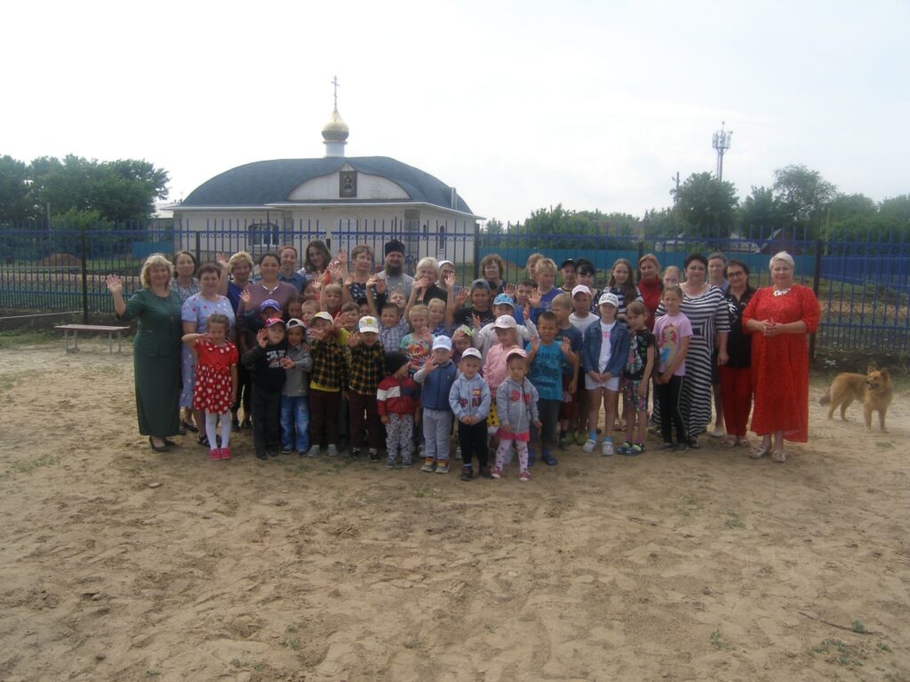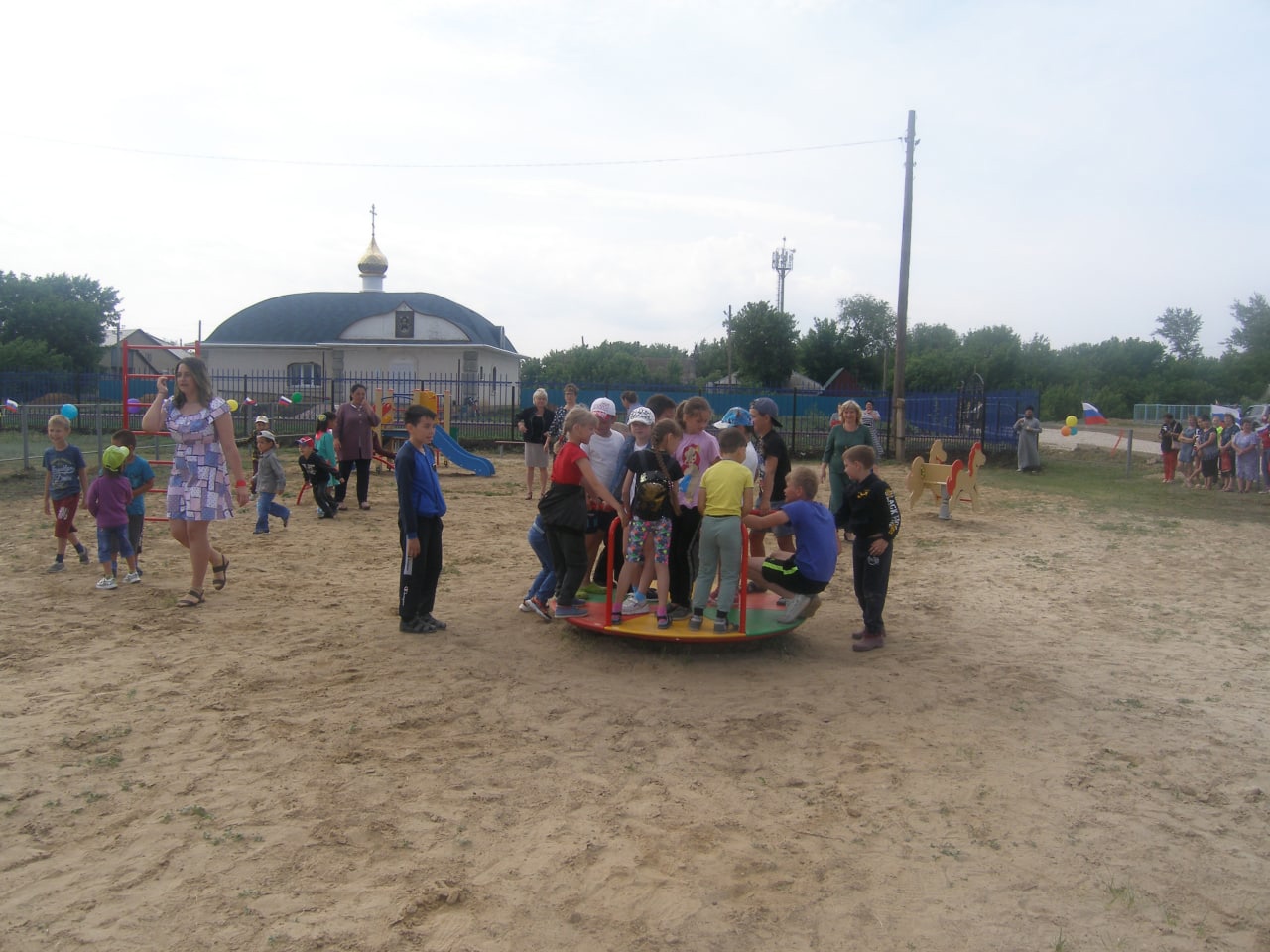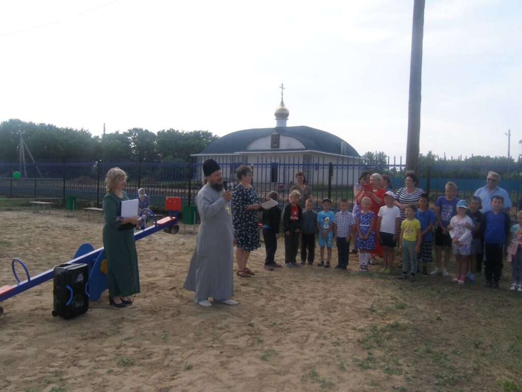 Утром первого летнего дня здесь собрались воспитанники детского сада «Колосок» и ученики школы, их педагоги и родители, представители администрации и духовенства, работники культуры, жители села. Право торжественно разрезать красную ленточку у входа на площадку ведущие мероприятия Светлана Неверова и Елена Гребнева предоставили и.о. главы района Павлу Самсонову. Но Павел Васильевич решил иначе: открыть площадку должны самый младший из присутствующих ребят, и тот из них, кто лучше всех учится в школе. В итоге доверили перерезать ленточку Егору Логашкину и Алиму Казбаеву.