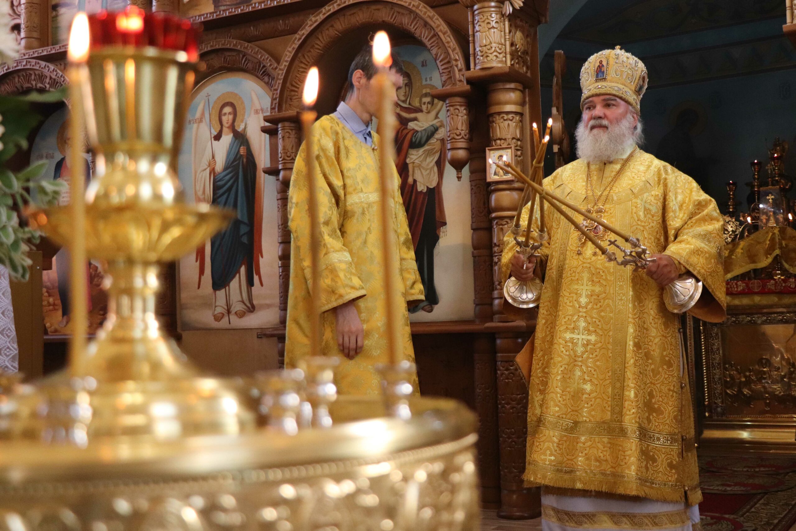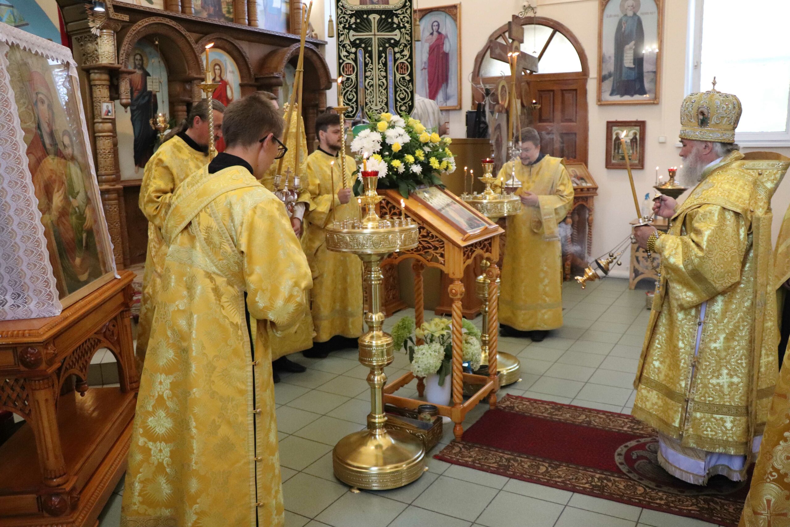 Его Преосвященству сослужили иерей Анатолий Марченков, иерей Сергий Шумилин, диаконы Давид Ганиев и Дионисий Горбунов. Пел хор под управлением Натальи Задориной.