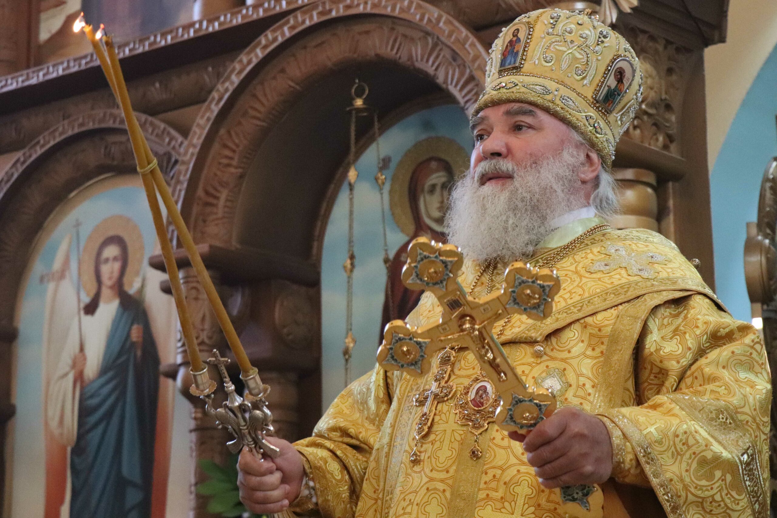 После богослужения Владыка обратился к присутствующим: «В этот день мы прославляем двенадцать апостолов, учеников и последователей Господа. Апостолы – посланники Божии – были призваны не только проповедовать слово Господа нашего Иисуса Христа, но и охранять Церковь нашу от всякого зла, врагов видимых и невидимых, от посягательств приверженцев ереси. Они, не щадя жизней своих, стояли на ее защите. И нам необходимо брать с них пример.