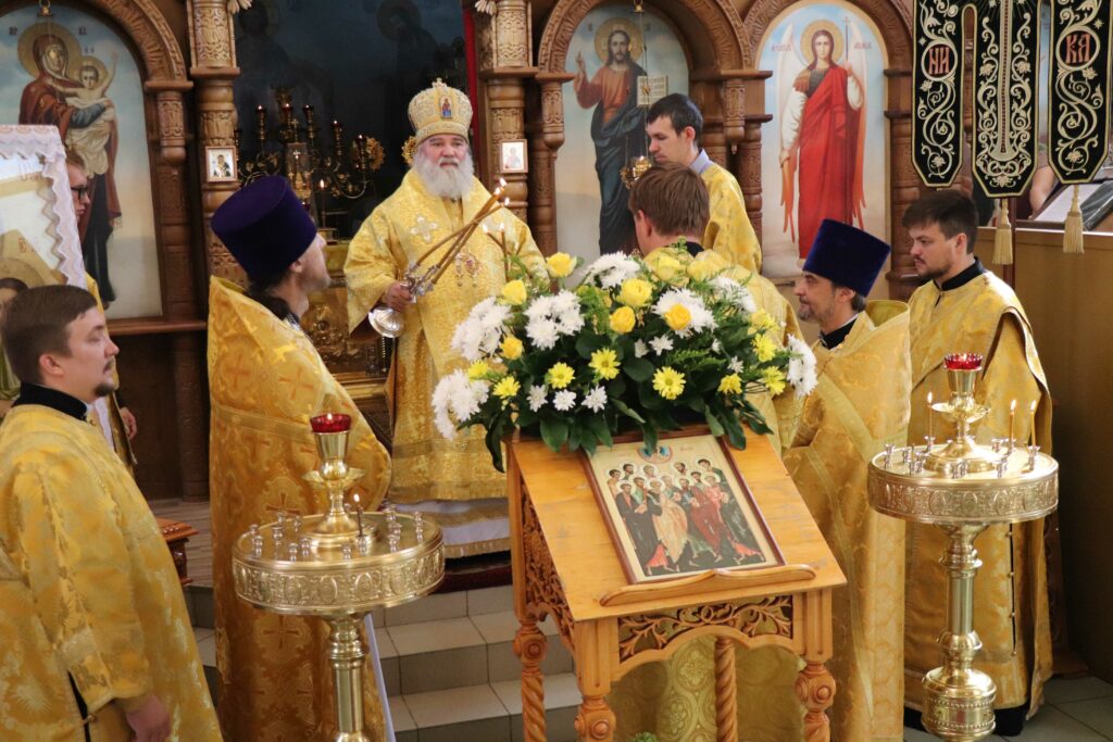 Бузулук. 13 июля 2021 года, в понедельник седмицы 4-й по Пятидесятнице, собор славных и всехвальных 12-ти апостолов: Петра, Андрея, брата его, Иакова Зеведеева, Иоанна, брата его, Филиппа, Варфоломея, Фомы, Матфея, Иакова Алфеева, Иуды Иаковля, или Фаддея, Симона Зилота и Матфия, епископ Бузулукский и Сорочинский Алексий совершил Божественную литургию в Преображенском храме Свято-Троицкого кафедрального собора и всенощное бдение накануне вечером в том же соборе.