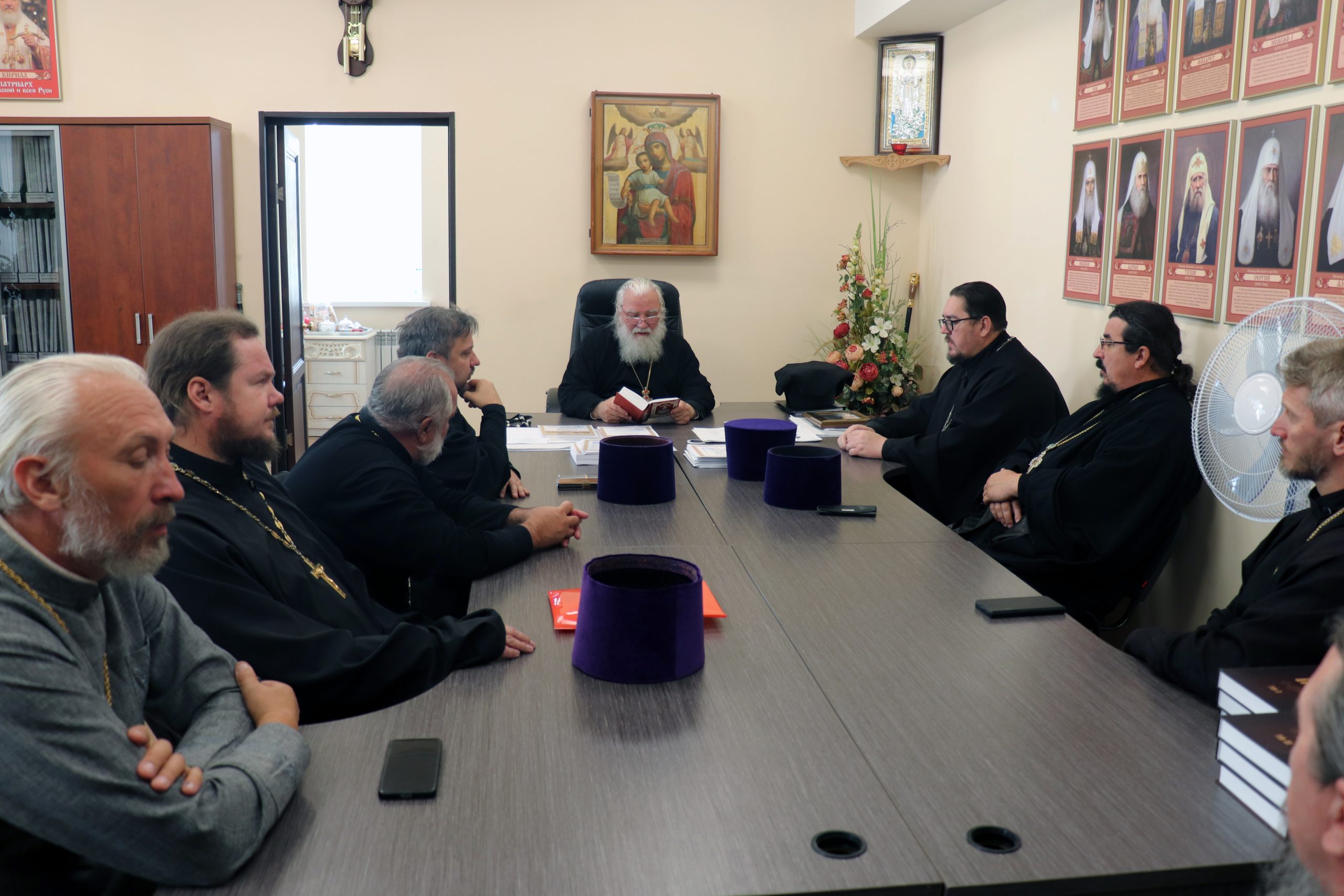 На совещании обсудили завершение работ по росписи Свято-Троицкого кафедрального собора, а также внутренние вопросы епархии.