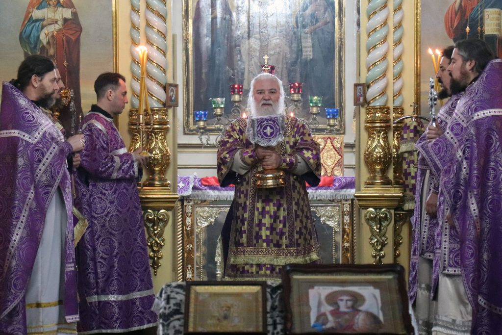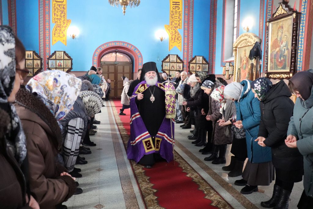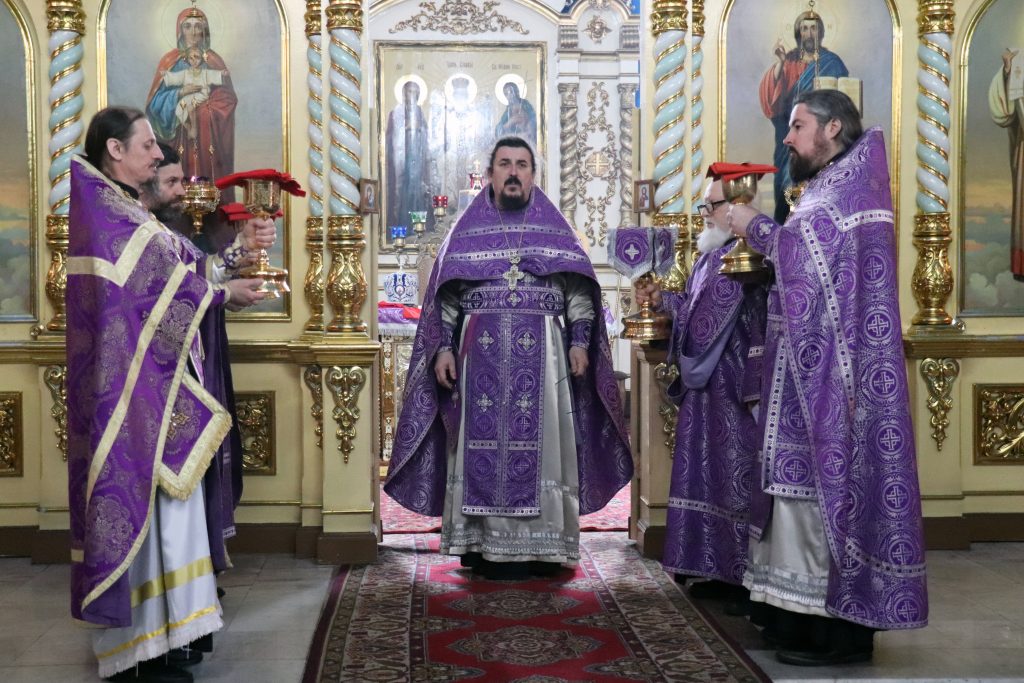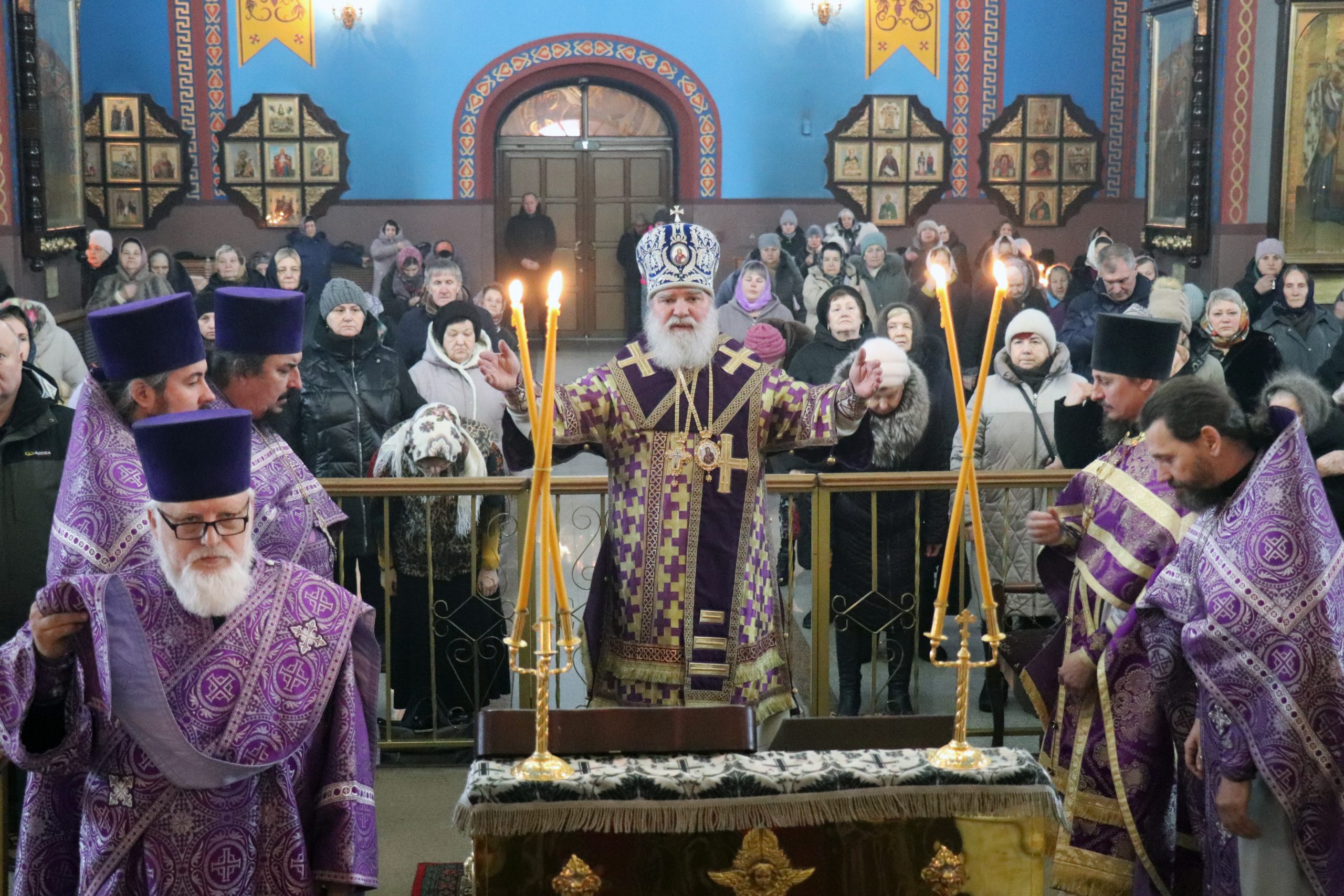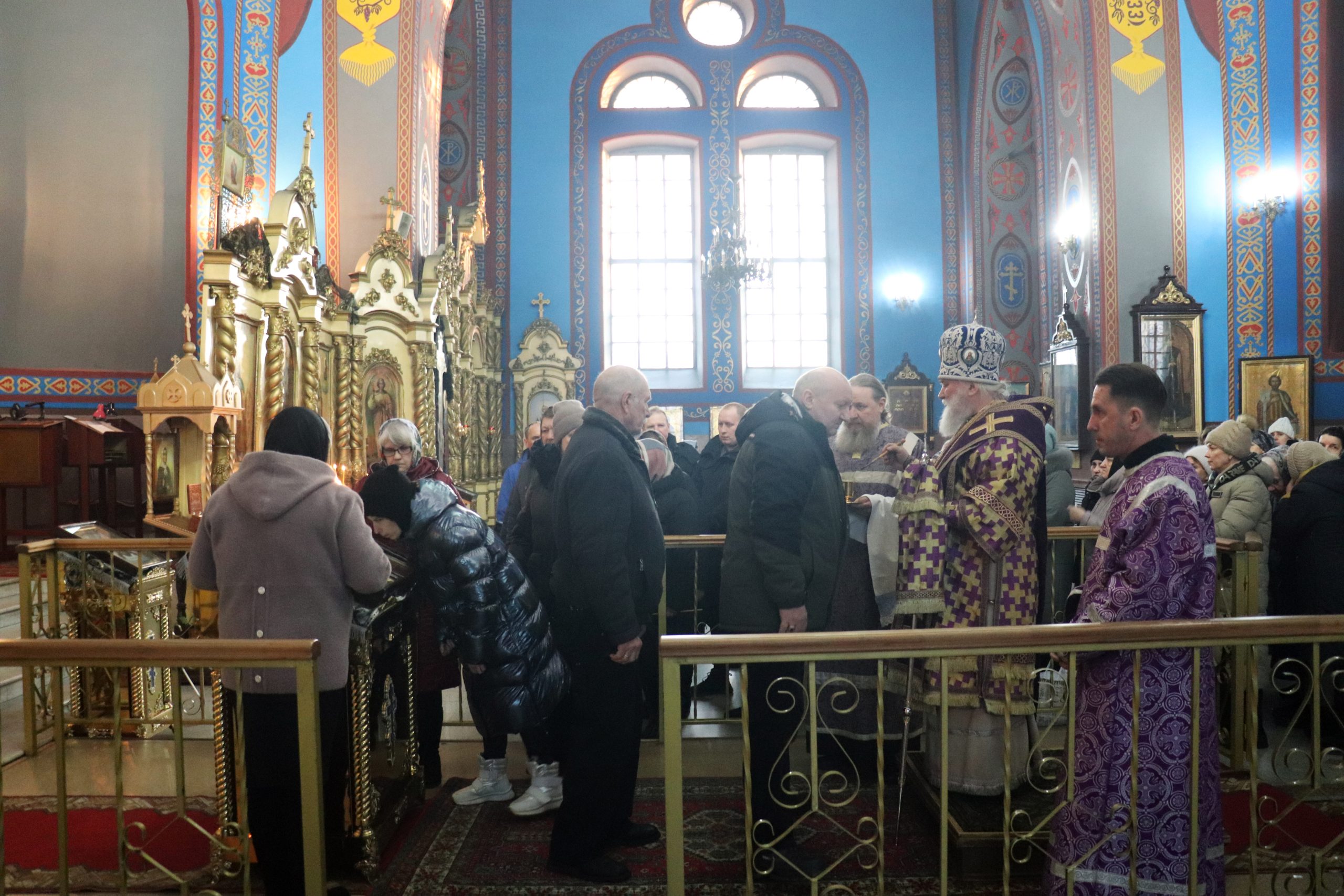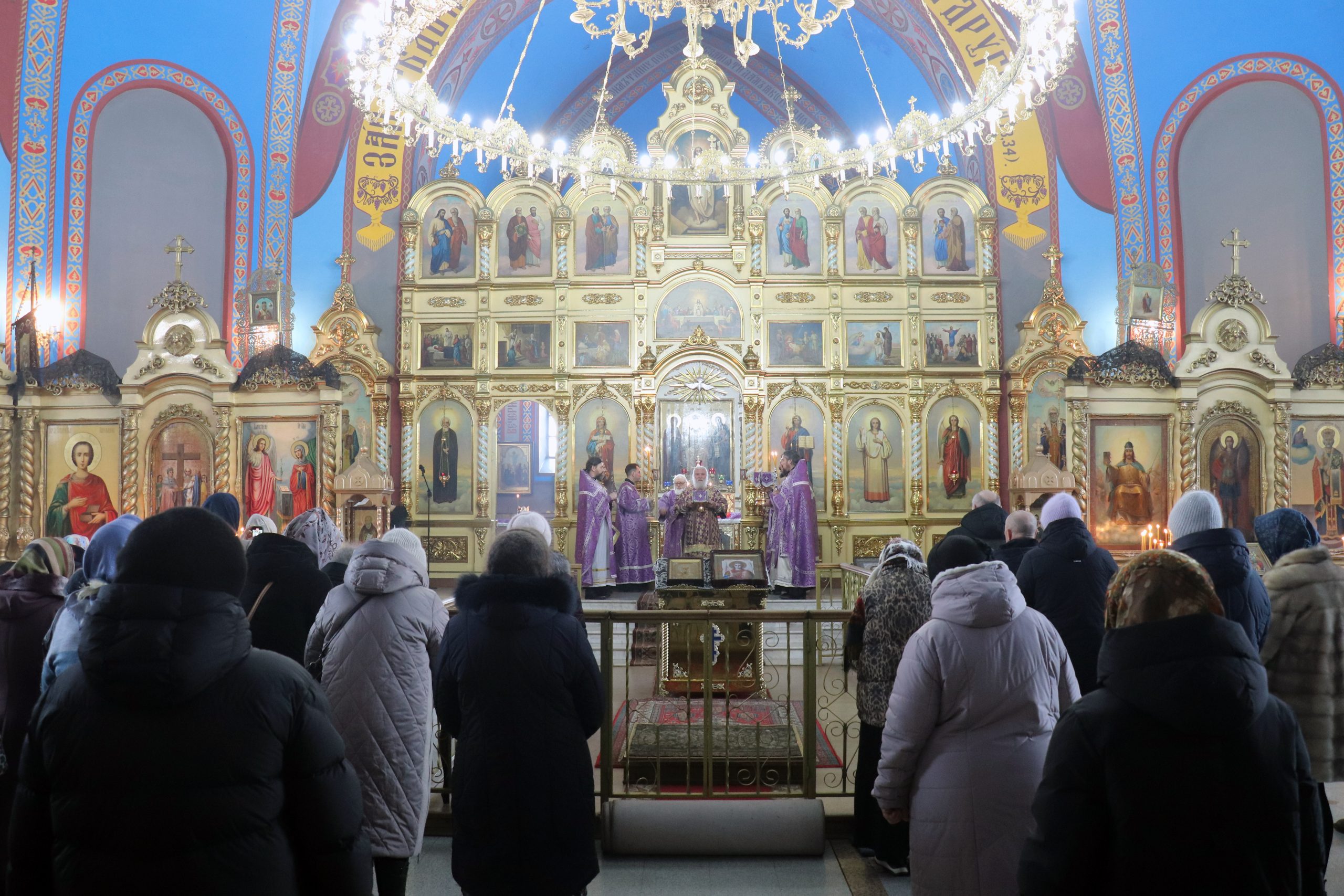 Сорочинск. 28 февраля 2026 года в субботу 1-й седмицы Великого поста, память великомученика Феодора Тирона (ок. 306) (переходящее празднование в субботу 1-й седмицы Великого поста) и святителя Алексия Московского, митрополита Киевского и всея Руси, чудотворца (1378), епископ Бузулукский и Сорочинский Алексий совершил Божественную литургию в храме Архангела Михаила.