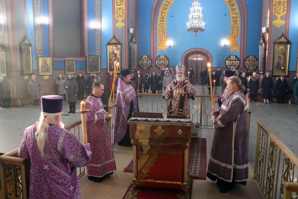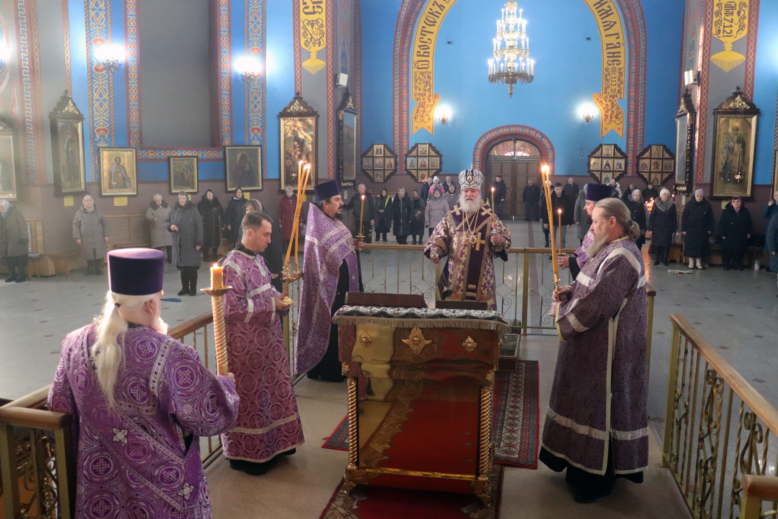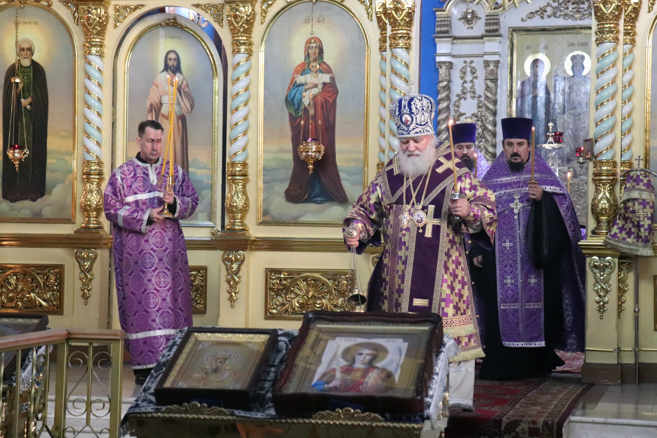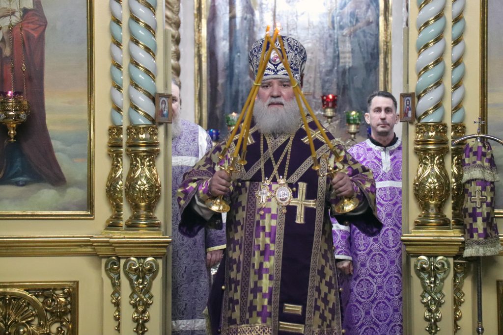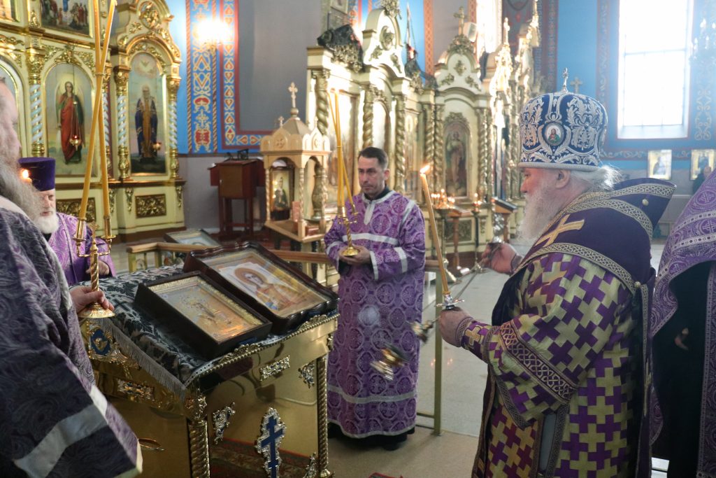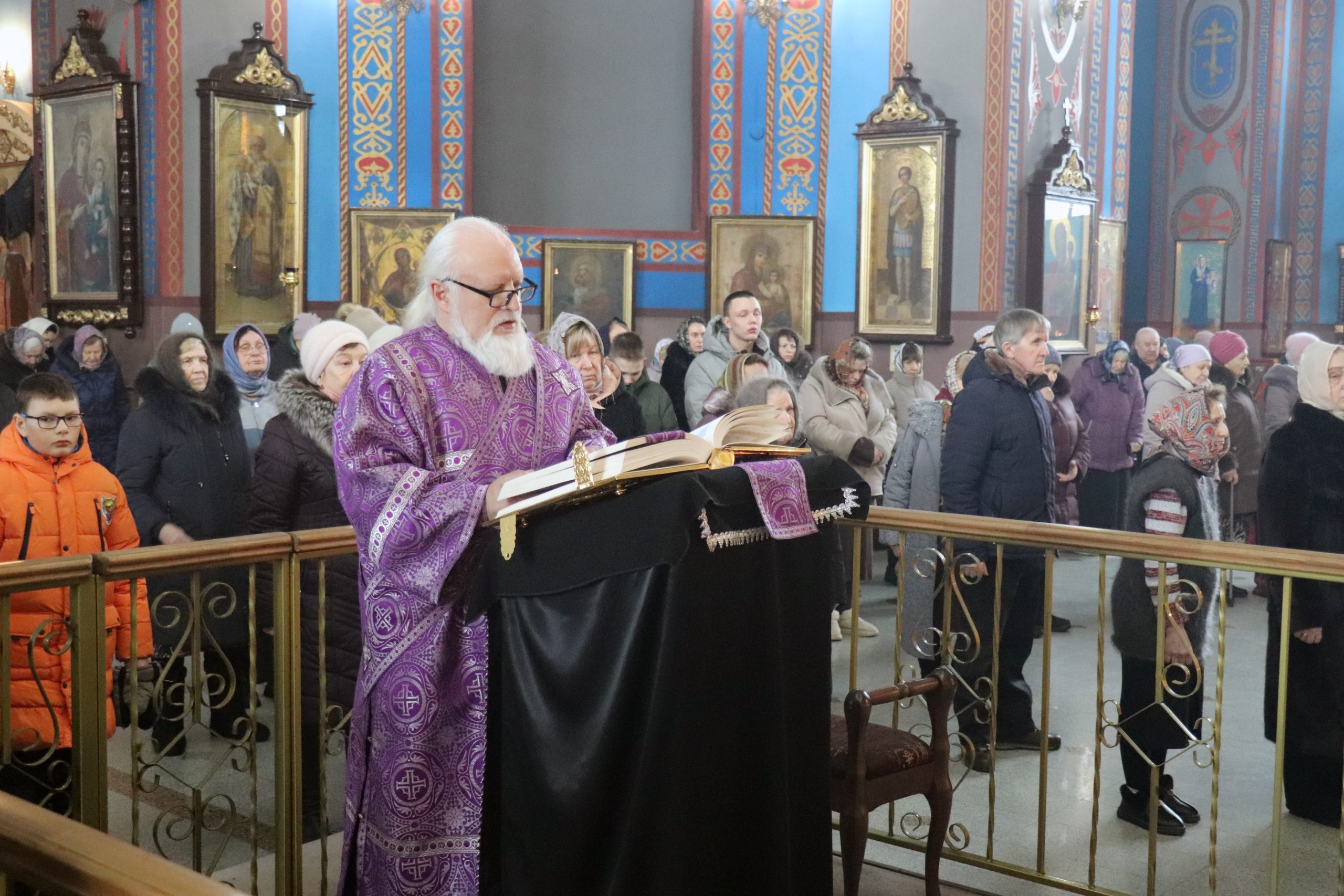 Сорочинск. 28 февраля 2026 года в субботу 1-й седмицы Великого поста, память великомученика Феодора Тирона (ок. 306) (переходящее празднование в субботу 1-й седмицы Великого поста) и святителя Алексия Московского, митрополита Киевского и всея Руси, чудотворца (1378), епископ Бузулукский и Сорочинский Алексий совершил Божественную литургию в храме Архангела Михаила.