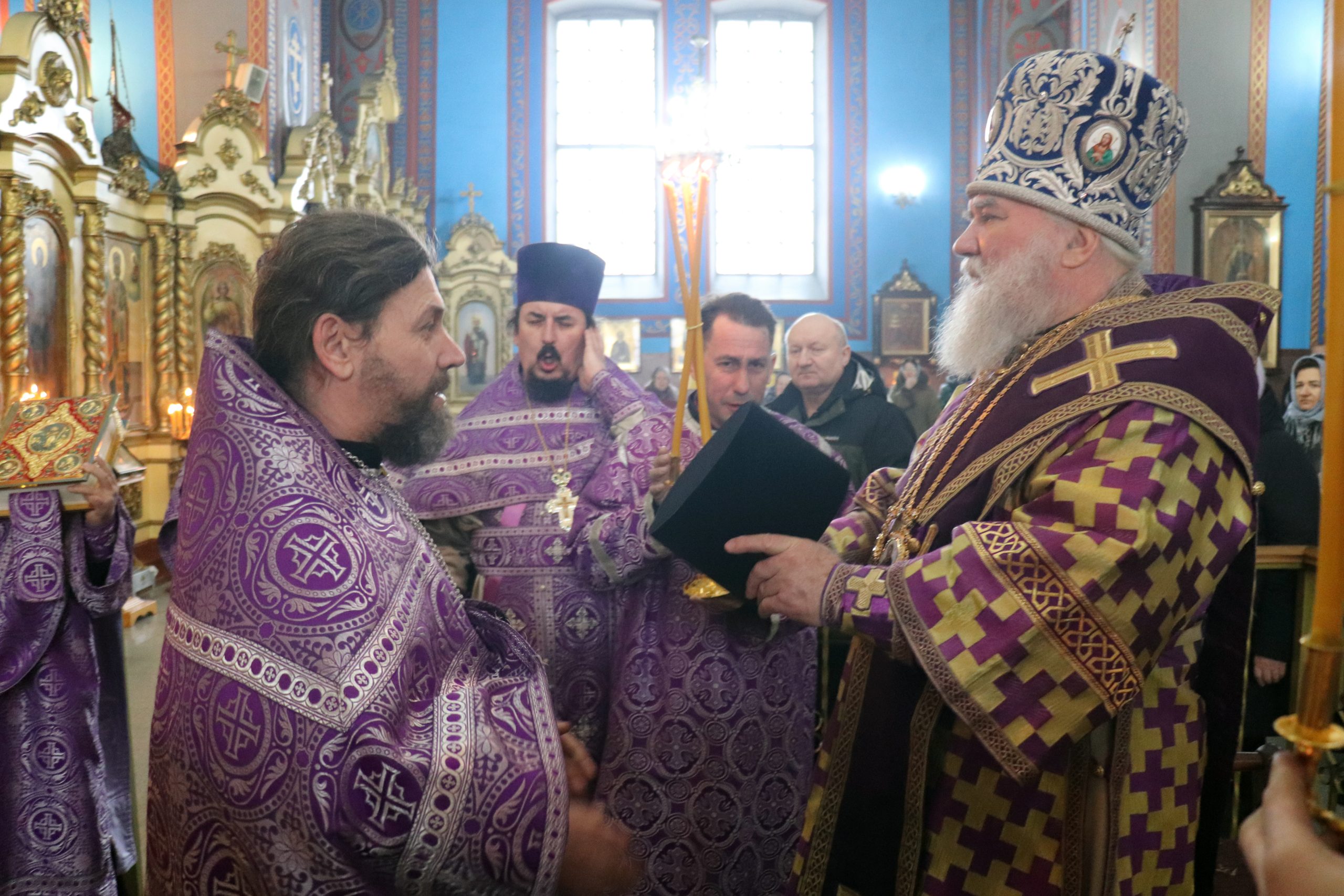 На малом входе Литургии Владыка Алексий, за усердное служение Святой Церкви, наградил иерея Игоря Ивашкова правом ношения камилавки.