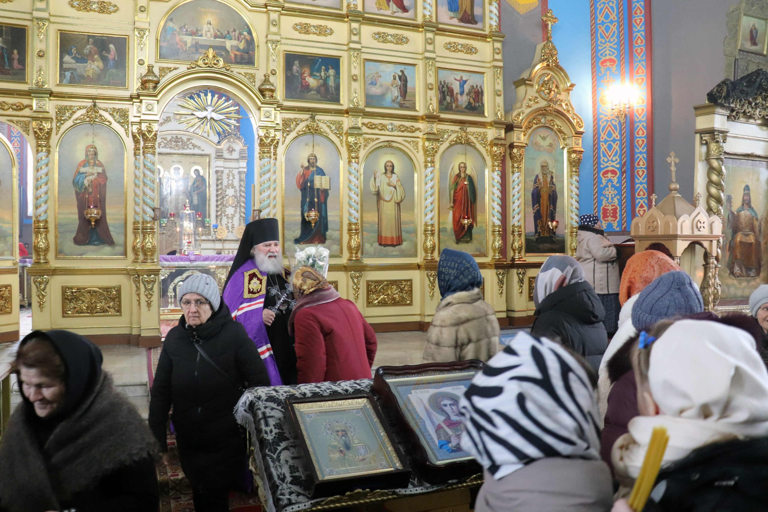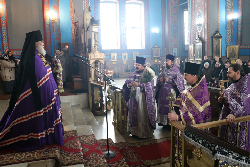 После чтения Евангелия Владыка Алексий обратился к прихожанам с проповедью, побеседовав о святых – великомученике Федоре Тироне и святителе Алексии Московском, об обретении Иверской иконы Божией Матери и о грядущем празднике – Торжестве Православия.