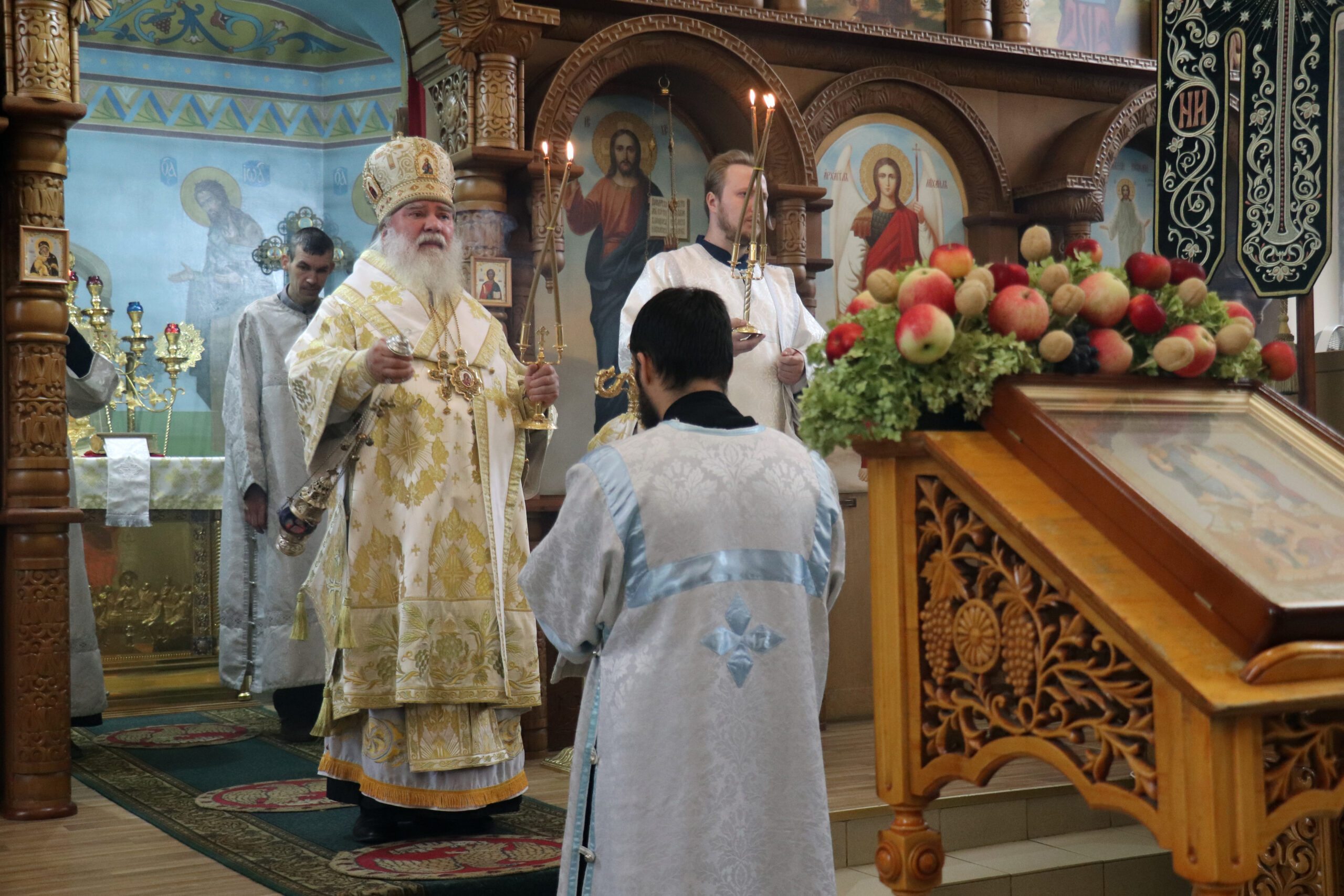 По отпусте Литургии Владыка Алексий обратился к прихожанам с проповедью, призвав достойно завершить Успенский пост.