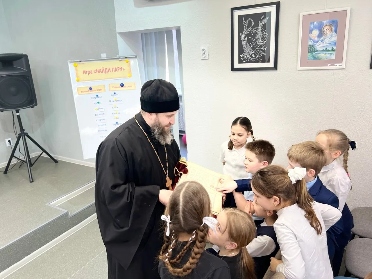 Кульминацией мероприятия стала встреча с настоятелем Свято-Троицкого собора г. Бугуруслан иереем Максимом Заико. В форме живого диалога он познакомил детей с православной литературой и показал древнее Евангелие. Каждый желающий получил в подарок современное издание этой священной книги.