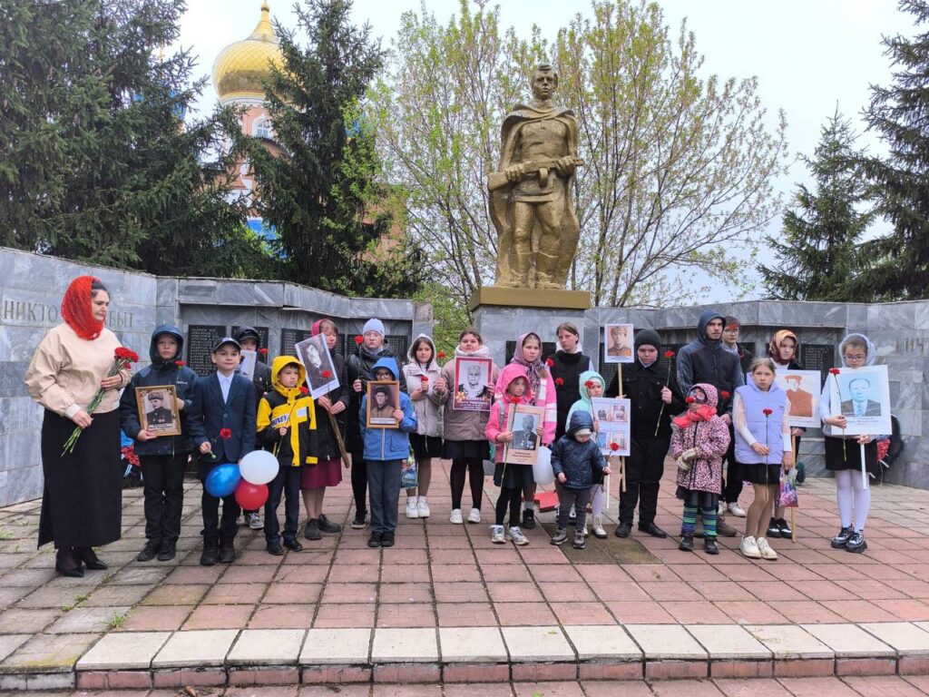 В ходе концерта прошла акция «Бессмертный полк», на которой дети с портретами своих родных — участников Великой Отечественной войны, отдали дань памяти нашим дедам, прадедам, бабушкам, прабабушкам и всем людям, воевавшим против немецко-фашистских захватчиков.