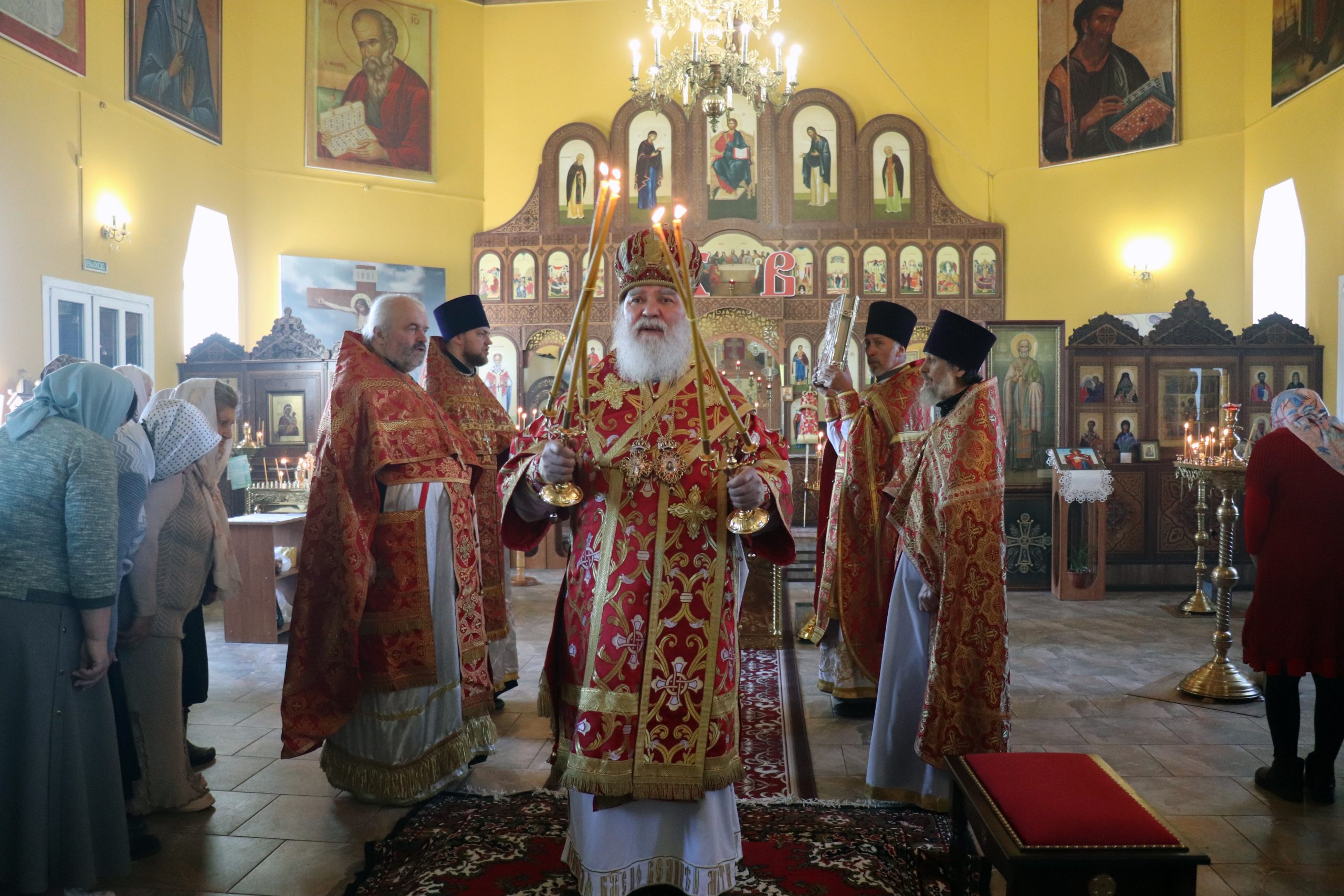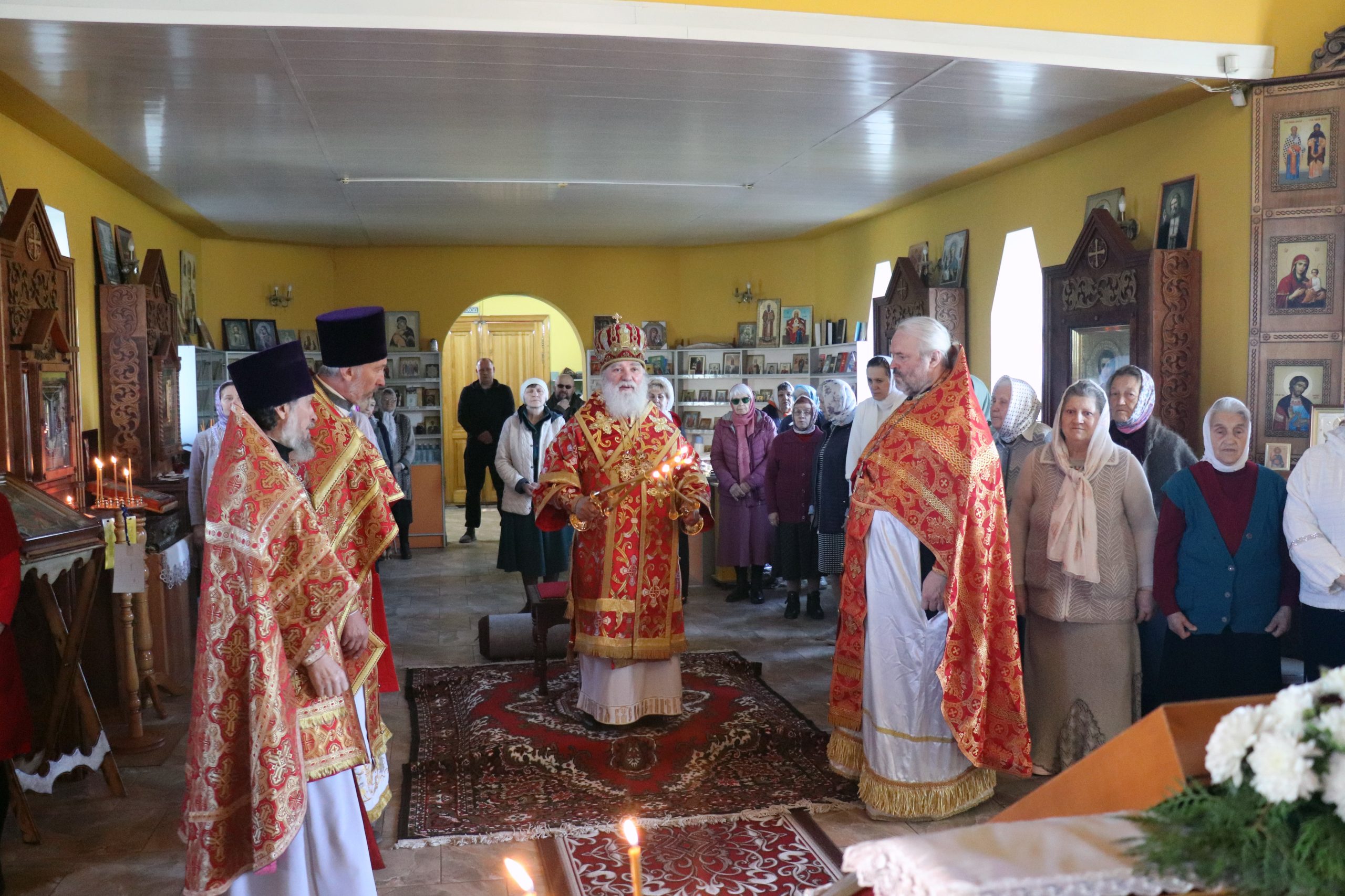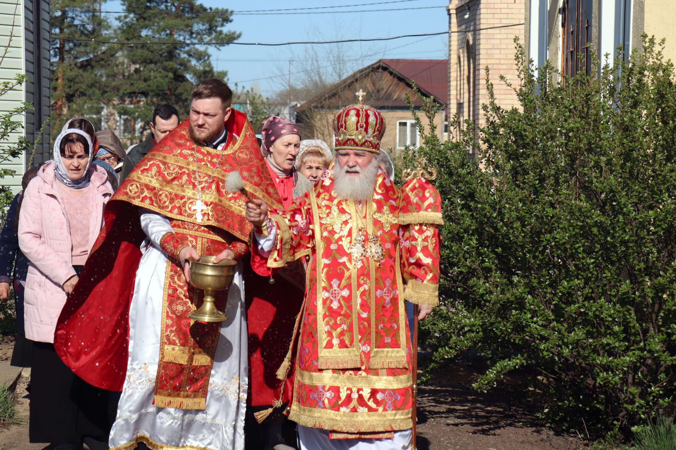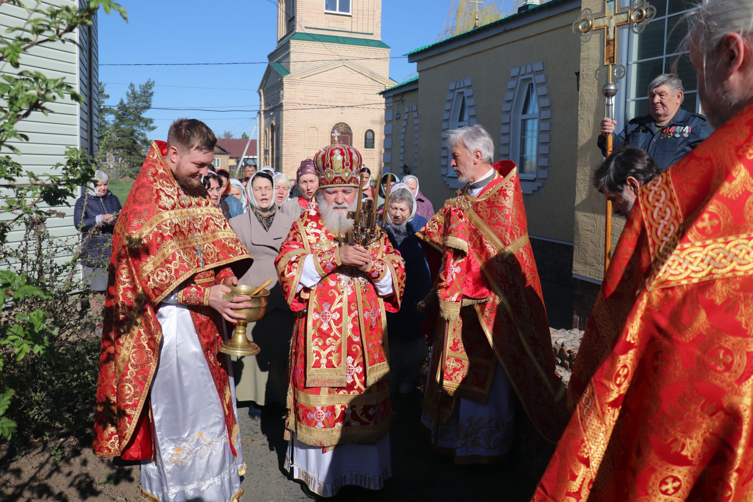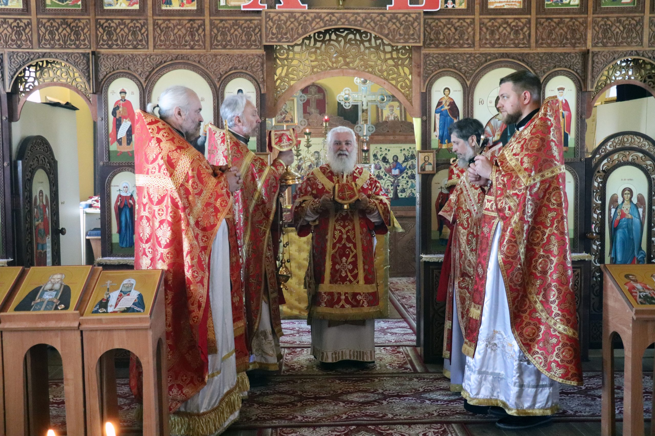 Его Преосвященству сослужили: благочинный Илекского округа, настоятель храма протоиерей Анатолий Бабак, иерей Олег Цаплин, иерей Валерий Логачев (Орская епархия) и иерей Илья Михальченко.