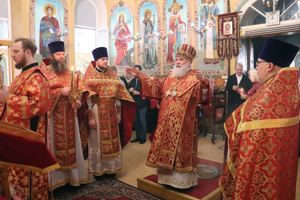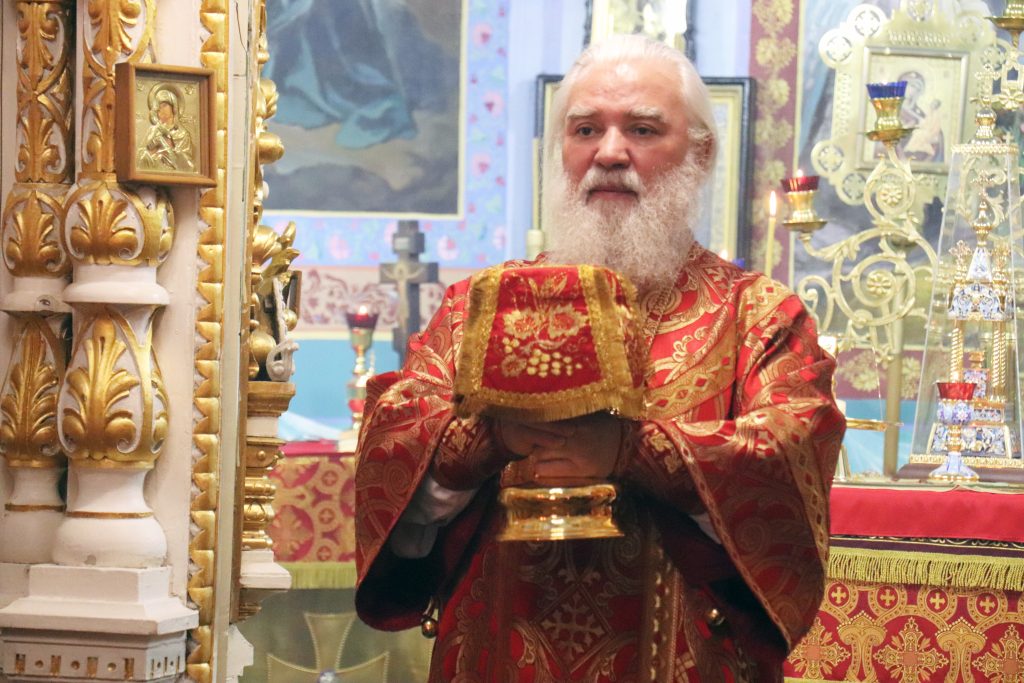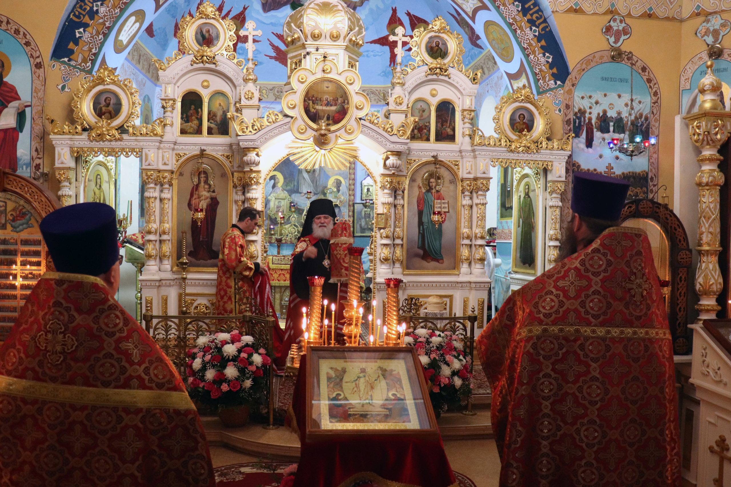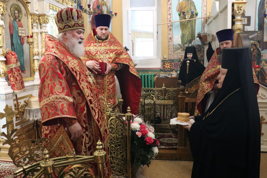 Его Преосвященству сослужили: старший священник монастыря иерей Илья Михальченко, протоиерей Александр Тарасов, иерей Антоний Сотников и диакон Иоанн Шумилин.
