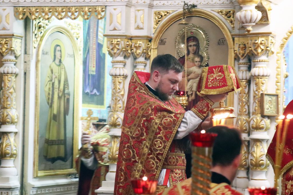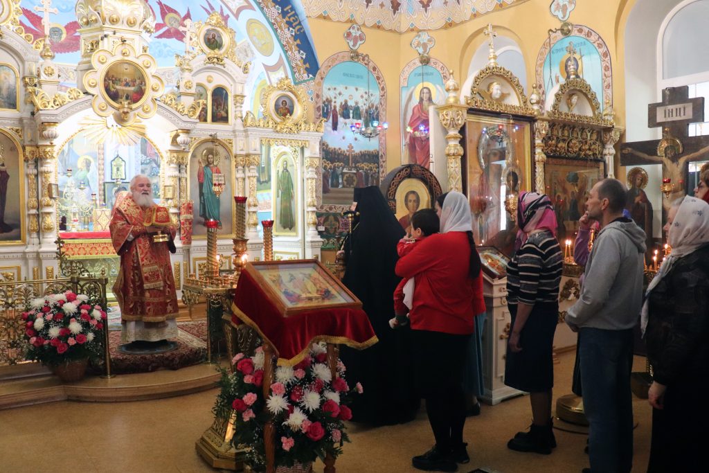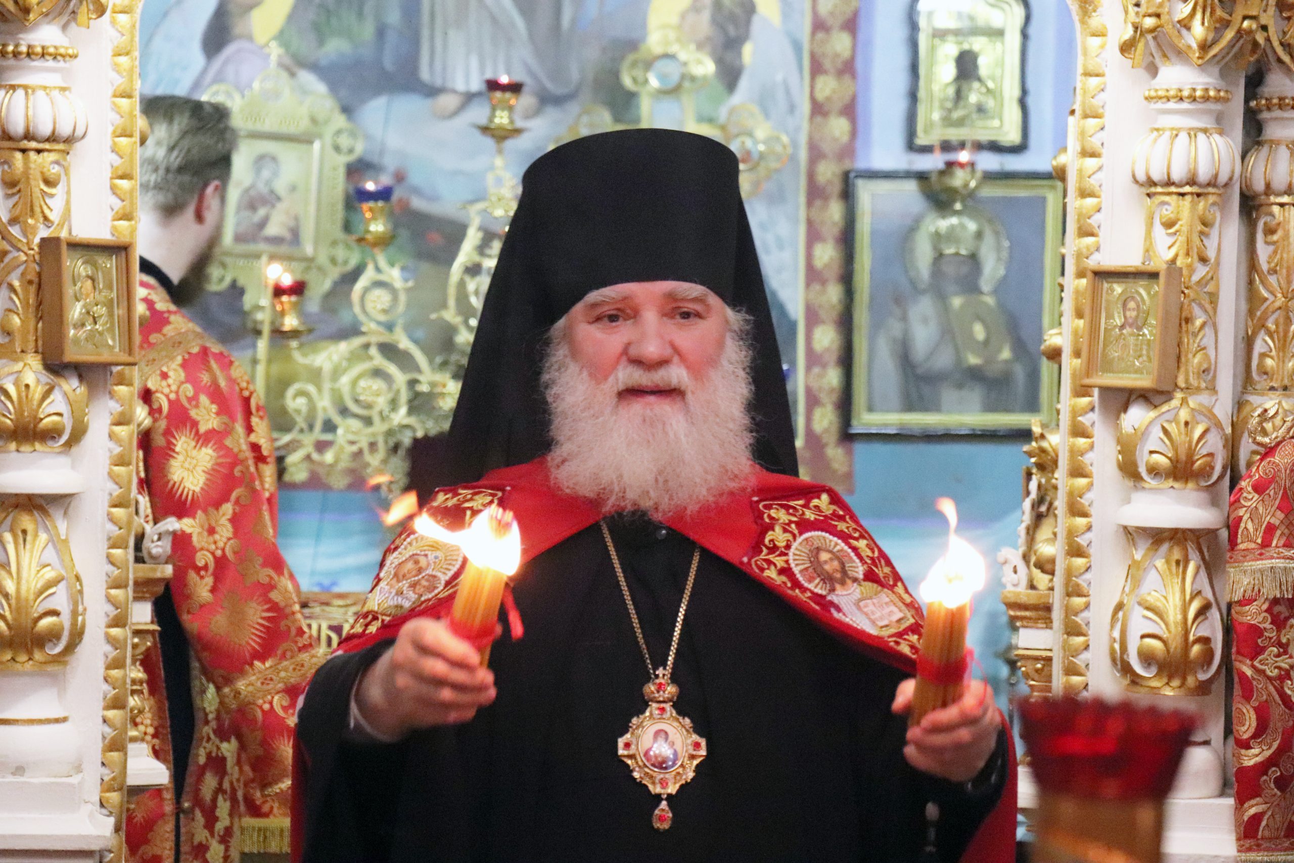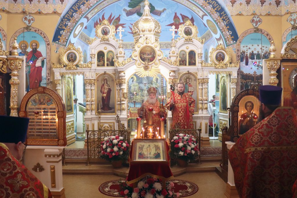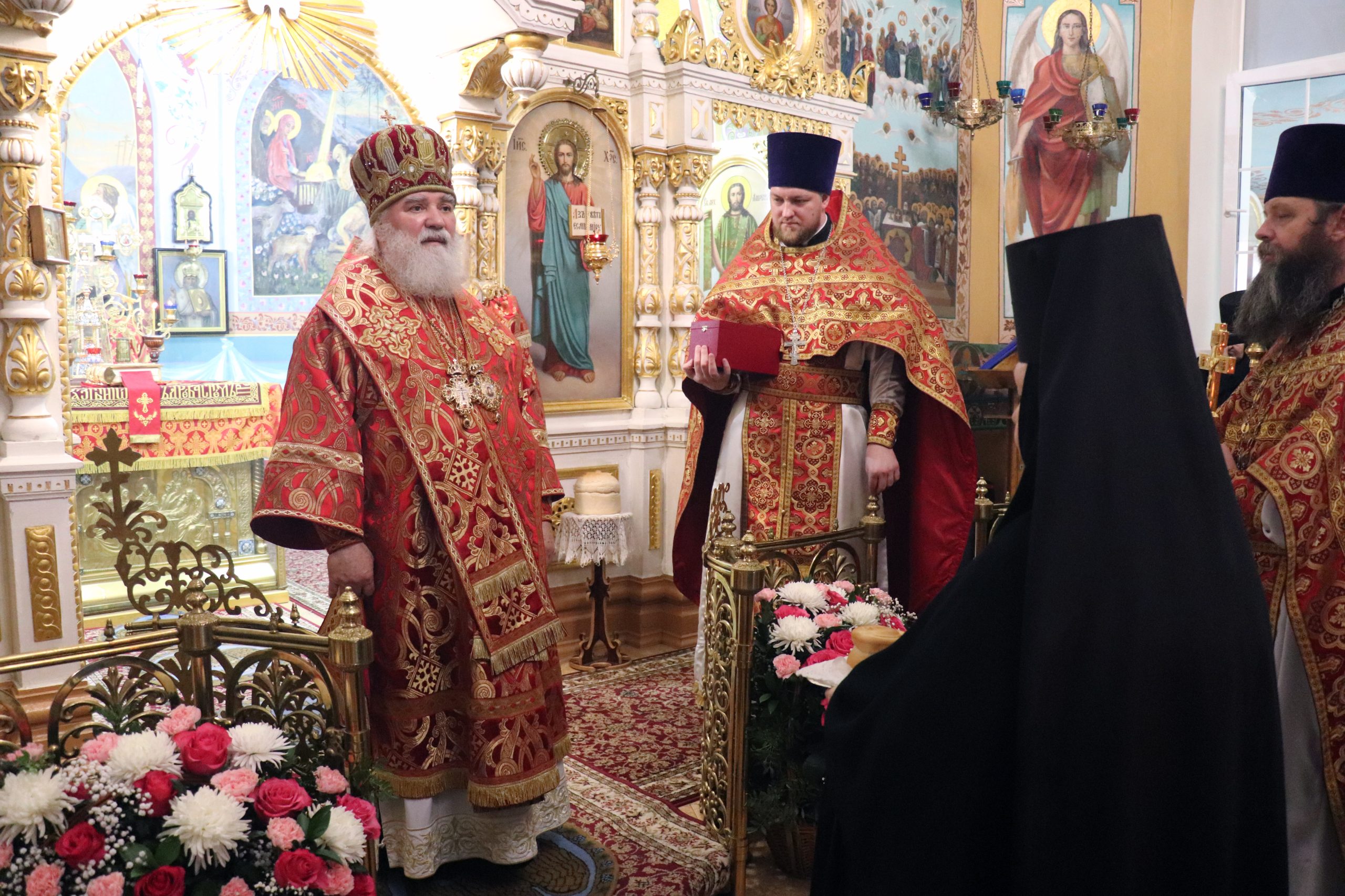 Его Преосвященству сослужили: старший священник монастыря иерей Илья Михальченко, протоиерей Александр Тарасов, иерей Антоний Сотников и диакон Иоанн Шумилин.