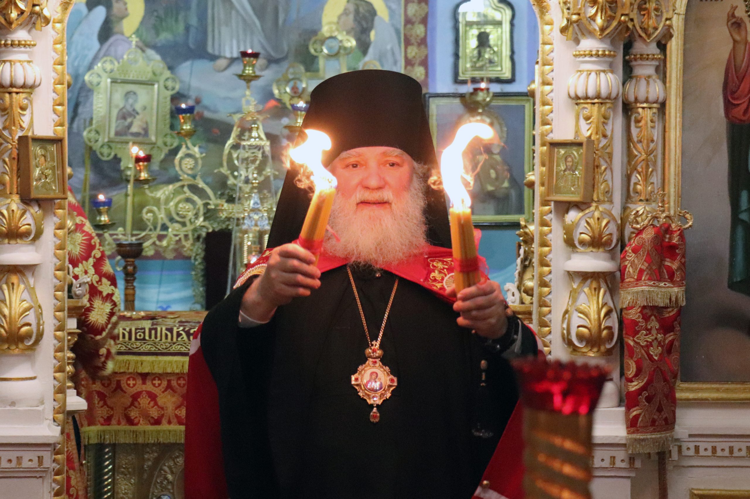 Перед богослужением архиерей возжег от Благодатного огня свечи, который накануне сошел на Гроб Господень.
