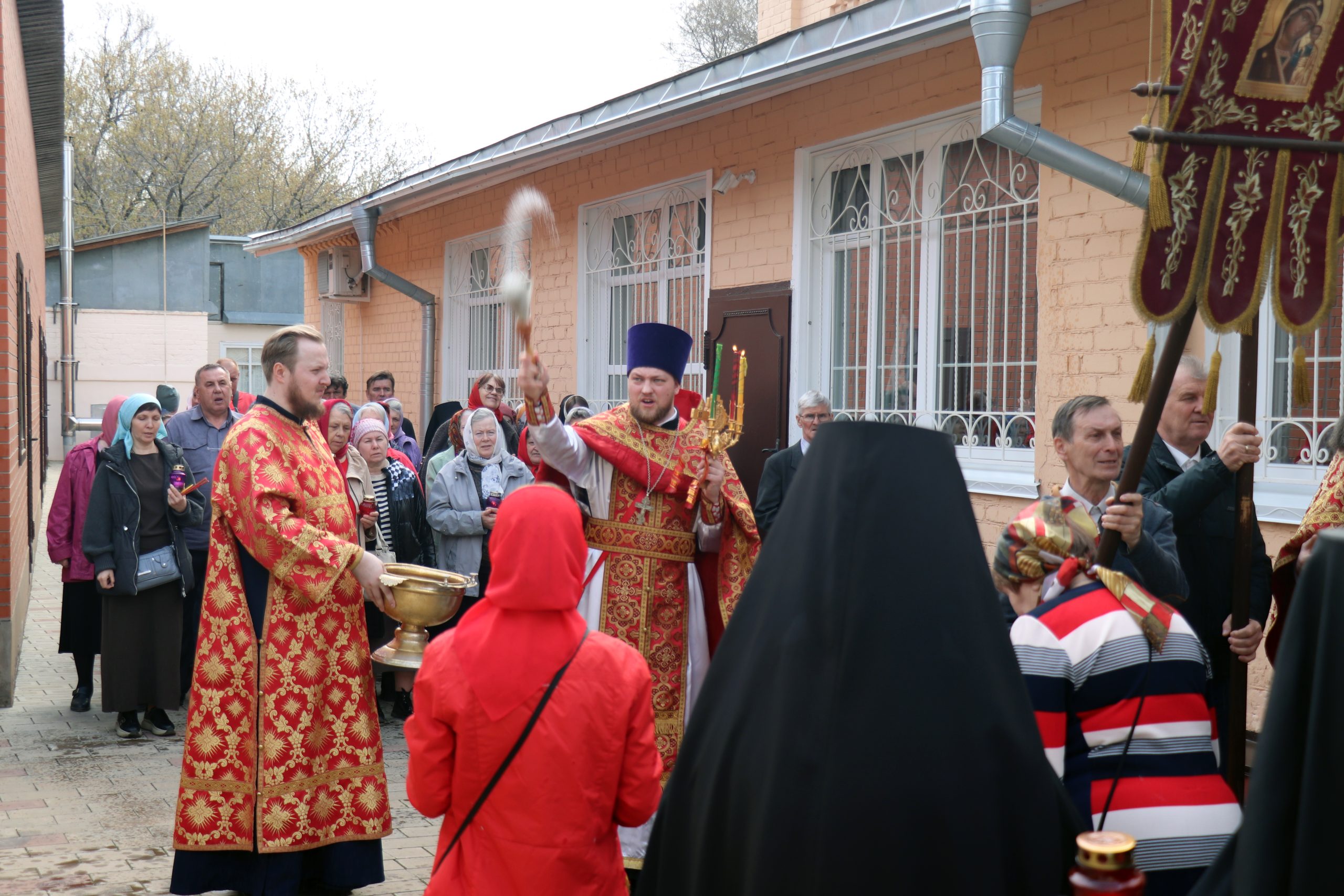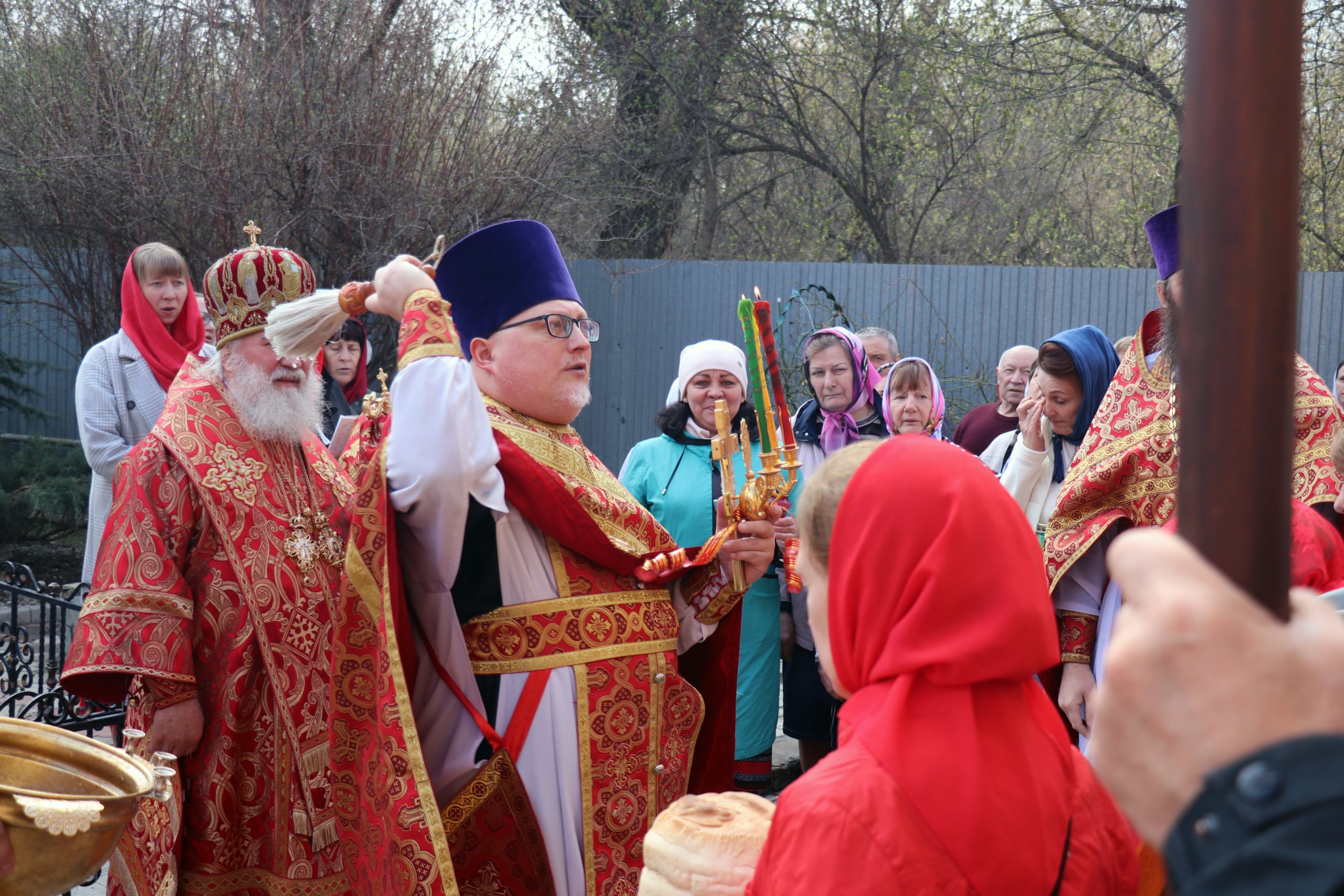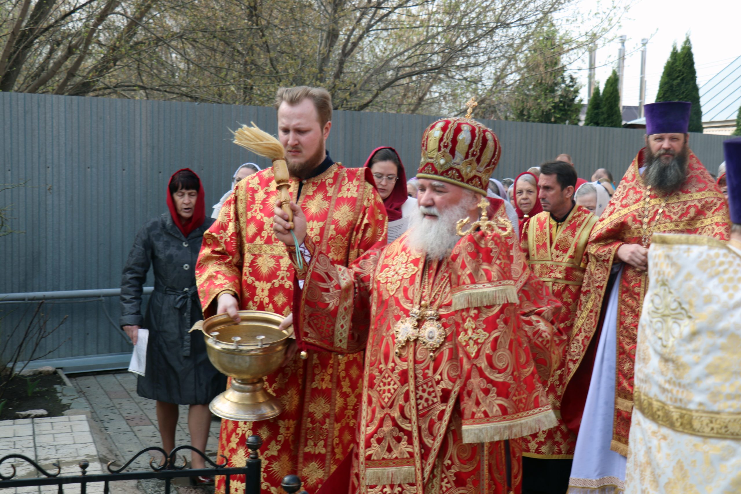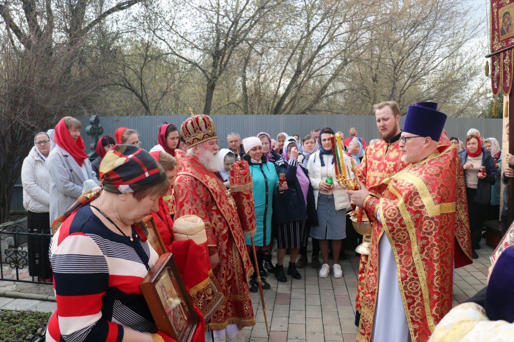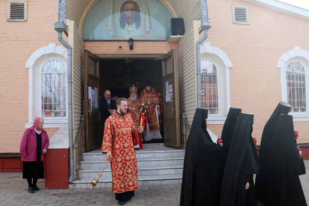 После Таинства Причастия правящий архиерей вместе с духовенством и мирянами совершил традиционный для Светлой Седмицы крестный ход вокруг храма, славя Воскресение Христово. Обращаясь по окончании богослужения к верующим, Владыка Алексий поздравил всех со Светлым праздником Пасхи Господней, призвав укрепляться духом в вере, ибо достойными Царства Небесного становятся те, кто трудится духовно и не предается лени.