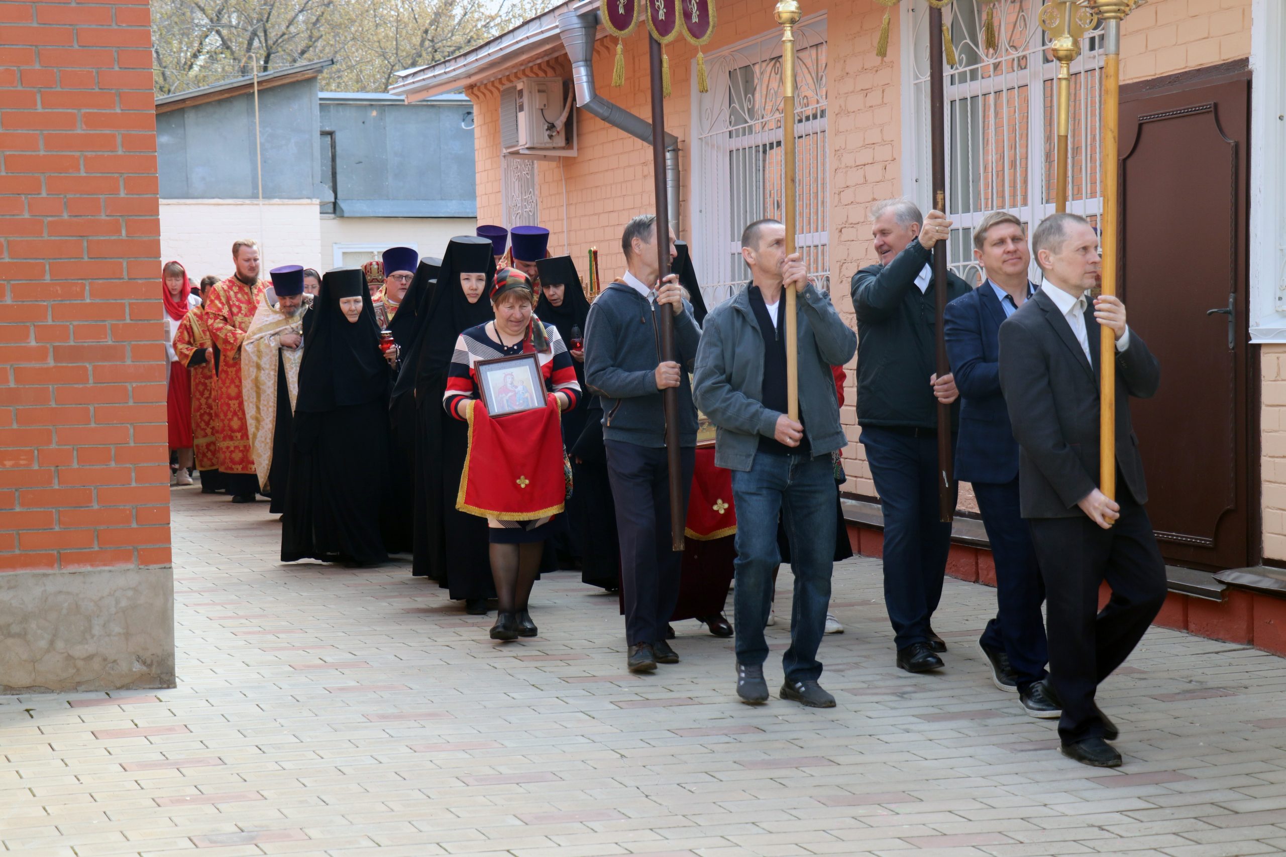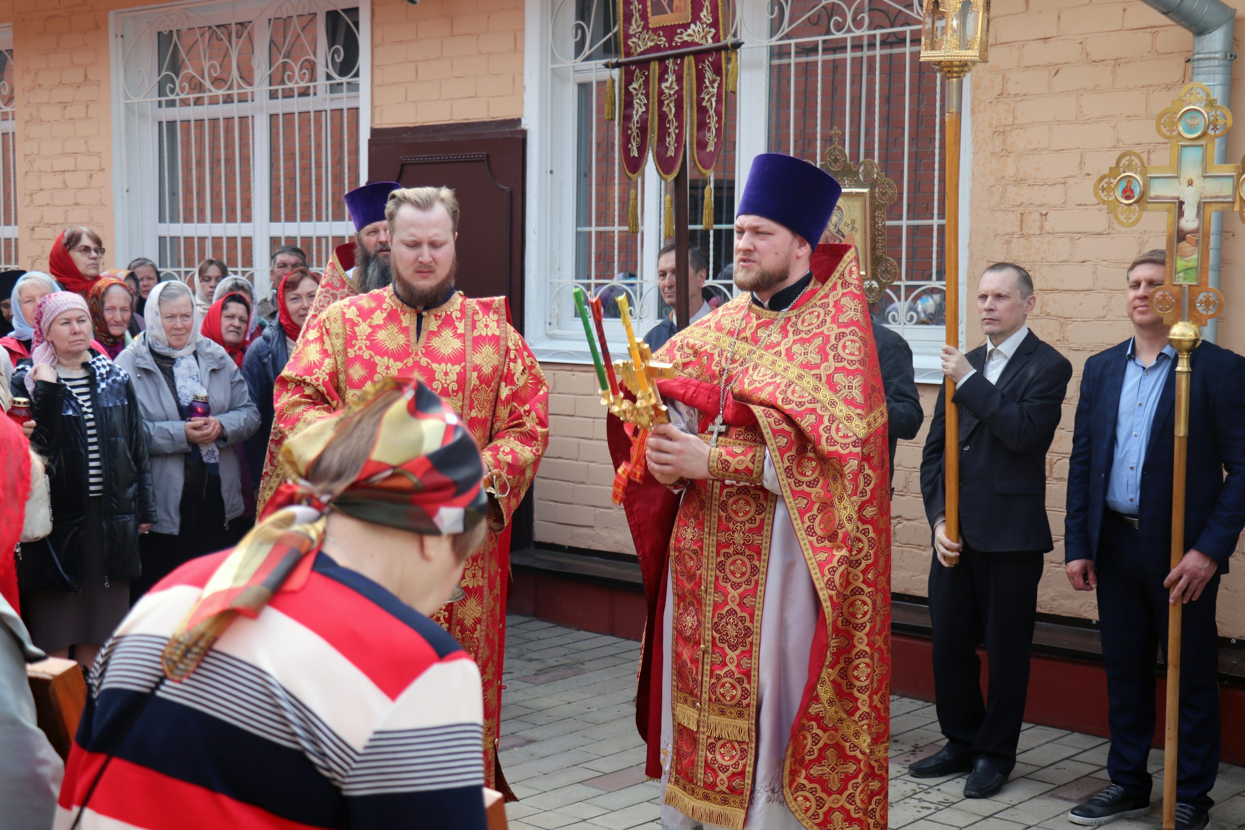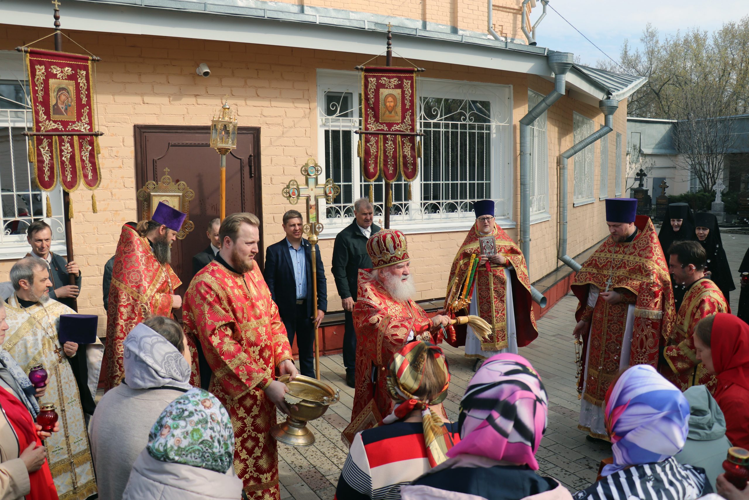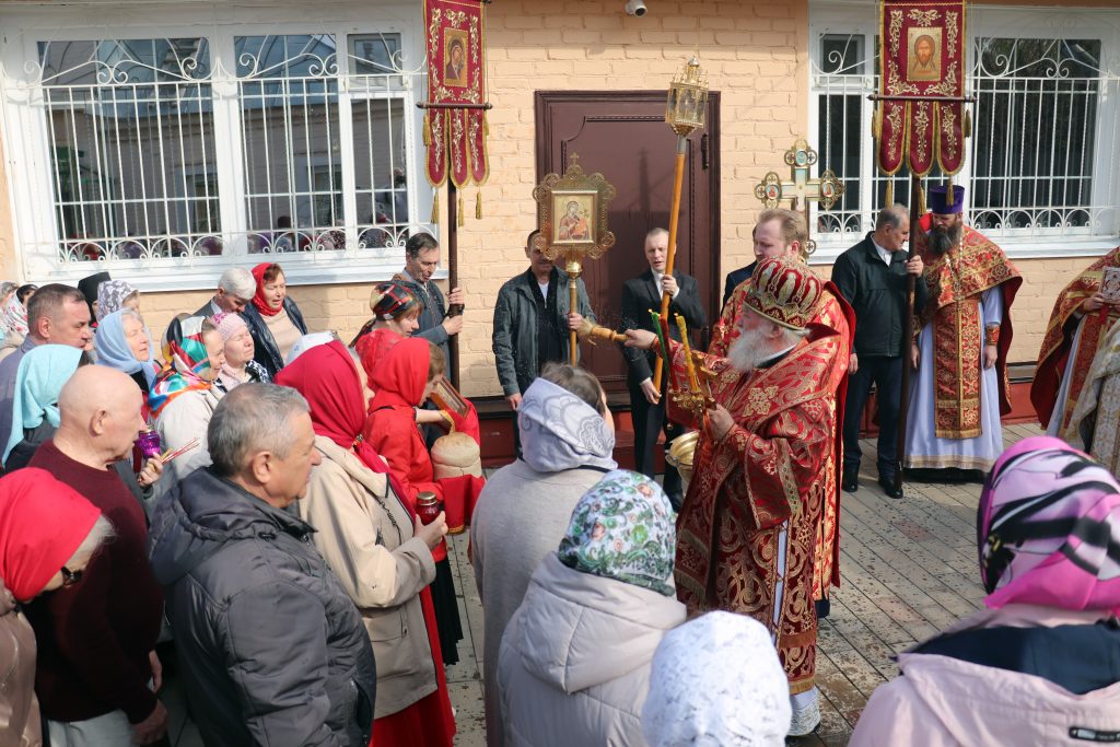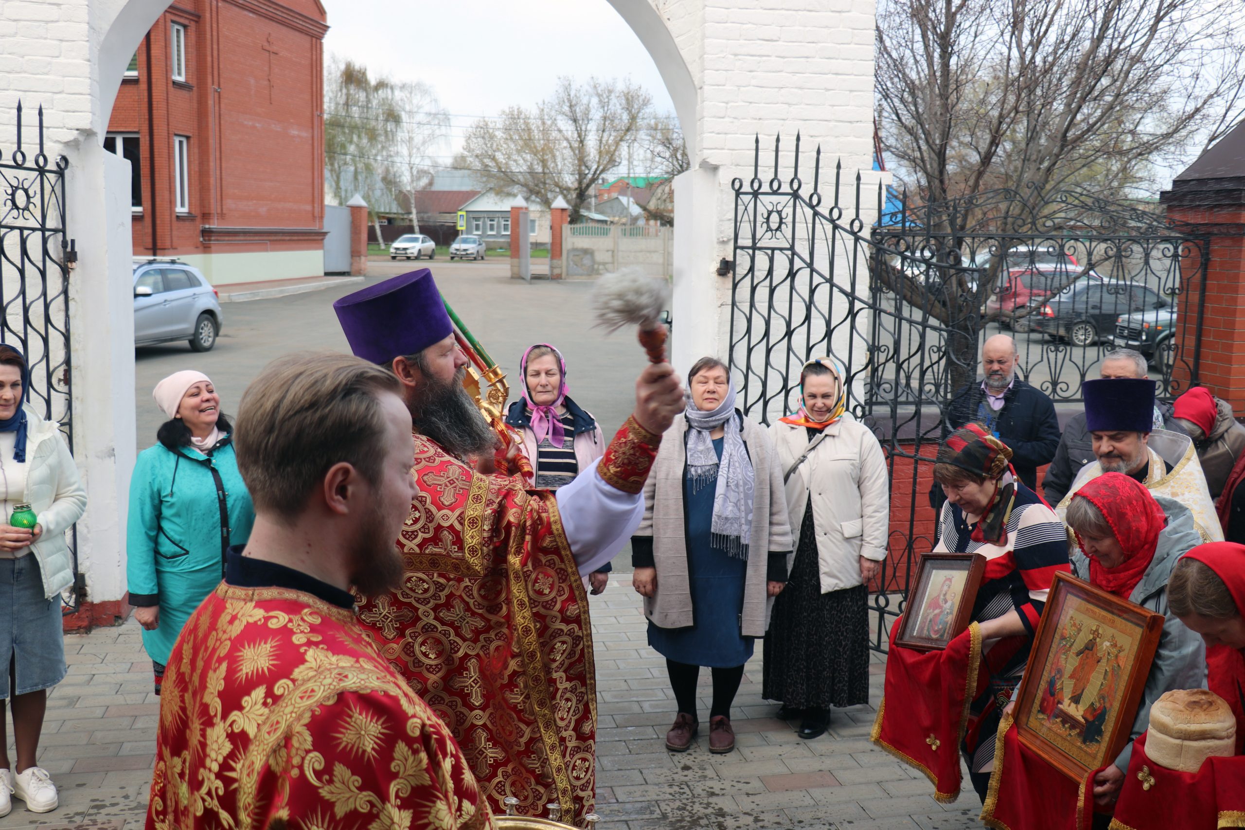 После Таинства Причастия правящий архиерей вместе с духовенством и мирянами совершил традиционный для Светлой Седмицы крестный ход вокруг храма, славя Воскресение Христово. Обращаясь по окончании богослужения к верующим, Владыка Алексий поздравил всех со Светлым праздником Пасхи Господней, призвав укрепляться духом в вере, ибо достойными Царства Небесного становятся те, кто трудится духовно и не предается лени.