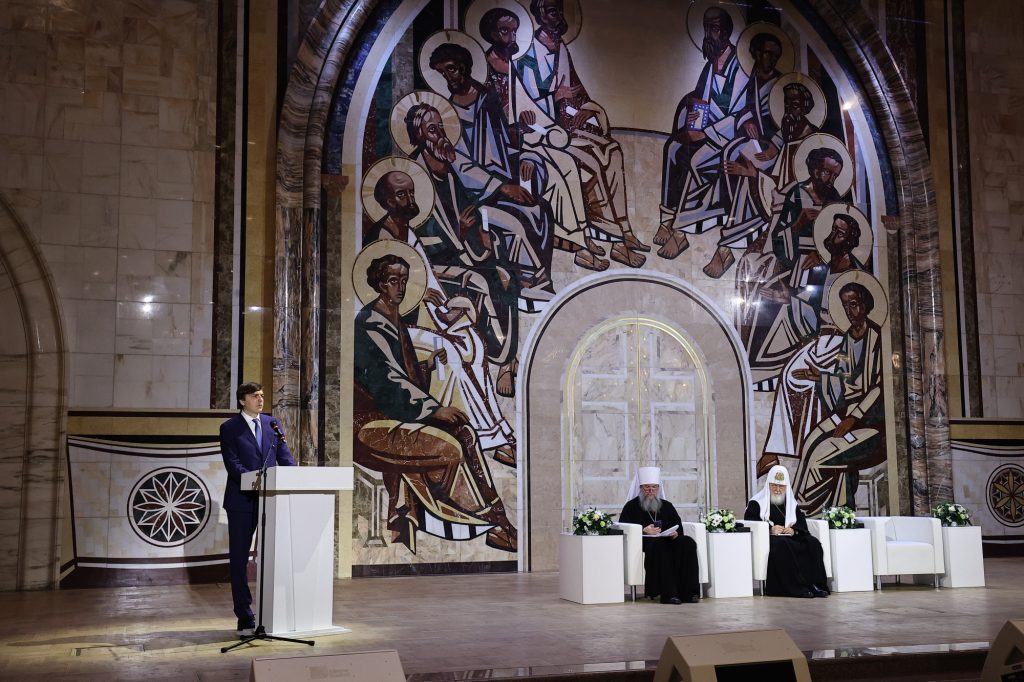 Также выступил министр просвещения РФ С.С. Кравцов. Он выразил признательность за неустанное внимание, которое Русская Православная Церковь уделяет вопросам воспитания, образования, исторического просвещения и защите традиционных ценностей нашей страны.