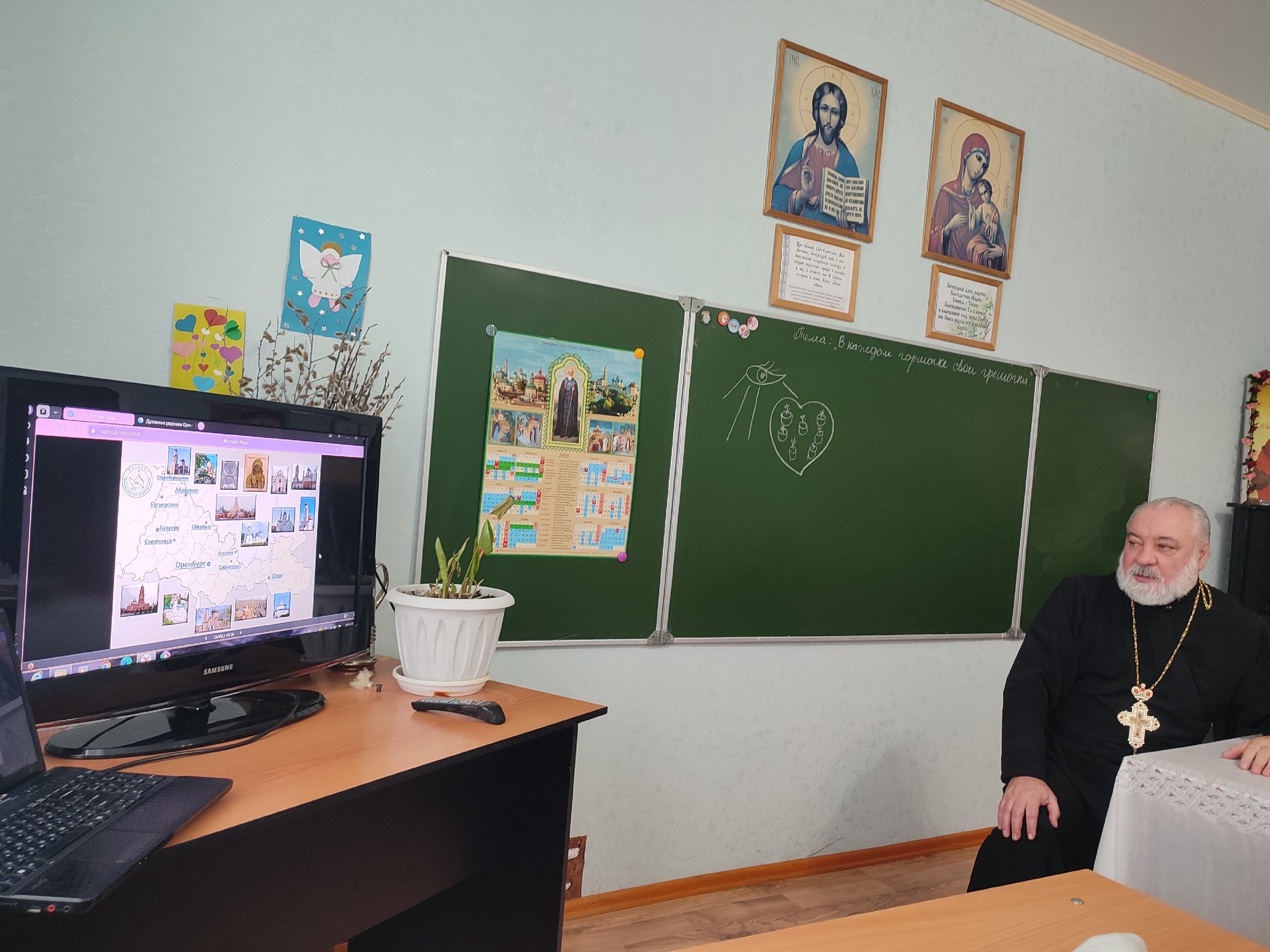 Курманаевка. 21 декабря 2025 года в воскресной школе при храме Димитрия Солунского прошло познавательное занятие. Воспитанники познакомились с интерактивной картой «Святыни Оренбуржья».