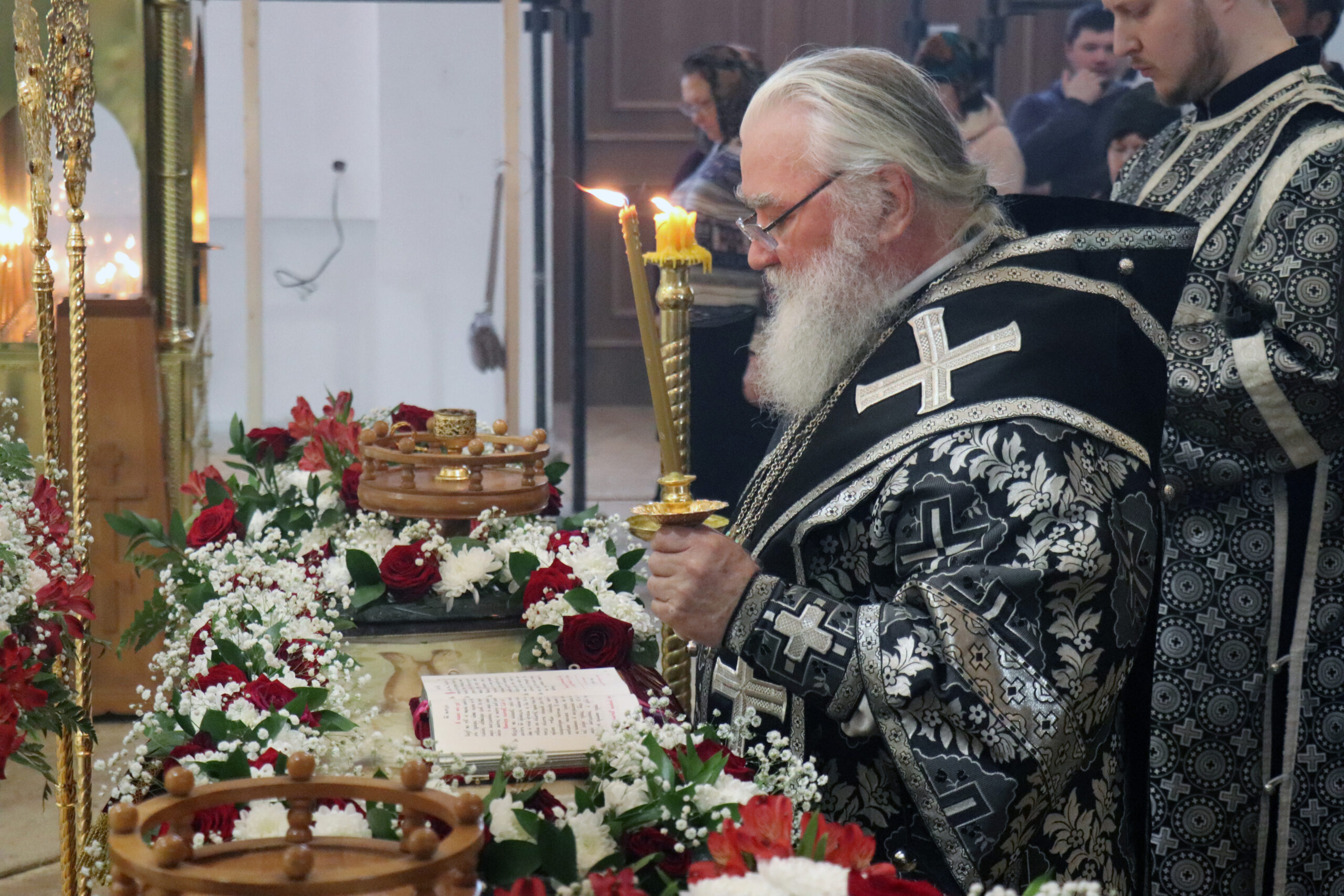 Бузулук. 18 апреля 2025 года в канун Великой Субботы епископ Бузулукский и Сорочинский Алексий совершил утреню с чином погребения Господа нашего Иисуса Христа в Свято-Троицком кафедральном соборе.