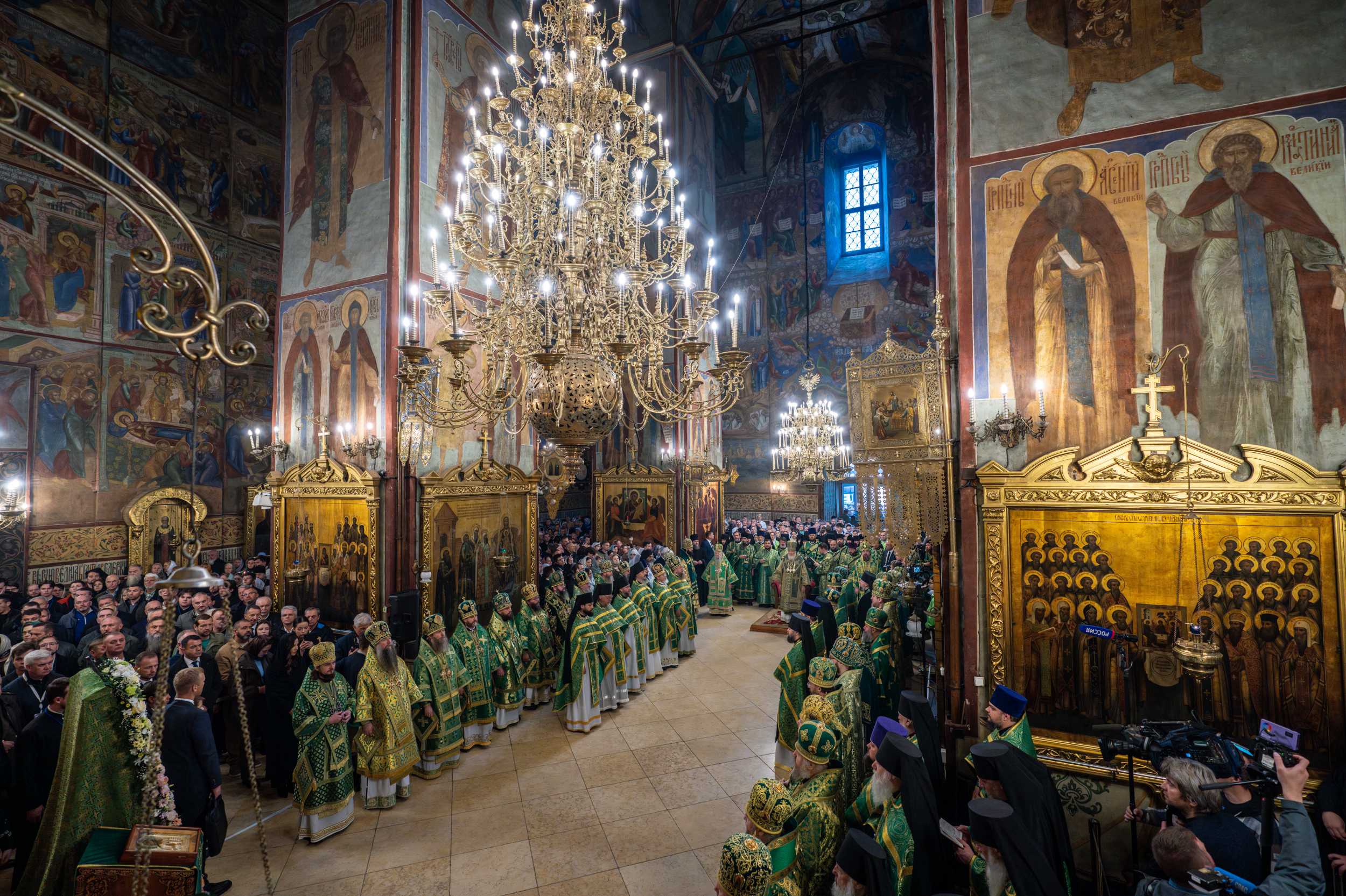 Москва. 8 октября 2025 года, в день преставления преподобного Сергия, игумена Радонежского, чудотворца, Святейший Патриарх Московский и всея Руси Кирилл совершил Божественную литургию в Успенском соборе Свято-Троицкой Сергиевой лавры.